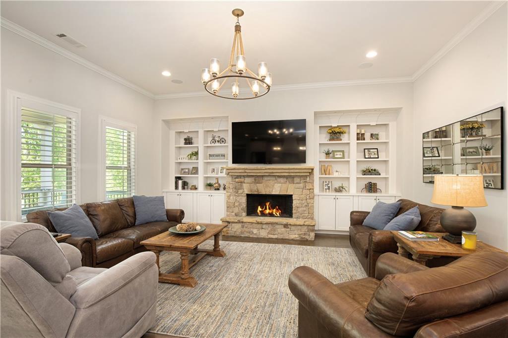 This exceptional Southern traditional home is a true showcase of craftsmanship, thoughtful design, and timeless style. From the moment you arrive, the inviting covered front porch and classic architectural details set the tone for what lies within.Step inside to a light-filled, open-concept floor plan where custom finishes and intentional design are evident at every turn. The spacious family room is the heart of the home, featuring stunning built-ins and a seamless flow into the chefs kitchencomplete with a large island, walk-in pantry, and an elegant butlers pantry, perfect for entertaining. Multiple dining spaces offer flexibility for both formal gatherings and everyday living.The main level is designed for comfort and convenience, featuring a luxurious primary suite along with two additional bedrooms connected by a Jack-and-Jill bath, plus a well-placed powder room. A thoughtfully designed mudroom with a built-in dog crate, custom doors, and a dedicated friends entry adds both charm and functionality. The main-floor laundry room enhances everyday ease.Upstairs, youll find two expansive private en-suite retreatseach with its own staircaseoffering incredible flexibility for guests, teens, or multigenerational living.The full, unfinished basement provides endless potential for future expansion, while the outdoor living spaces are already nothing short of spectacular. Enjoy both a covered back porch and a welcoming front porch, all overlooking a beautifully leveled and meticulously maintained backyardcomplete with a fire pit and plenty of space to relax or entertain.With a rare 4-car garage, distinctive custom features throughout, and undeniable pride of ownership, this home offers a unique opportunity to own something truly special.