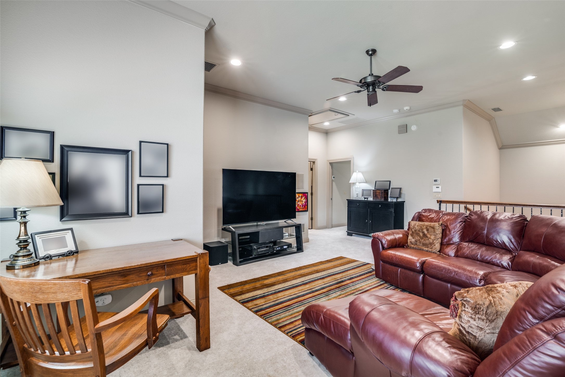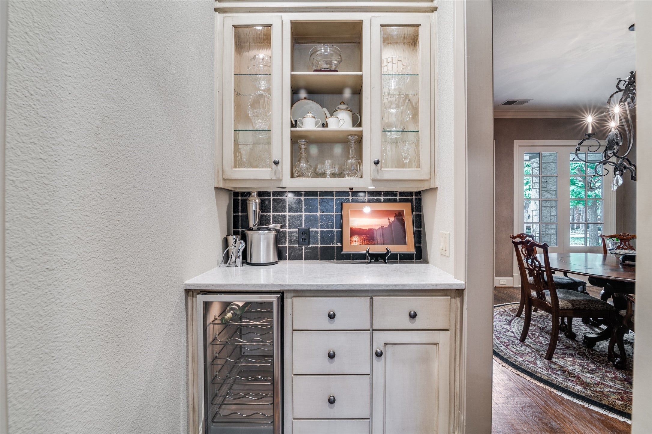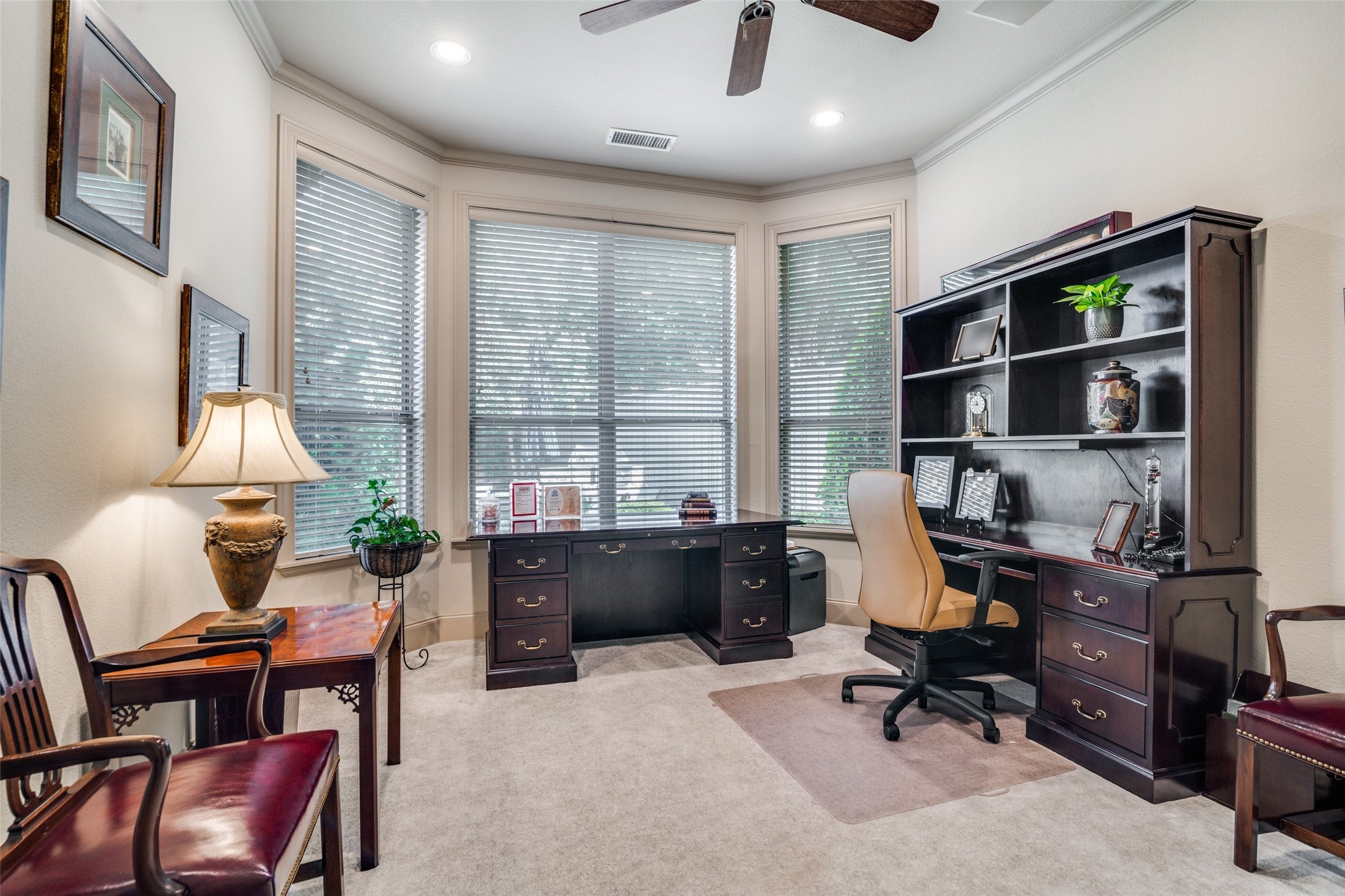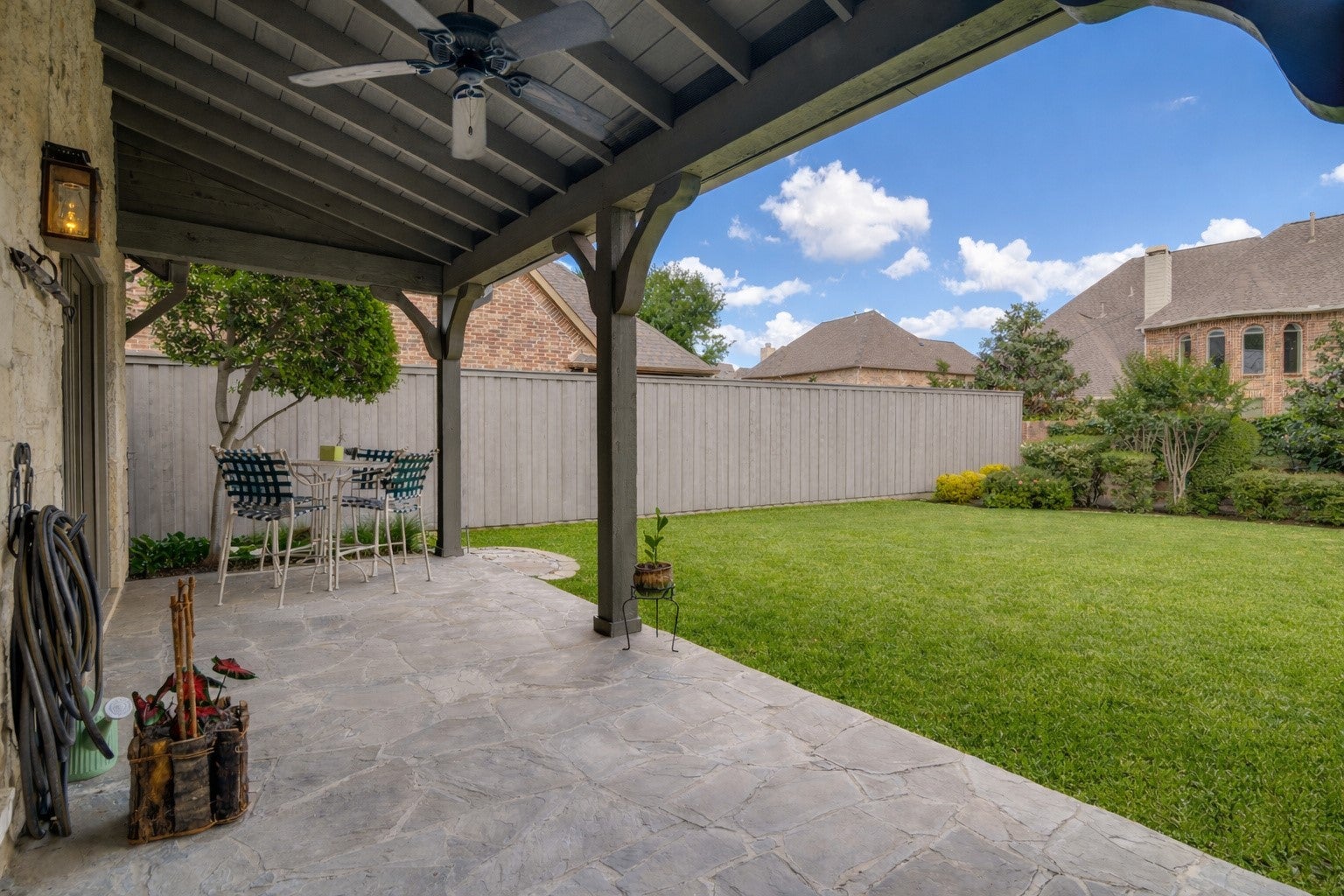 Nestled on a beautiful, tree-lined lot in the heart of Coppell, this exceptional 5-bedroom, 4-bath residence blends timeless character with spacious, functional design. A welcoming front elevation with stone accents and metal roof details sets the tone, leading into a grand entry with soaring ceilings, a dramatic staircase, and rich architectural detail throughout. Designed for both everyday living and entertaining, the expansive floor plan offers multiple living and dining areas, including a warm and inviting family room with wood beams, a stunning stone fireplace, and built-in cabinetry. The chefs kitchen is the heart of the home, featuring an oversized island, gas cooktop, stainless appliances, abundant cabinetry, and a seamless connection to the breakfast area and living spaces. The private primary suite is a serene retreat with backyard views and a spacious bath complete with dual vanities, soaking tub, and separate shower. A dedicated study with custom built-ins provides the perfect work-from-home space, while additional bedrooms and flexible living areas, including a large upstairs sitting or game room offer room for everyone. Step outside to your own backyard oasis, where a sparkling pool with waterfall, lush landscaping, and multiple seating areas create the ideal setting for relaxing or entertaining. The covered patio extends your living space year round. Additional highlights include hardwood floors, extensive built-ins, a well-appointed laundry room, and thoughtful storage throughout. Ideally located near parks, trails, dining, and within award-winning Coppell ISD.