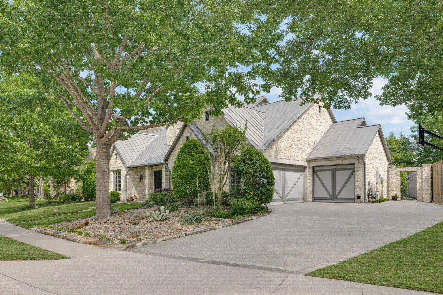 Nestled on a beautiful, tree-lined lot in the heart of Coppell, this exceptional 5-bedroom, 4-bath residence blends timeless character with spacious, functional design. A welcoming front elevation with stone accents and metal roof details sets the tone, leading into a grand entry with soaring ceilings, a dramatic staircase, and rich architectural detail throughout.