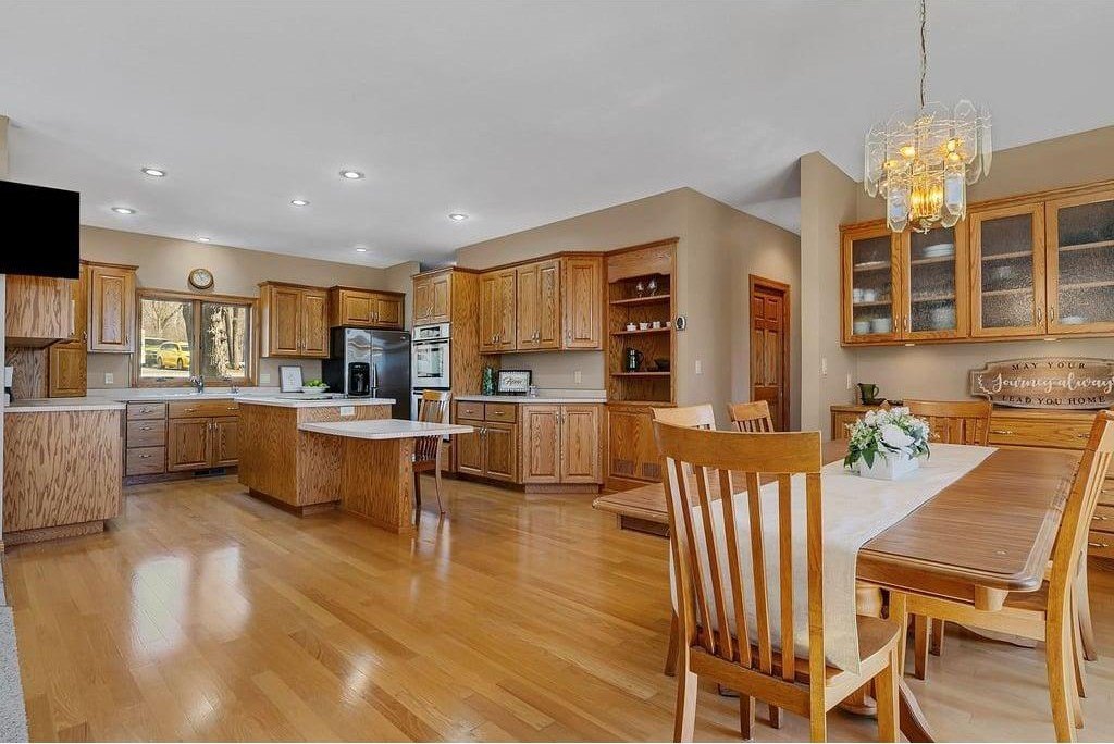 Open House Sunday, April 19th from 11:30-1:30! Welcome to this beautifully maintained ranch-style home located in one of the area's most desirable, established neighborhoods, known for its mature trees, quiet streets, and timeless appeal.A spacious entryway with a convenient coat closet creates a warm and inviting first impression. Inside, newer engineered wood flooring flows throughout areas of the main level. The layout offers an ideal balance of everyday functionality and refined gathering spaces, including a dormer window, and a distinctive ceiling feature that adds architectural character.A versatile office or formal sitting room is set behind French doors and accented by elevated ceilings, offering flexibility for work or relaxation. The main-level family room connects seamlessly to the kitchen and dining areas, creating a natural hub for daily living. Patio doors lead to a large deck overlooking a private, tree-surrounded backyard including an apple tree giving you a wonderful exterior setting for morning and evening enjoyment.The kitchen is thoughtfully designed with cabinetry featuring pullouts, a dedicated cookie sheet cabinet, pantry, and a built-in desk area that adds both charm and convenience.The main-level primary suite comes complete with a walk-in closet with a bath featuring dual sinks, a walk-in shower, and a corner jetted tub. A private door from the suite offers direct access to the deck, extending the living space outdoors. Also on the main level, you'll find a second bedroom, a full bathroom, and a laundry room with a sink. Accessibility has been carefully considered, with all main-level doorways designed for ease of access.The lower level expands the home with a spacious family room offering a gas fireplace, creating a cozy yet open setting. This level also includes two bedrooms with egress windows, along with two additional non-conforming rooms ideal for a craft room, workshop, or additional storage. A ¾ bathroom and a cold storage room with shelving complete the space.Additional highlights include abundant storage throughout the home with numerous hall closets, along with important updates such as shingles replaced in 2025, a furnace in 2018, and a water heater in 2023.The triple-stall garage adds exceptional functionality, featuring a sink and a separate third stall with a convenient drive-through door to the backyard. A perfect for lawn equipment or additional access.This home offers a rare opportunity to enjoy classic ranch-style living, thoughtful maintenance updates, and a highly sought-after location within an established neighborhood.Call an agent today for a private showing.