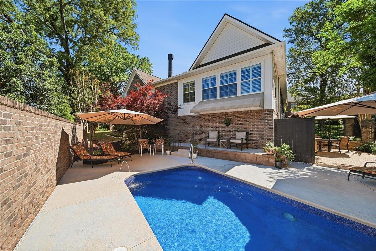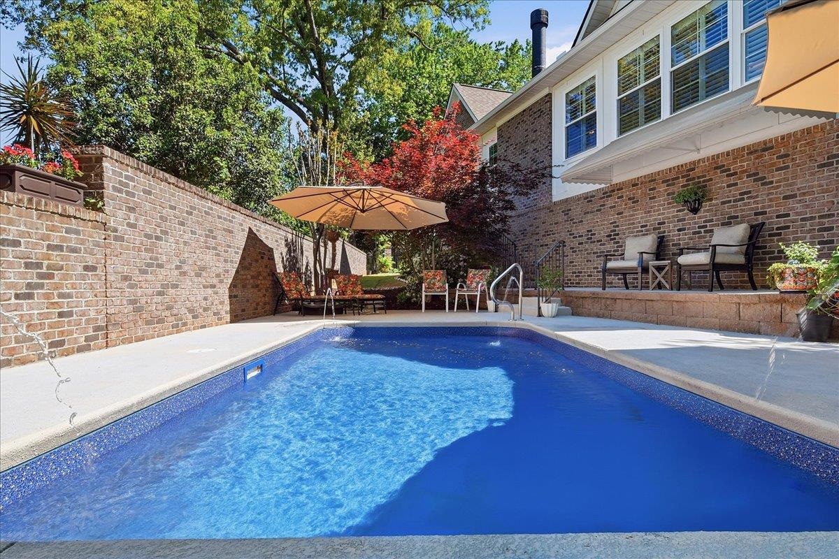 Welcome to a truly exceptional custom-built residence where timeless craftsmanship meets modern luxury. Nestled in one of Greenvilles most desirable areas, this all-brick home offers over 3,200 square feet of thoughtfully designed living space, showcasing elevated finishes and enduring architectural detail built to stand the test of time. LOCATION, LOCATION, LOCATION. Less than 5 minutes to Publix, Haywood Mall, Adams Bistro, Capris Italian, Starbucks, Sprouts Farmers Market, the new premium Picklr Pickleball Club, and all the conveniences of Pelham and Haywood Road. Just 8 minutes to Downtown Greenville and conveniently located just off E. North Street. Dozens of restaurants and shops are all within 5 minutes. Step onto the inviting rocking chair front porch overlooking the stunning, mature front yard. From the moment you enter, you are greeted by a dramatic 18-foot cathedral ceiling in the foyer, a sweeping curved staircase, and elegant interior archways that set the tone for the homes refined character. Extensive crown molding, custom millwork, and rich hardwood flooring run throughout, creating a warm yet sophisticated atmosphere. The impressive two-story great room features a gas fireplace, wet bar, wine cabinet, and custom cabinetry—perfect for entertaining. The spacious primary suite on the main level also includes a gas fireplace, private access to the sunroom, and a spa-like ensuite bath complete with a separate custom-tiled rain shower, jetted soaking tub, water closet, and a large dressing room with an island dresser and window seat overlooking the front porch. At the heart of the home is a stunning chefs kitchen, appointed with premium Thermador appliances, including a gas oven/range, custom hood, custom cabinetry, and Carrera marble countertops—also featured on the wet bar and in every bathroom—blending beauty and function for everyday living and entertaining. The countertops were resealed and polished in April 2026. The eat-in kitchen dining area, perfect for daily meals and for entertaining, is enhanced by a crystal chandelier. From here, step out to the spacious screened porch, newly built in 2025, where you can take in beautiful sunsets. The bright, recently added sunroom serves as a true centerpiece of the home, featuring a gas fireplace, a new split-unit HVAC system for additional year-round comfort, and a glass partition that can be opened or closed for seamless entertaining and daily living. It overlooks an expertly designed outdoor living space complete with hardscaping, a heated saltwater pool with fountains, and a custom brick privacy wall integrated with wrought iron fencing—offering both elegance and seclusion. The pool liner was replaced in April 2026. An additional side patio with circular-pattern paver stone provides the perfect setting for outdoor gatherings, complete with house gas hookups for your grill and fire pit. Upstairs, two guest bedrooms with generous closets share a full bath and a versatile loft space, offering privacy and flexibility. Each bedroom includes additional attic storage. The full bathroom features the same timeless marble countertops found in the kitchen and primary bath. Additional storage is abundant, including a separate walk-in attic space. The homes generous layout provides comfortable living spaces both indoors and out, ideal for relaxation or hosting friends and family—enhanced throughout by exceptional quality and craftsmanship. Do not miss this meticulously curated and thoughtfully maintained custom home—an extraordinary opportunity that will not last!