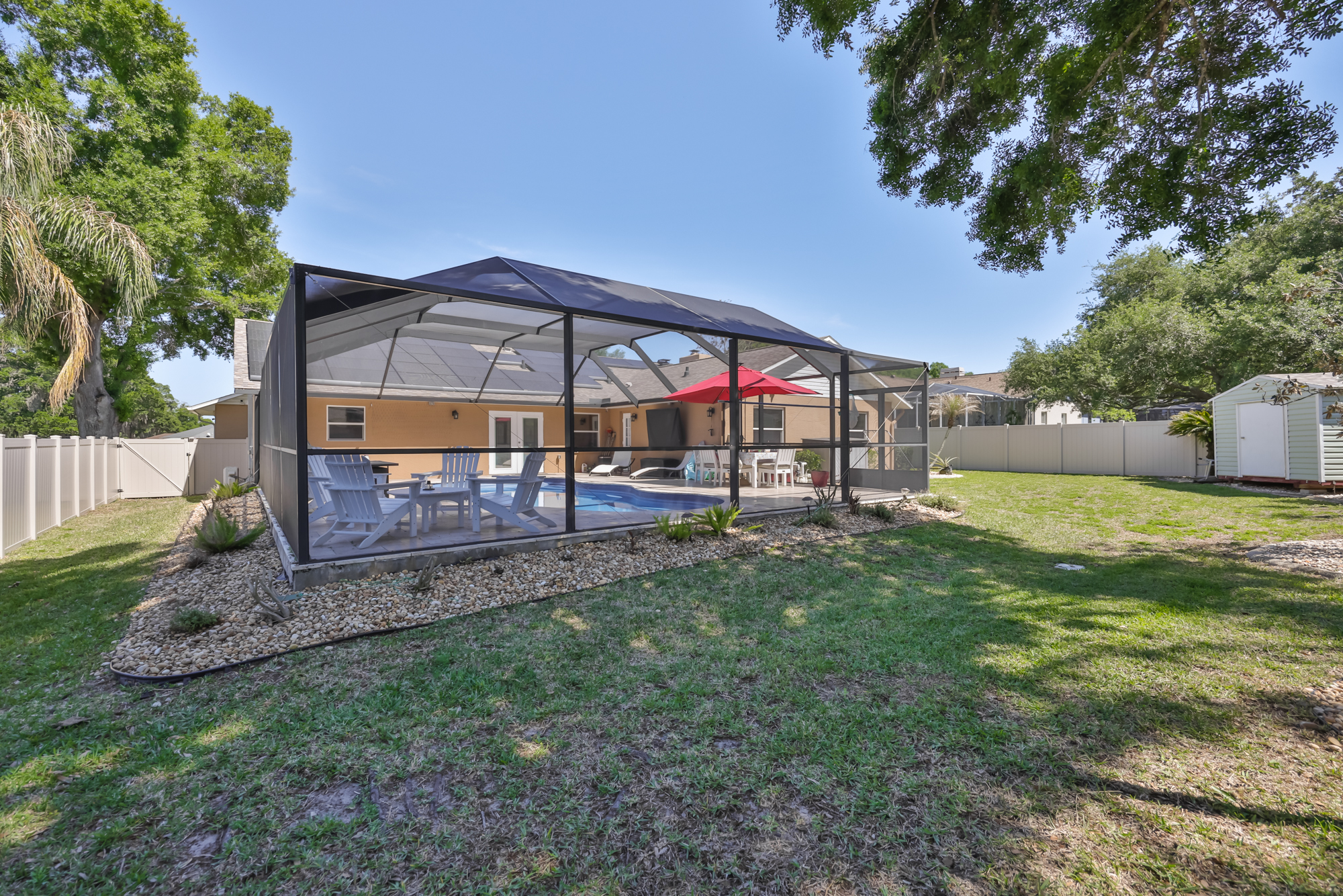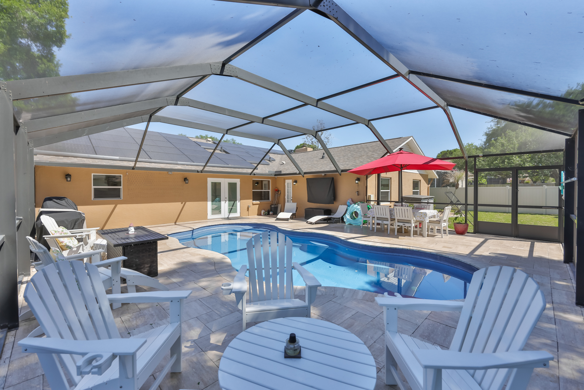 WELCOME HOME to this spacious and open 4/2/3 upgraded home in the heart of Valrico. You will absolutely love this well maintained and thoughtfully designed split floor plan to combine style and comfort. Enjoy the seamless flow providing many options for relaxation and entertainment. The home chef will adore the well appointed kitchen with sightlines to the family room with wood burning fireplace, dining room and breakfast nook to not miss a beat of the action. Additionally, youll be able to host many game night or watch parties in the pub style wet bar area. The Primary suite has large walk in closet and ensuite with separate shower and soaking tub. The ample sized secondary bedrooms share a large bathroom. Wait! Theres more; step outside to your expansive screened lanai and pool area situated on a large fenced corner lot for privacy and tranquility. Here are some of the updates: ROOF 2021, POOL 2020 VINYL FENCE 2024 DUAL MINI SPLIT AC SYSTEM 2020 SMART WATER HEATER 2024, solar panels with backup battery... the list goes on! Bent Tree is a quaint, established neighborhood with mature landscaping and close to top rated schools, shopping, dining, major roads to make commuting a breeze. This home has it ALL and is a must see! Schedule your private showing today!!