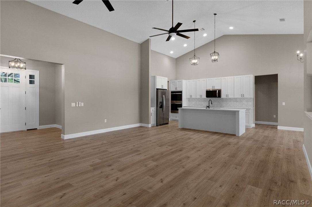 Discover luxury riverside living in this beautifully renovated 4-bedroom, 2.5-bath home on the St. Johns River in desirable Fleming Island. Spanning approximately 3,478 square feet, this residence offers an open, airy floor plan bathed in natural light, with breathtaking river views framed by a large steel-reinforced window in the living room. Boating enthusiasts will love the expansive 600-foot dock providing direct river access for effortless days on the water. Car collectors and hobbyists will appreciate the massive 5-car garage, which includes an air-conditioned section prepped for easy conversion into an in-law suite, workshop, or additional living space. The chef-inspired kitchen features modern finishes, generous counter space, and an ideal layout for entertaining family and friends. A practical, large mudroom handles everyday needs, while the spacious bedrooms offer comfort and privacy. The primary suite is a true retreat, complete with a spa-like ensuite bathroom for