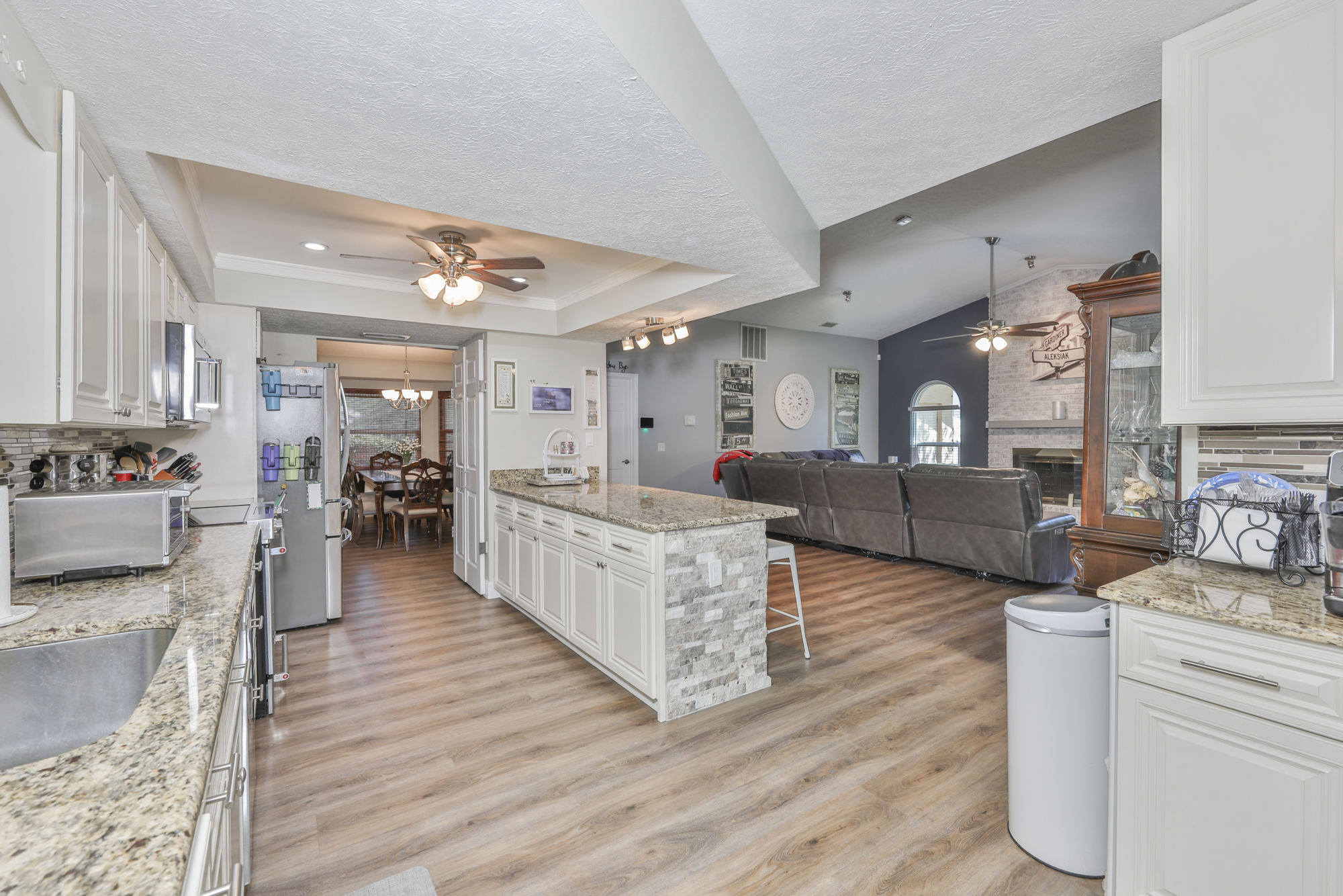 Welcome to this beautifully maintained split-level home with 5 bedrooms and 3 full baths. The home has a thoughtful layout with multiple living areas, ideal for both everyday living and entertaining. The main level welcomes you into an inviting living room that flows perfectly into the dining area and eat-in kitchen.