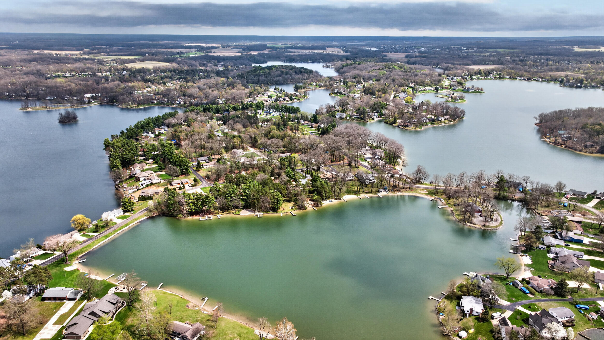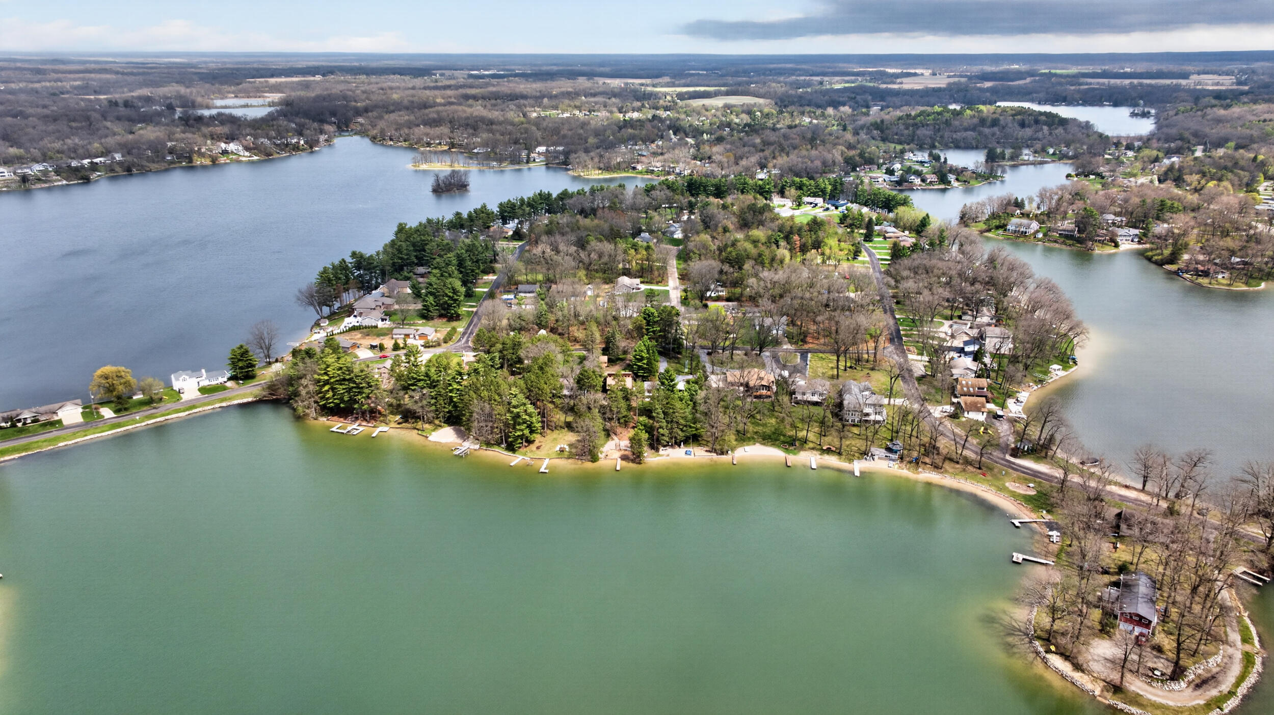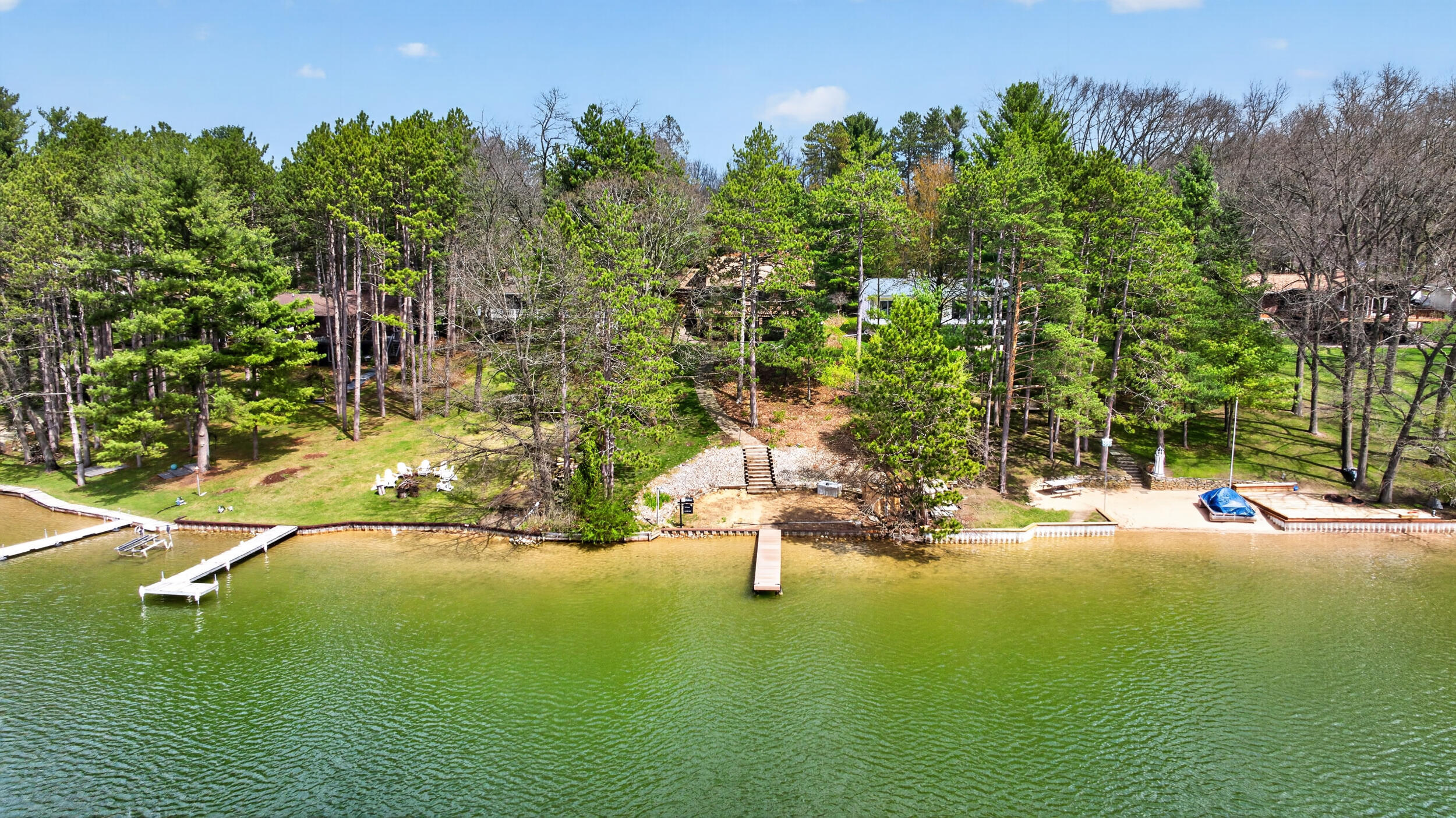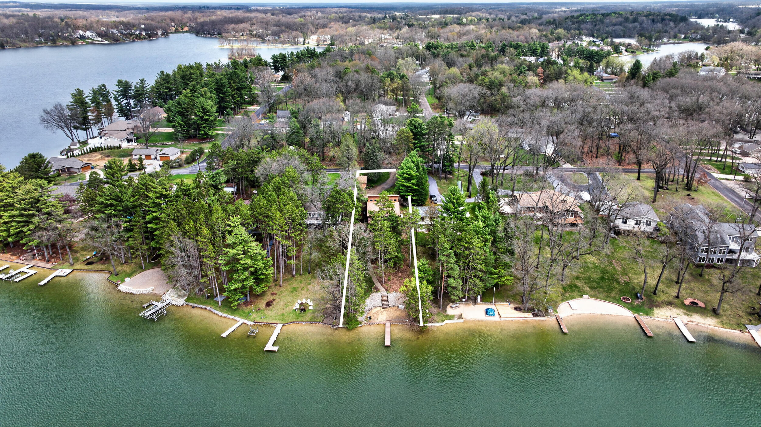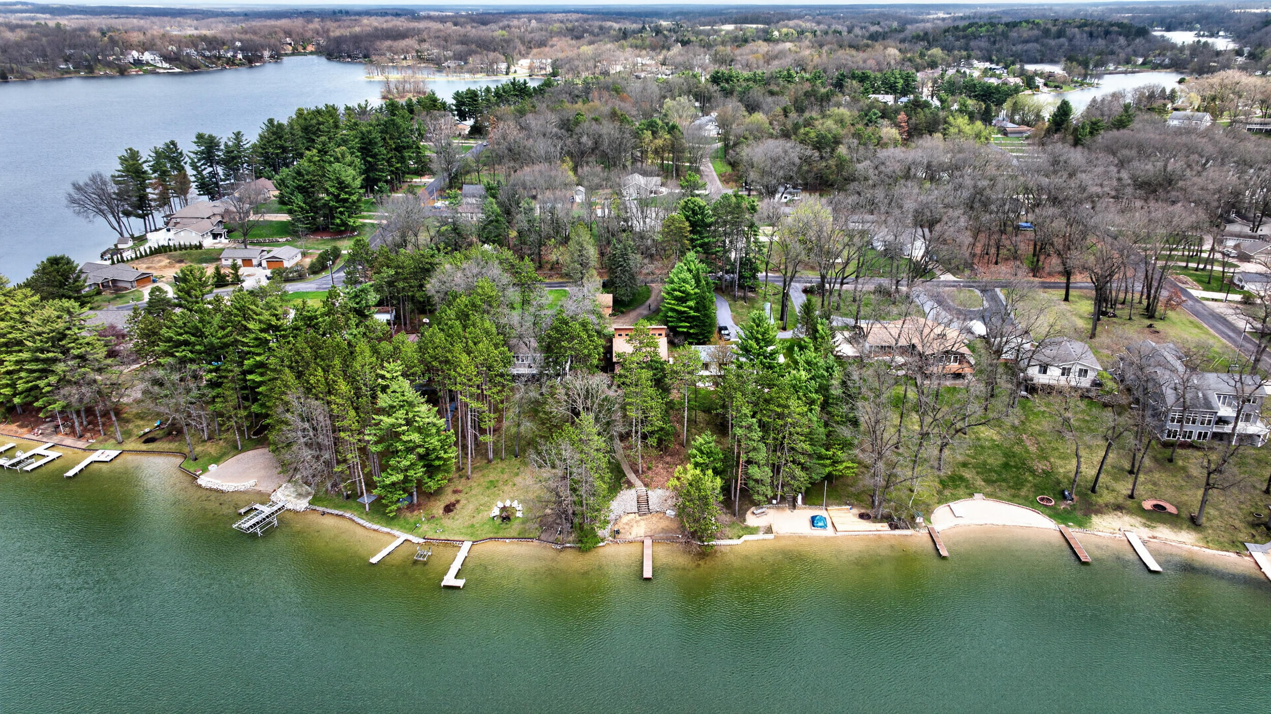 Experience the quintessential up north lifestyle right here in the prestigious Royal Shores community. Tucked away on Evelyns Bay, this stunning lakefront retreat sits on a private, all-sports Lake Leann shoreline characterized by towering trees, sandy bottoms, and pristine swimming waters.