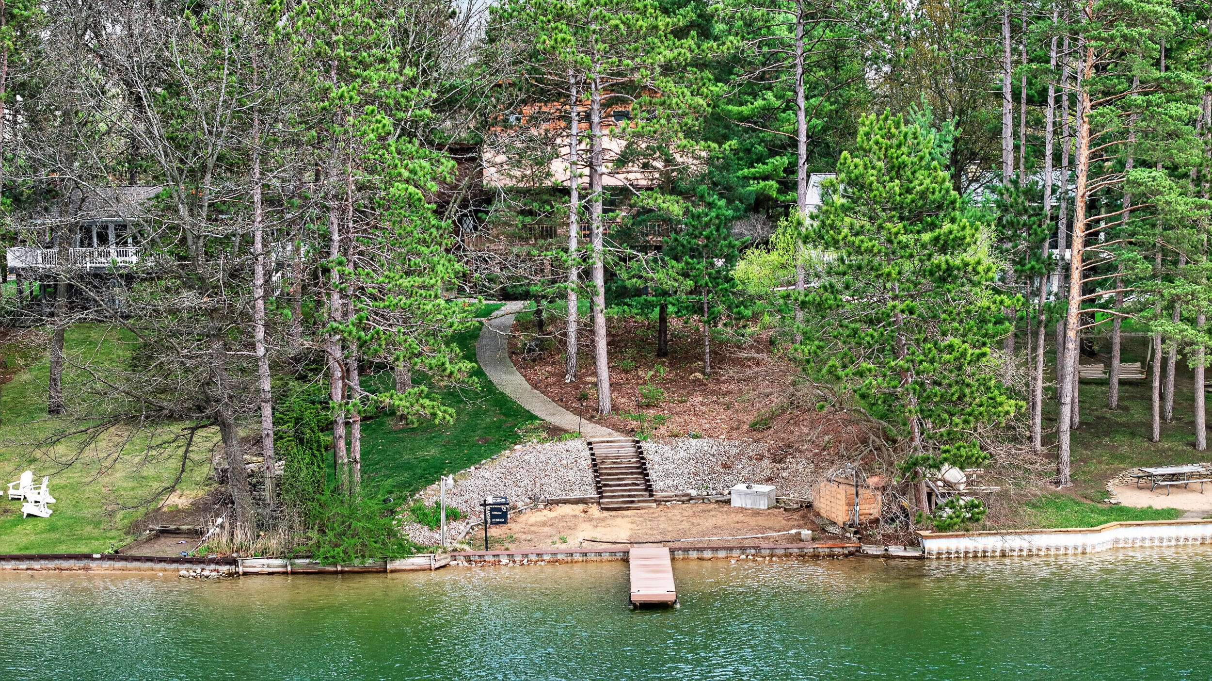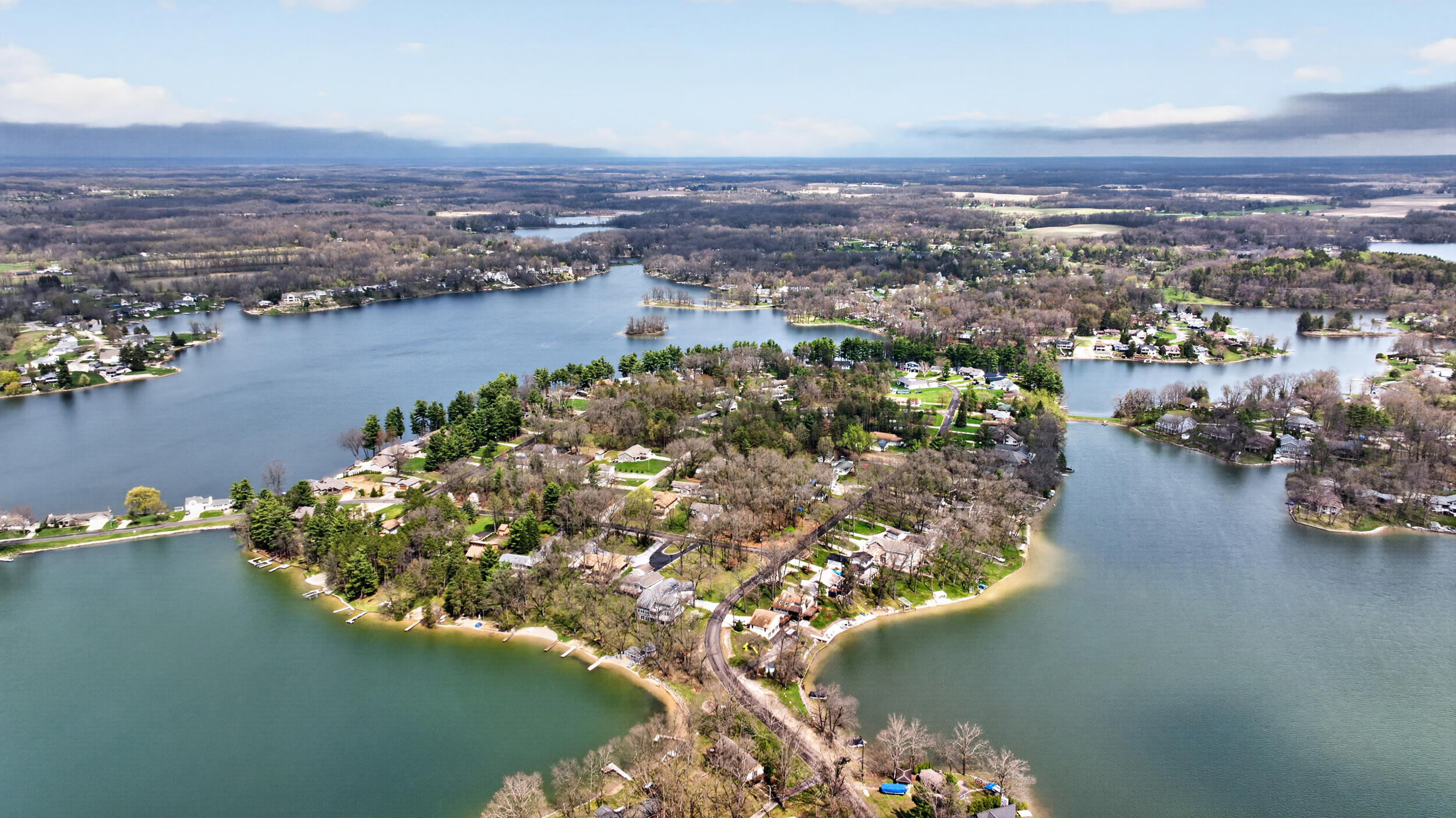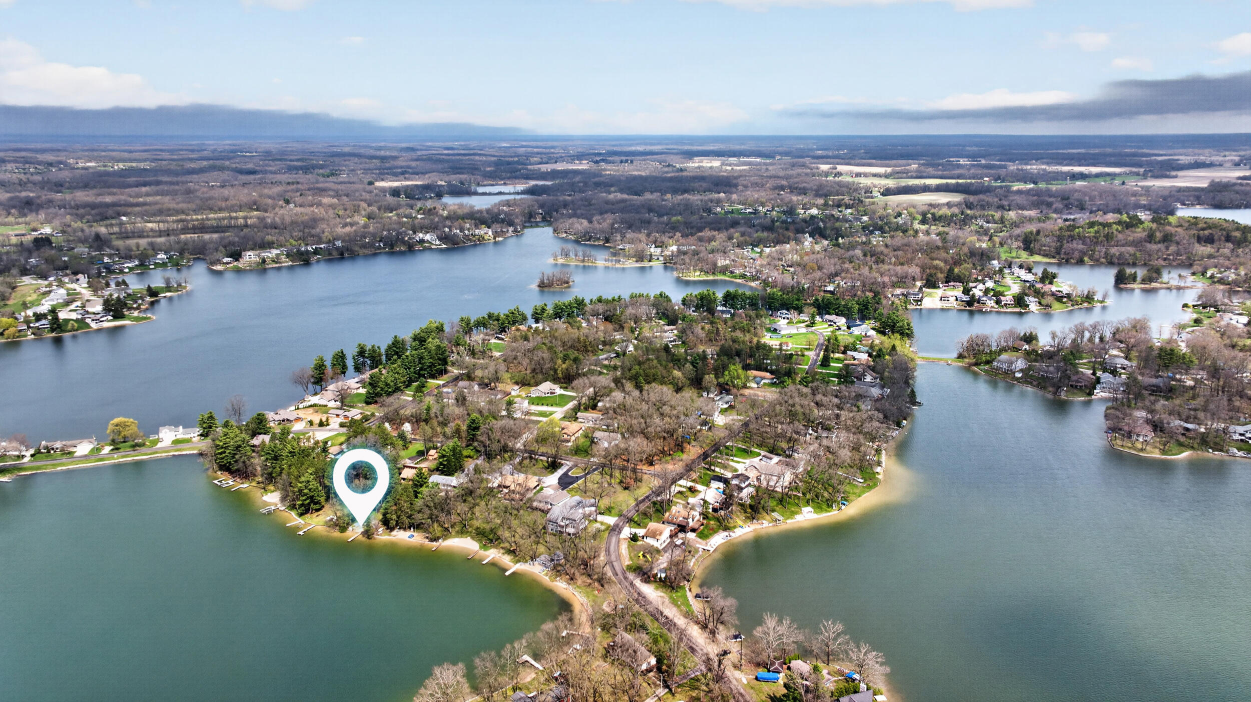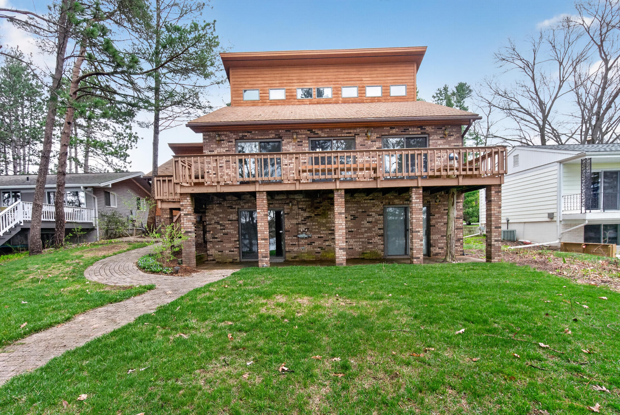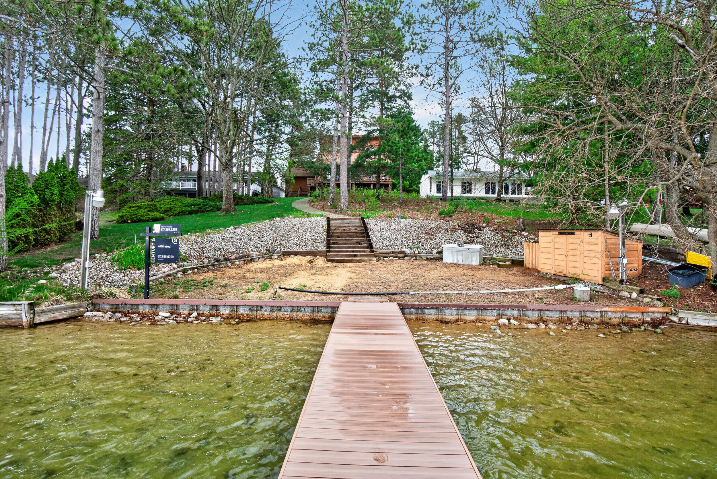 Experience the quintessential up north lifestyle right here in the prestigious Royal Shores community. Tucked away on Evelyns Bay, this stunning lakefront retreat sits on a private, all-sports Lake Leann shoreline characterized by towering trees, sandy bottoms, and pristine swimming waters. The home is perfectly positioned on a quiet, one-way peninsula that offers some of the most breathtaking elevated views of the water. From the moment you pull into the oversized driveway, the wooded setting and northern Michigan vacation feel set this property apart from every other home on the lake. The interior was masterfully designed to embrace the waterfront, featuring soaring vaulted ceilings and a wall of lakeside windows that flood the home with natural light. Multiple sliding glass doors lead to an expansive deck, perfect for entertaining or soaking in the scenery. Recent mechanical and cosmetic upgrades provide total peace of mind, including a natural gas line to your whole-home generator, and fresh paint throughout. The kitchen and bathrooms have been refreshed with all-new sink faucets, new toilets, and a brand-new suite of appliances including a stove, dishwasher, and microwave. A rare and highly functional feature of this home is the layout, which provides a full bathroom for every bedroom to ensure total privacy for your family and lake guests. The walk-out lower level serves as a premier entertainment hub, complete with a secondary living area, a wet bar, and a dedicated room featuring a hot tub and sauna. Storage is never an issue here, as the property includes an oversized garage designed to house all your lake toys, plus a matching shed for yard equipment. Outside, your private waterfront experience is completed by a permanent dock, making it easier than ever to enjoy the water. With lake season finally here, this is a unique opportunity to secure a fully equipped home in one of the most sought-after locations on the water.