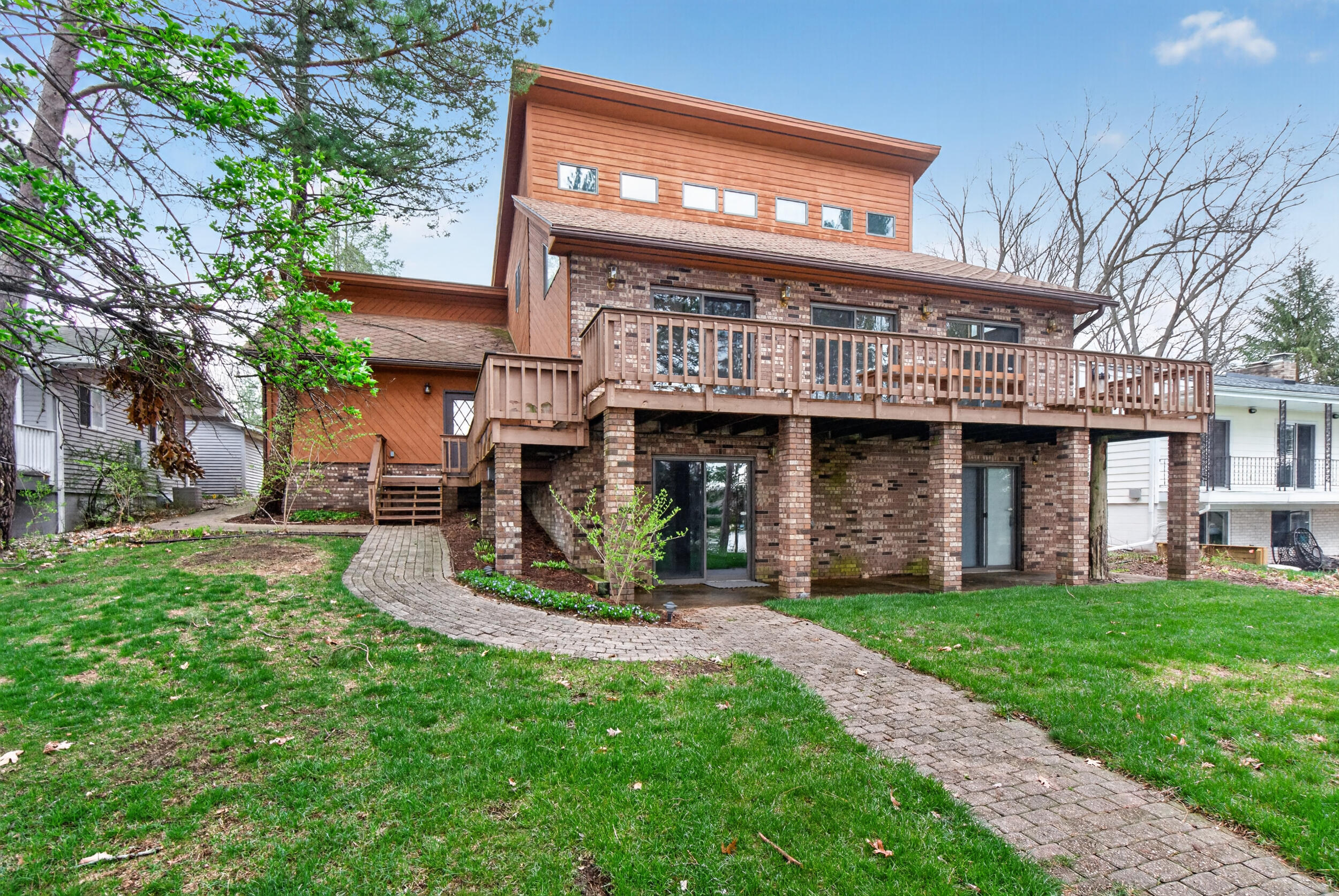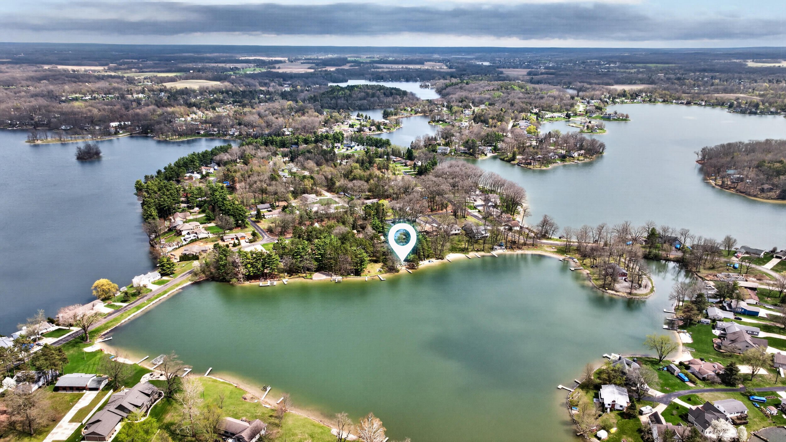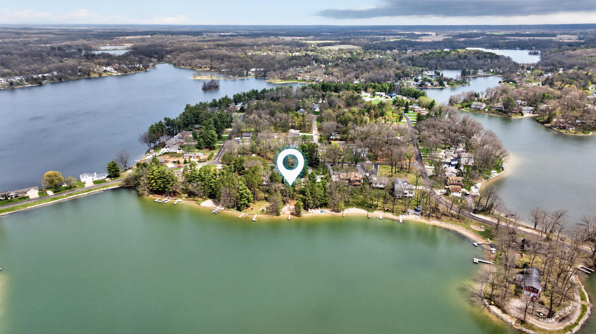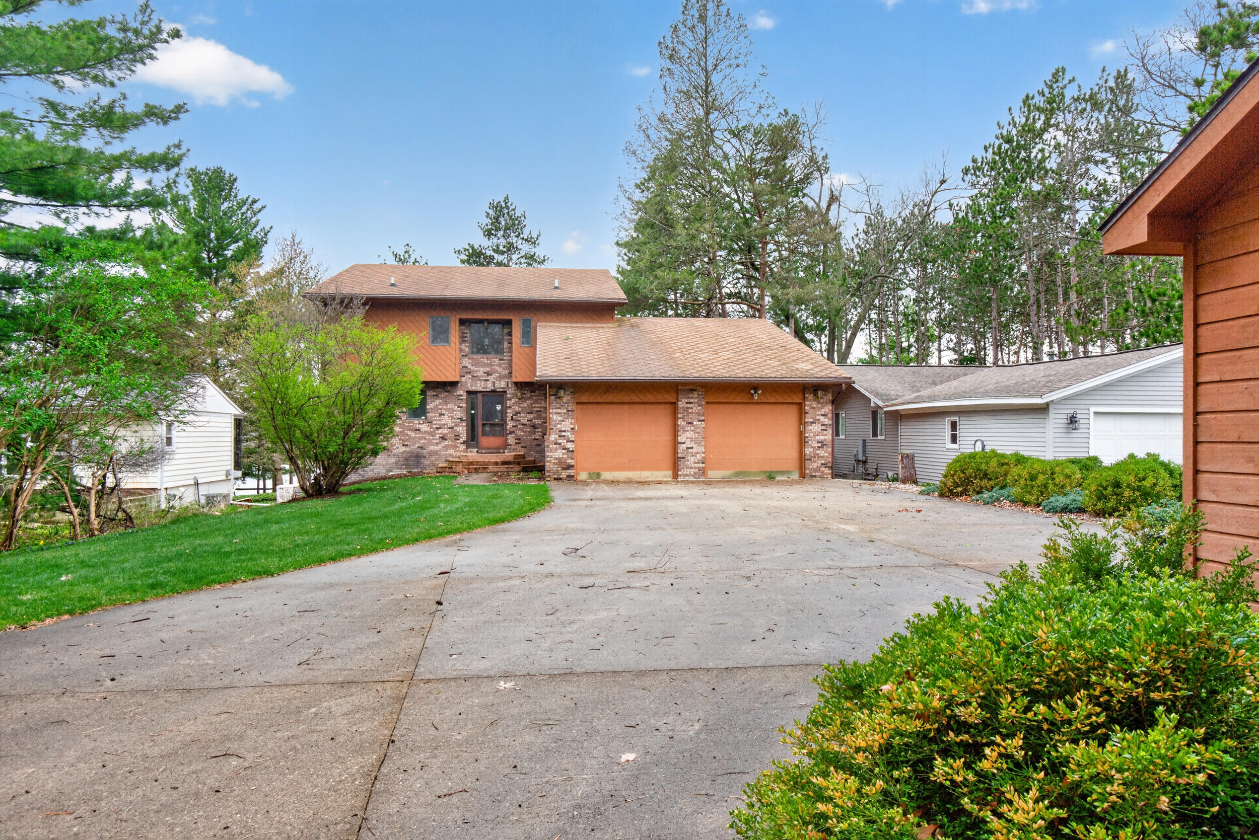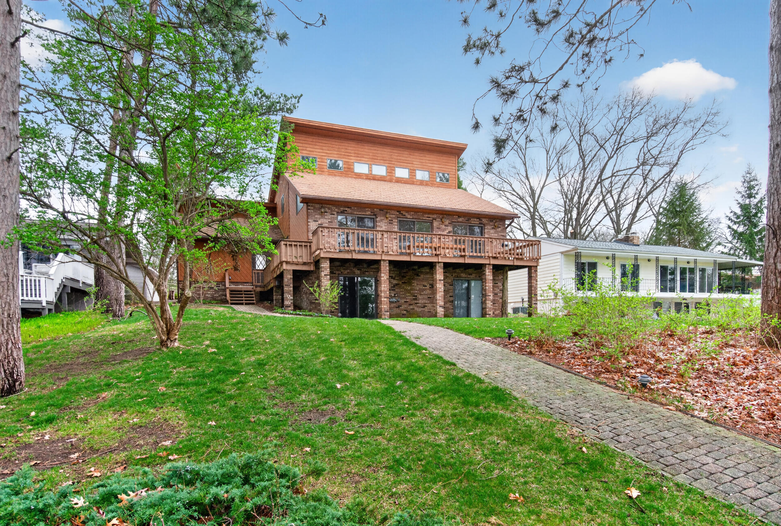 Experience the quintessential up north lifestyle right here in the prestigious Royal Shores community. Tucked away on Evelyns Bay, this stunning lakefront retreat sits on a private, all-sports Lake Leann shoreline characterized by towering trees, sandy bottoms, and pristine swimming waters. The home is perfectly positioned on a quiet, one-way peninsula that offers some of the most breathtaking elevated views of the water. From the moment you pull into the oversized driveway, the wooded setting and northern Michigan vacation feel set this property apart from every other home on the lake. The interior was masterfully designed to embrace the waterfront, featuring soaring vaulted ceilings and a wall of lakeside windows that flood the home with natural light. Multiple sliding glass doors lead to an expansive deck, perfect for entertaining or soaking in the scenery. Recent mechanical and cosmetic upgrades provide total peace of mind, including a natural gas line to your whole-home generator, and fresh paint throughout. The kitchen and bathrooms have been refreshed with all-new sink faucets, new toilets, and a brand-new suite of appliances including a stove, dishwasher, and microwave. A rare and highly functional feature of this home is the layout, which provides a full bathroom for every bedroom to ensure total privacy for your family and lake guests. The walk-out lower level serves as a premier entertainment hub, complete with a secondary living area, a wet bar, and a dedicated room featuring a hot tub and sauna. Storage is never an issue here, as the property includes an oversized garage designed to house all your lake toys, plus a matching shed for yard equipment. Outside, your private waterfront experience is completed by a permanent dock, making it easier than ever to enjoy the water. With lake season finally here, this is a unique opportunity to secure a fully equipped home in one of the most sought-after locations on the water.
