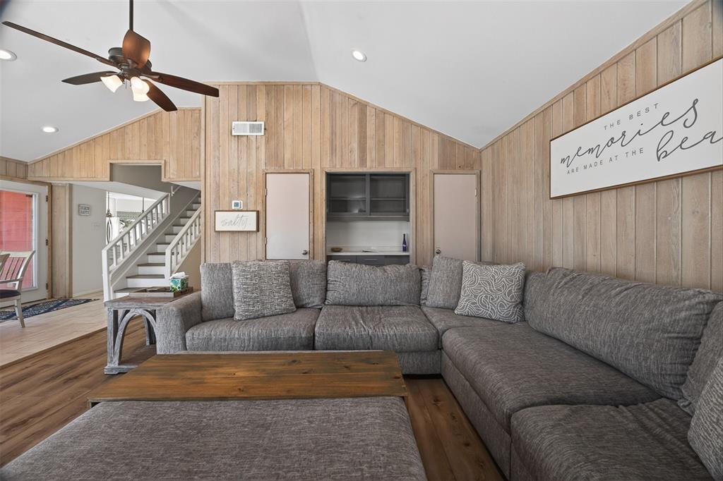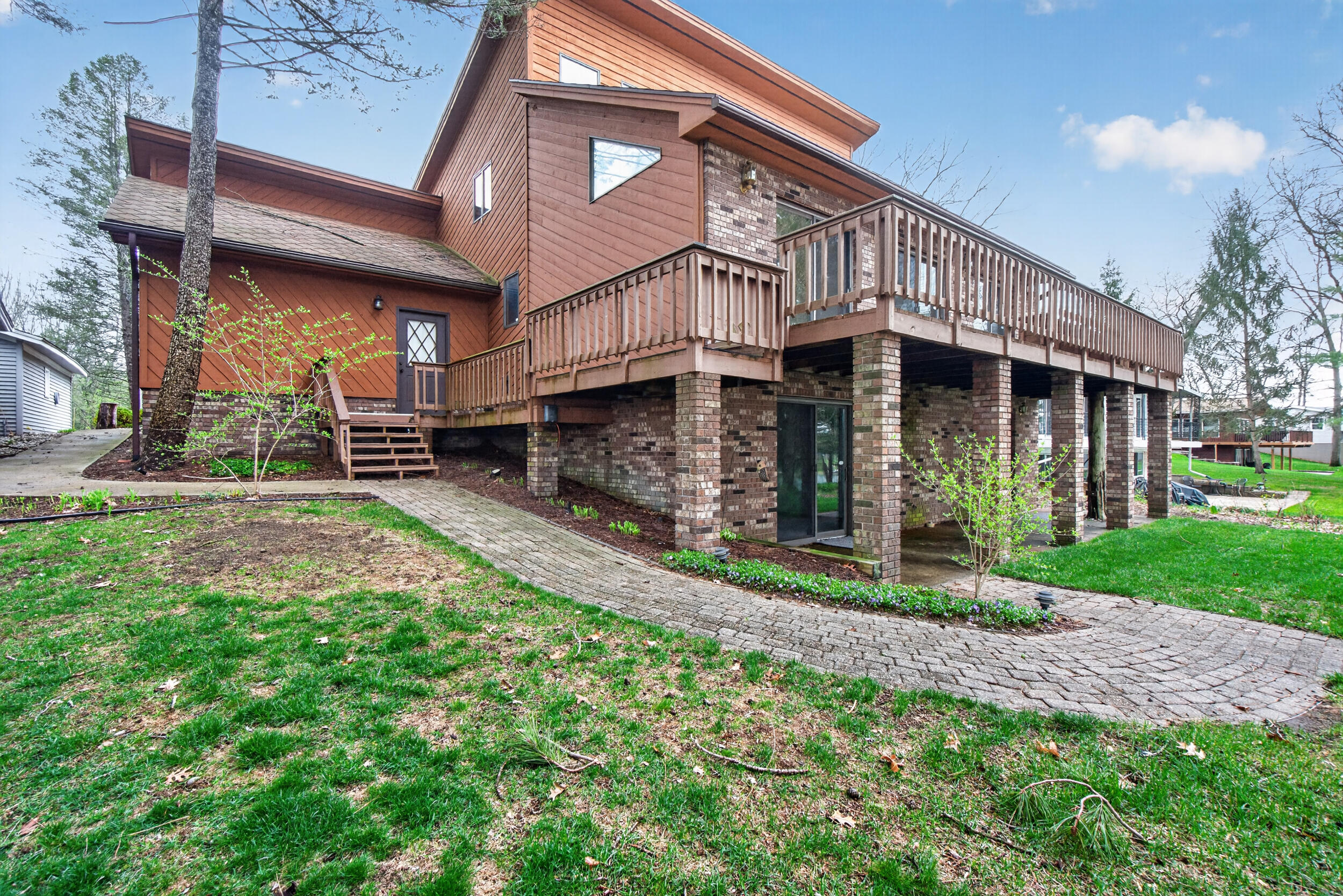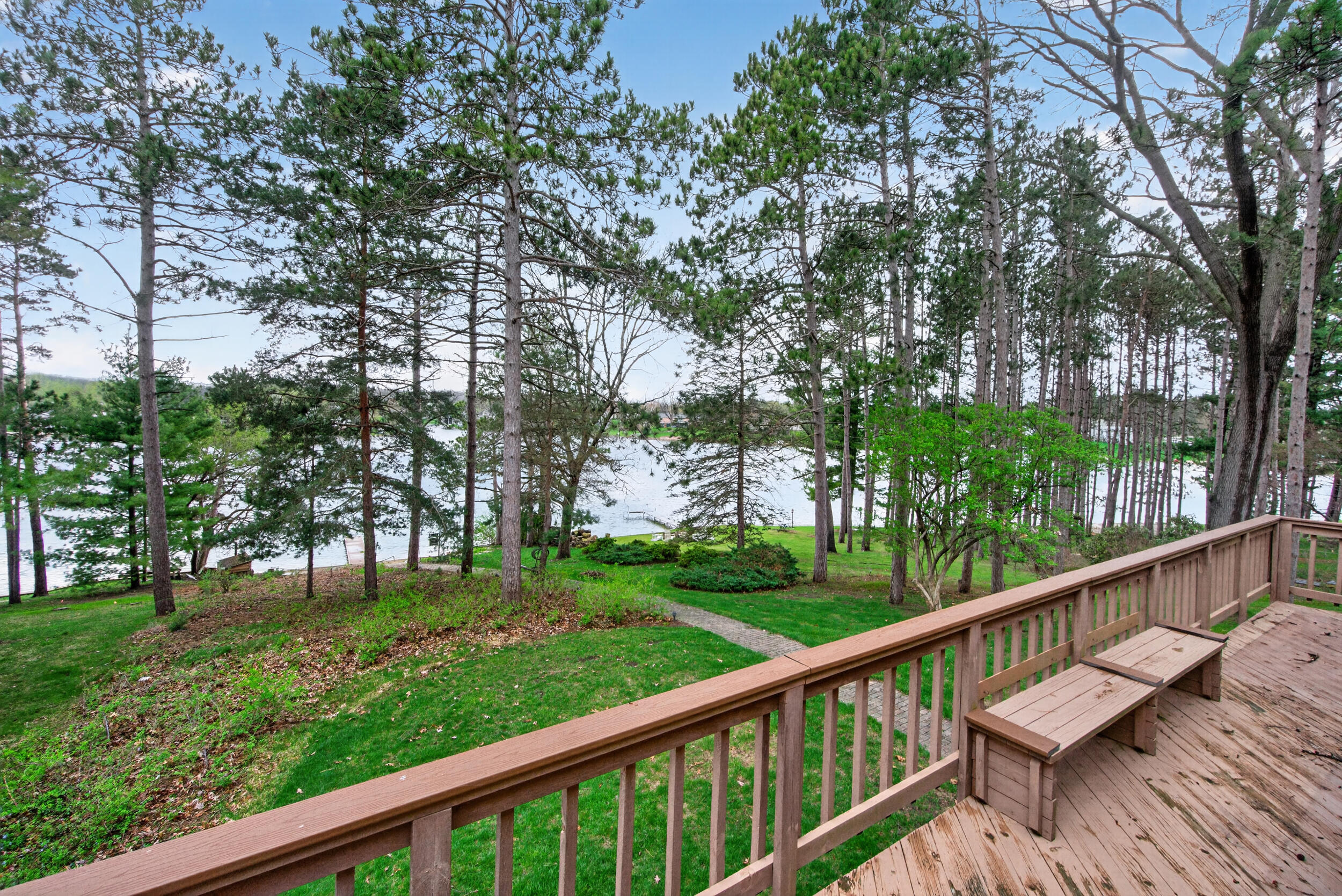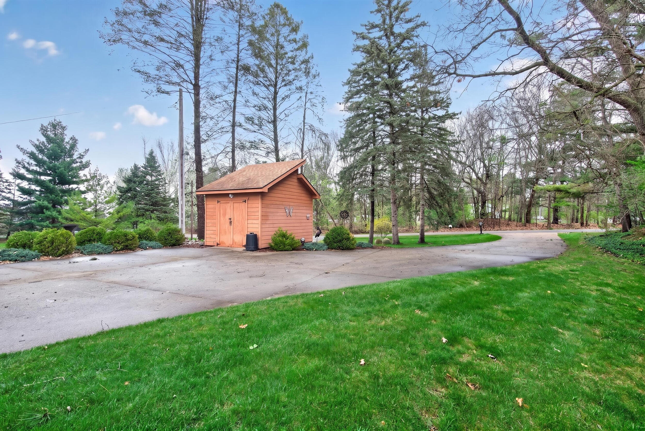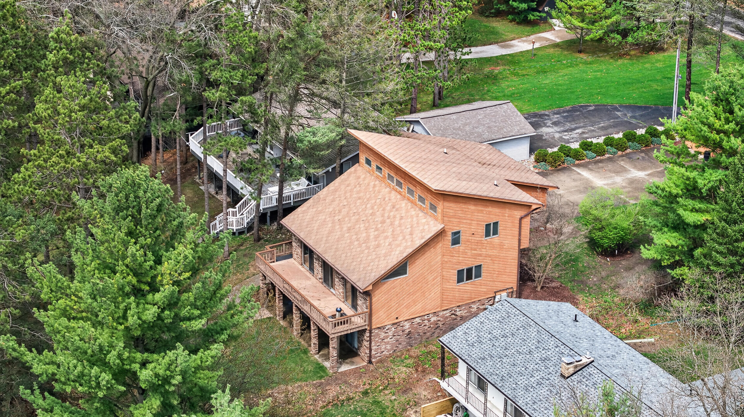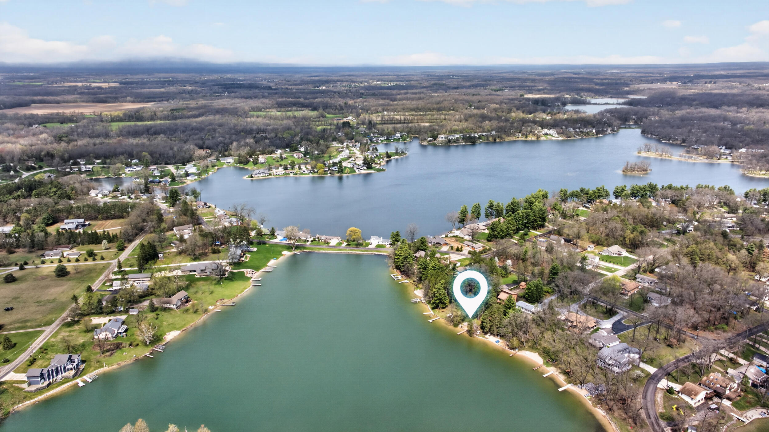 Experience the quintessential up north lifestyle right here in the prestigious Royal Shores community. Tucked away on Evelyns Bay, this stunning lakefront retreat sits on a private, all-sports Lake Leann shoreline characterized by towering trees, sandy bottoms, and pristine swimming waters. The home is perfectly positioned on a quiet, one-way peninsula that offers some of the most breathtaking elevated views of the water. From the moment you pull into the oversized driveway, the wooded setting and northern Michigan vacation feel set this property apart from every other home on the lake. The interior was masterfully designed to embrace the waterfront, featuring soaring vaulted ceilings and a wall of lakeside windows that flood the home with natural light. Multiple sliding glass doors lead to an expansive deck, perfect for entertaining or soaking in the scenery. Recent mechanical and cosmetic upgrades provide total peace of mind, including a natural gas line to your whole-home generator, and fresh paint throughout. The kitchen and bathrooms have been refreshed with all-new sink faucets, new toilets, and a brand-new suite of appliances including a stove, dishwasher, and microwave. A rare and highly functional feature of this home is the layout, which provides a full bathroom for every bedroom to ensure total privacy for your family and lake guests. The walk-out lower level serves as a premier entertainment hub, complete with a secondary living area, a wet bar, and a dedicated room featuring a hot tub and sauna. Storage is never an issue here, as the property includes an oversized garage designed to house all your lake toys, plus a matching shed for yard equipment. Outside, your private waterfront experience is completed by a permanent dock, making it easier than ever to enjoy the water. With lake season finally here, this is a unique opportunity to secure a fully equipped home in one of the most sought-after locations on the water.
