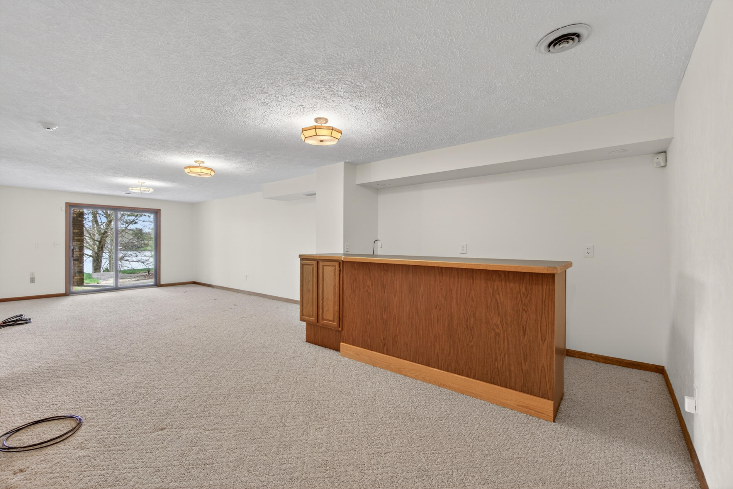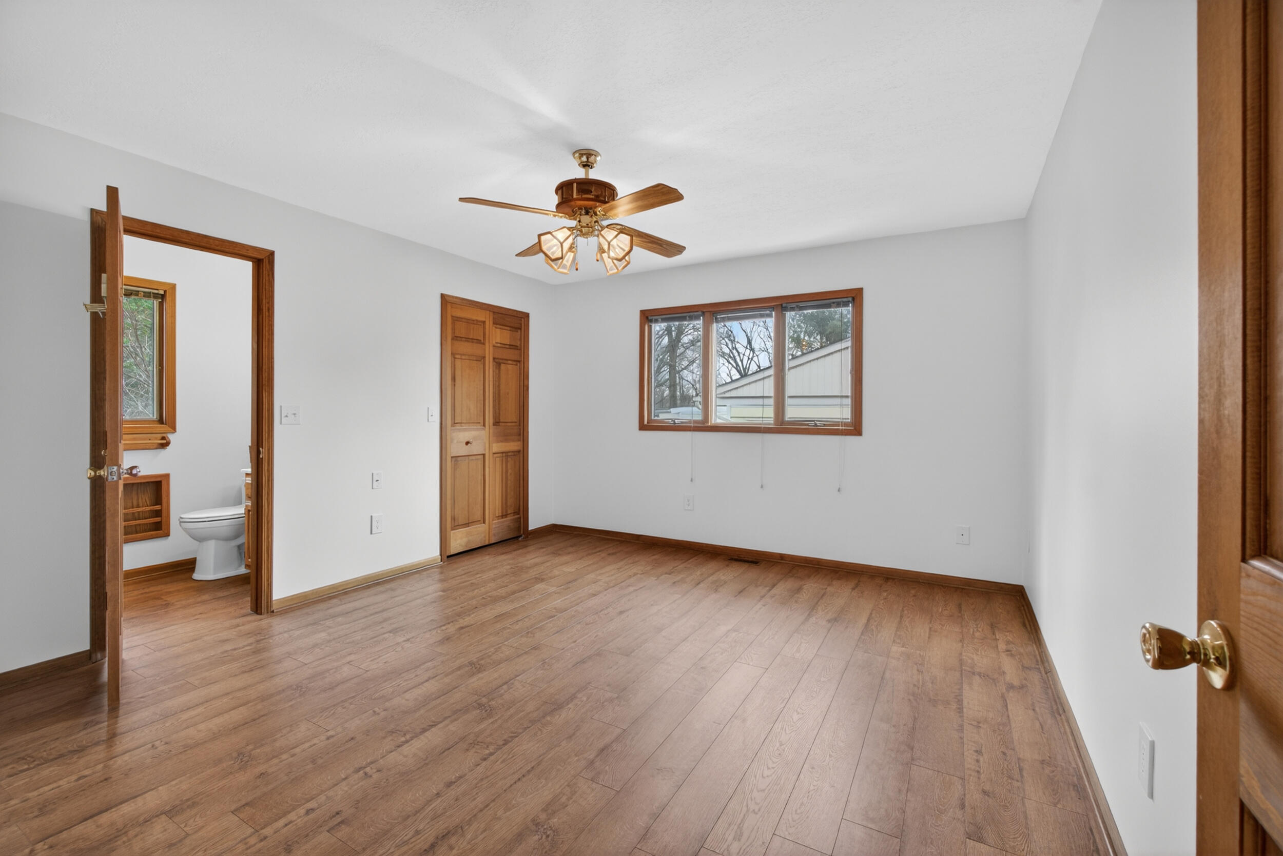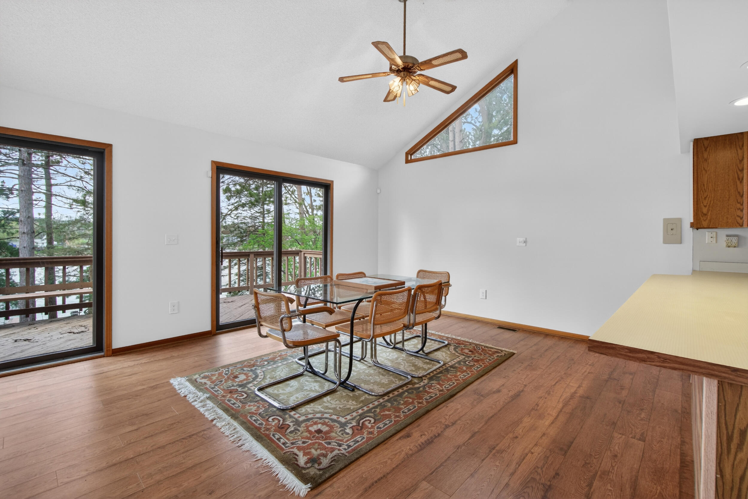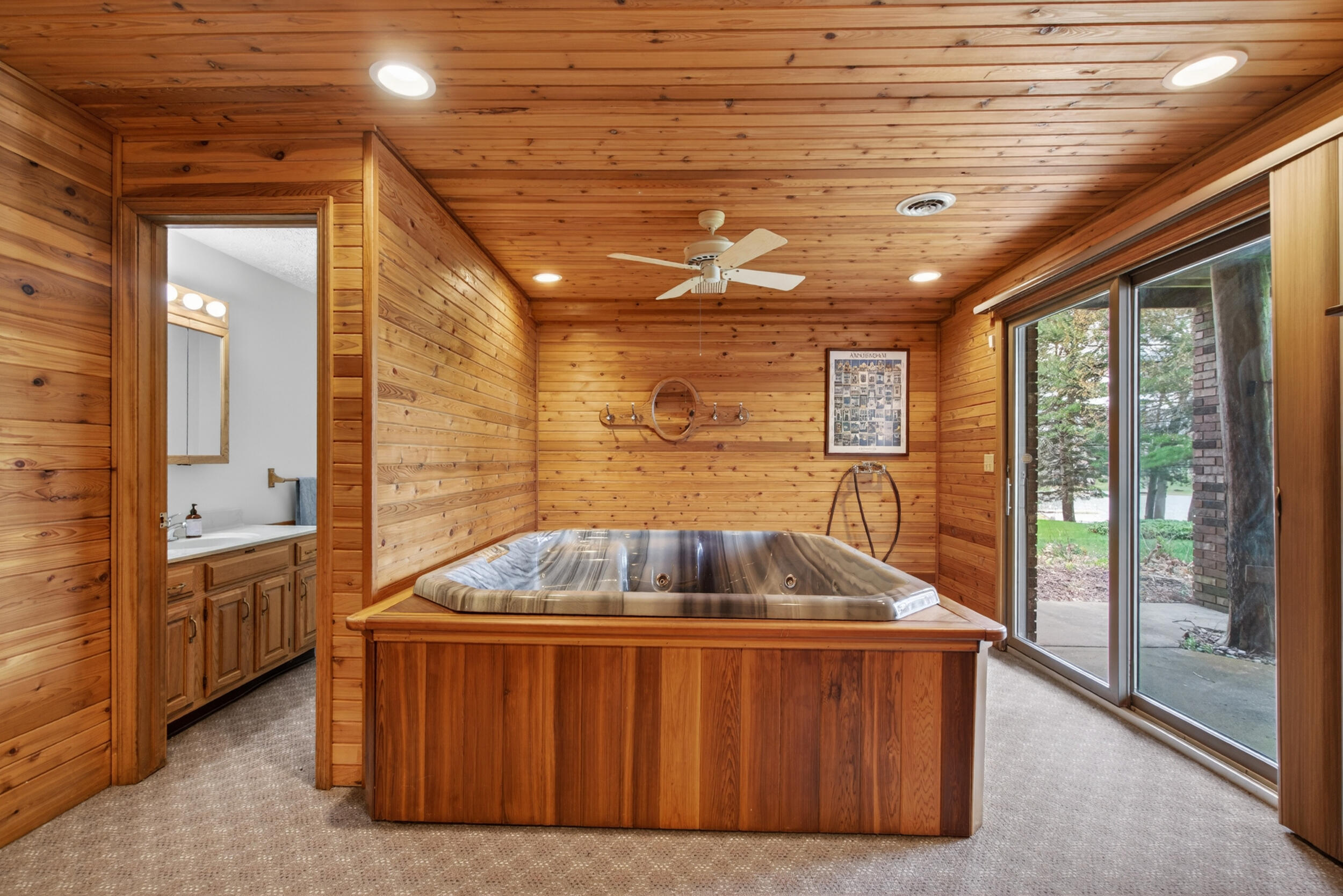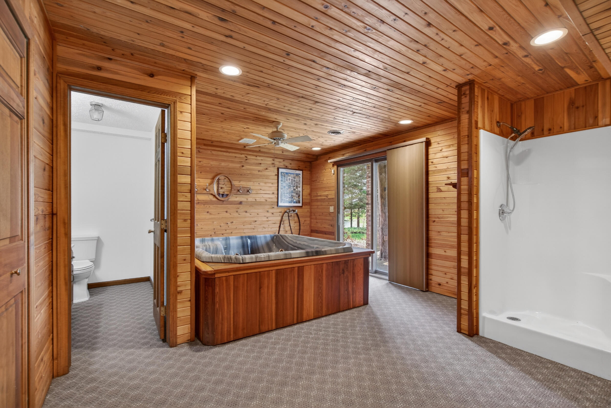 Experience the quintessential up north lifestyle right here in the prestigious Royal Shores community. Tucked away on Evelyns Bay, this stunning lakefront retreat sits on a private, all-sports Lake Leann shoreline characterized by towering trees, sandy bottoms, and pristine swimming waters. The home is perfectly positioned on a quiet, one-way peninsula that offers some of the most breathtaking elevated views of the water. From the moment you pull into the oversized driveway, the wooded setting and northern Michigan vacation feel set this property apart from every other home on the lake. The interior was masterfully designed to embrace the waterfront, featuring soaring vaulted ceilings and a wall of lakeside windows that flood the home with natural light. Multiple sliding glass doors lead to an expansive deck, perfect for entertaining or soaking in the scenery. Recent mechanical and cosmetic upgrades provide total peace of mind, including a natural gas line to your whole-home generator, and fresh paint throughout. The kitchen and bathrooms have been refreshed with all-new sink faucets, new toilets, and a brand-new suite of appliances including a stove, dishwasher, and microwave. A rare and highly functional feature of this home is the layout, which provides a full bathroom for every bedroom to ensure total privacy for your family and lake guests. The walk-out lower level serves as a premier entertainment hub, complete with a secondary living area, a wet bar, and a dedicated room featuring a hot tub and sauna. Storage is never an issue here, as the property includes an oversized garage designed to house all your lake toys, plus a matching shed for yard equipment. Outside, your private waterfront experience is completed by a permanent dock, making it easier than ever to enjoy the water. With lake season finally here, this is a unique opportunity to secure a fully equipped home in one of the most sought-after locations on the water.