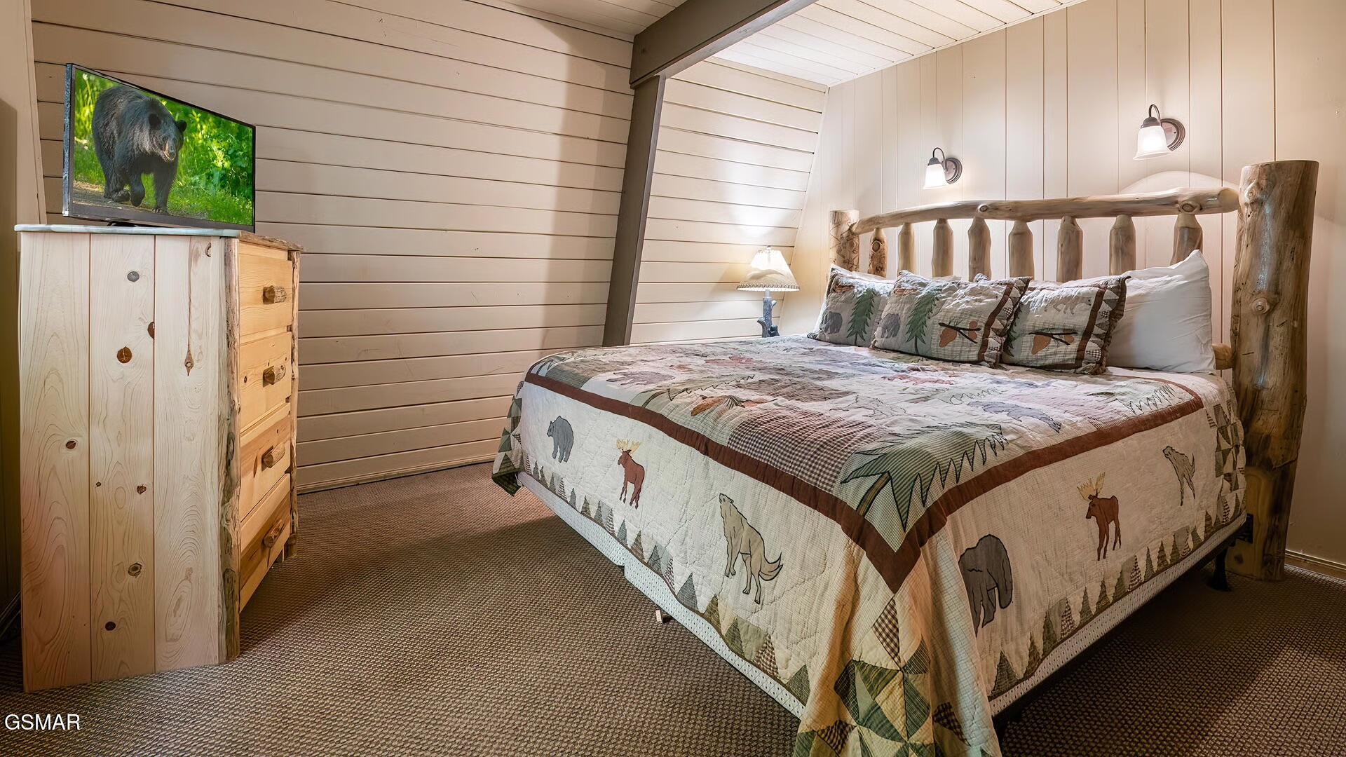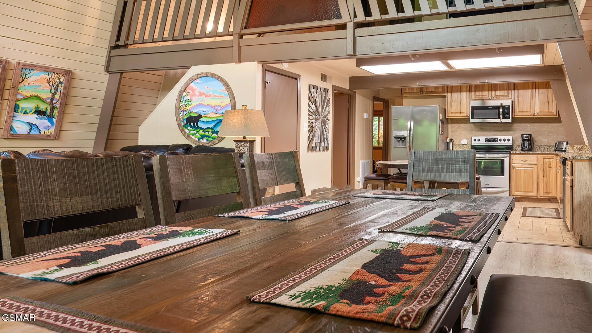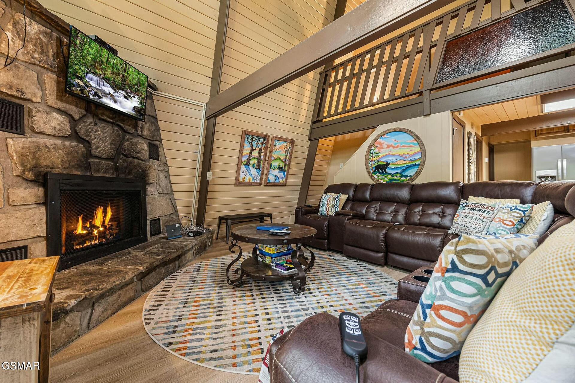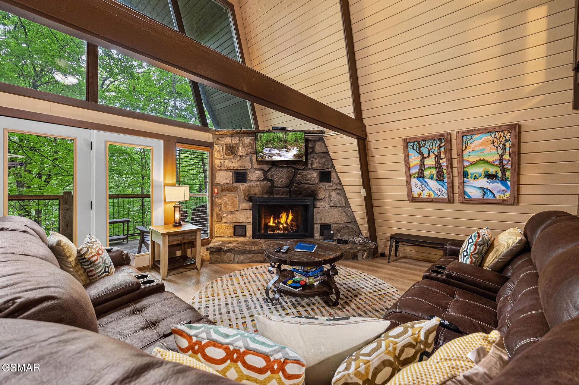 Set among mature trees with two wraparound deck areas overlooking the wooded hillside, this 5-bedroom, 3-bathroom vintage Mansard chalet has the kind of private setting that guests pay a premium for AND its walking distance to the entrance of Ober Mountain Ski Resort, just minutes from downtown Gatlinburg, and right on the doorstep of Great Smoky Mountains National Park. Its also across the street from the Ownerc Club of Chalet Village, which features pools, tennis courts, clubhouse and a playground. City-maintained roads make it accessible year-round. Services include city water, trash pick-up and fiber-optic high speed internet. By now youve noted a number of reasons why Chalet Village is considered the best location for an STR. Inside, more than 2,700 square feet unfolds across three distinct levels. The main floor centers on a great room with an open living and dining layout and a mountain stone fireplace that earns its keep on cool mountain evenings. Two bedrooms and a full bath complete the level. The loft above adds two more bedrooms, a den, and a second bath. Then there is the lower level featuring a large recreation room with a second fireplace, a fifth bedroom, a third bathroom, a private theater room and a sauna. The rental program is established and the location is among the most convenient in the area. For buyers looking for a personal retreat with serious upside, this one is worth a close look.