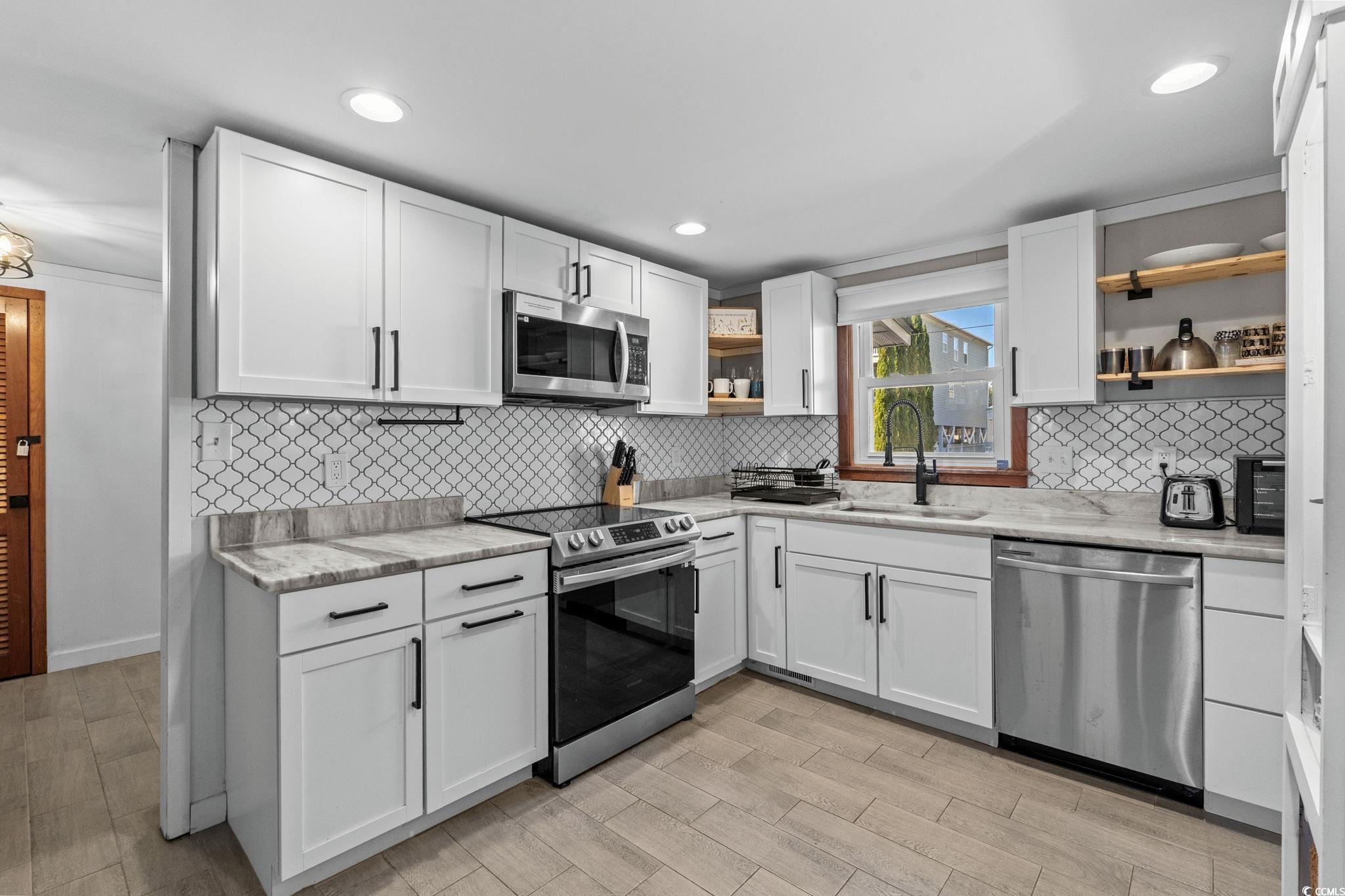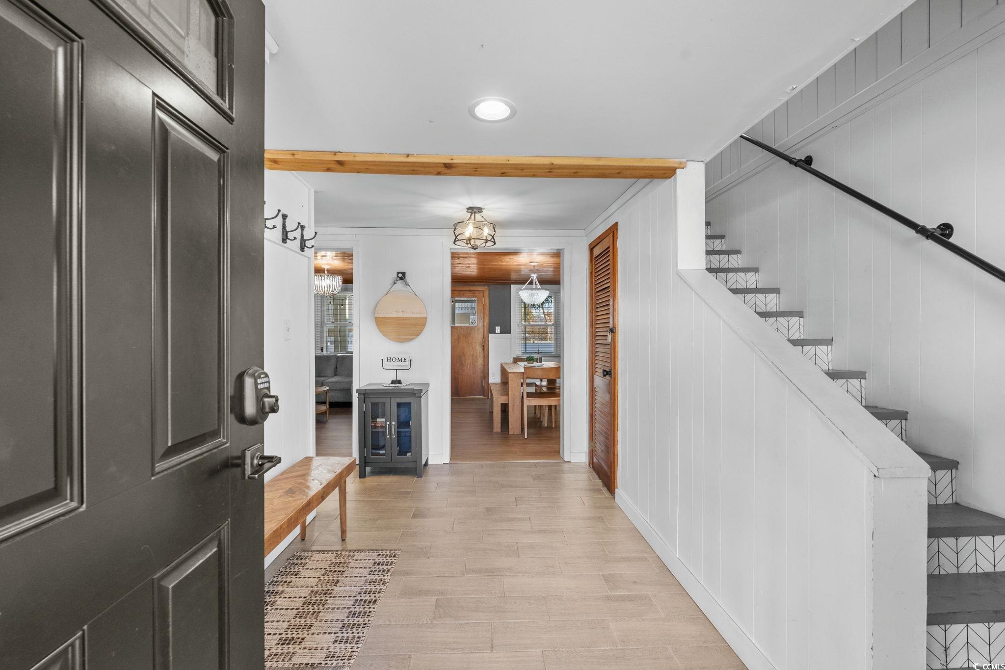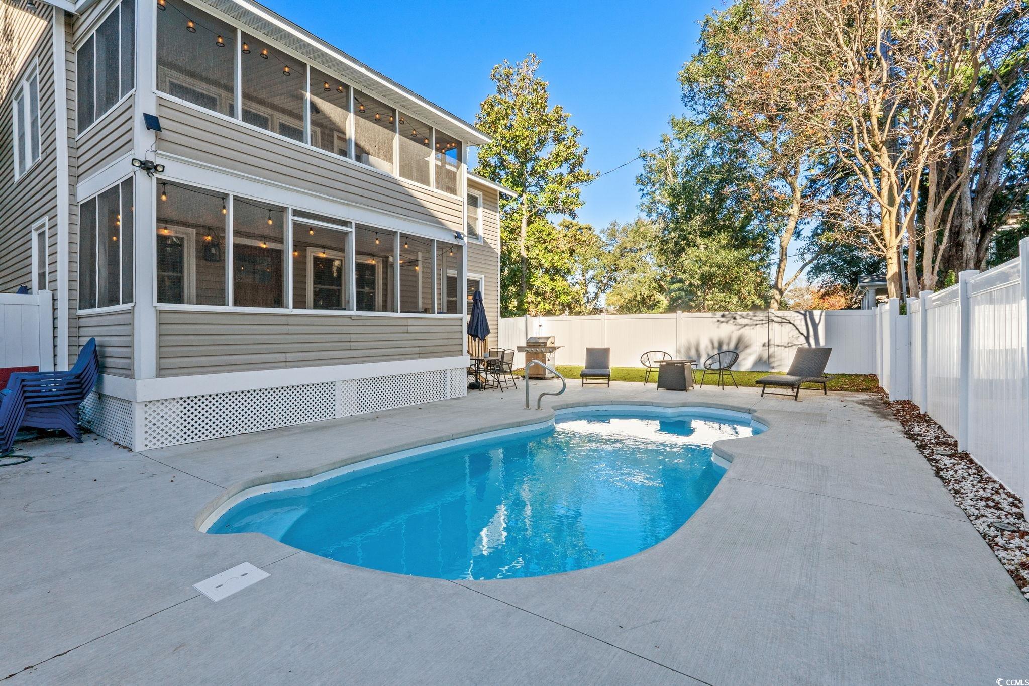 Dont miss this gorgeous DETACHED SINGLE FAMILY beach home located in the heart of North Myrtle Beach just steps away from the Atlantic Ocean! The original lot was split into two lots a long time ago (A and B). This private 4BR, 3BA home HEATED SALTWATER POOL is the perfect primary residence, investment property, or second home! Short term rentals are allowed! Situated in the Crescent Beach area of NMB, this home offers many updates throughout including a new heated saltwater pool in 2025, one new HVAC unit in 2025 (the home has 2 units), quartz counter tops, stainless steel appliances, tiled showers, tiled backsplash, a mix of tile, LVP, and laminate flooring - no carpet, and so much more! The first floor offers a beautifully renovated kitchen, spacious living/dining room, one bedroom, one full bathroom, laundry room, storage closets, and a screened in porch overlooking the backyard oasis! As you make your way upstairs, you will enter a large second living room, a large bedroom with an en suite bathroom, and two additional bedrooms with shared bathroom. Off of the living room is an additional screened in balcony overlooking the backyard. The backyard has privacy fencing, new turf in 2025, pool, and plenty of room for outdoor furniture, games, grill, and much more. North Myrtle Beach is a premier vacation destination and has so much to offer including beautiful beaches, local restaurants, a wide variety of shopping options, stunning golf courses, the intracoastal waterway, the House of Blues, the Alabama Theater, and the list goes on and on. Schedule your showing today!
