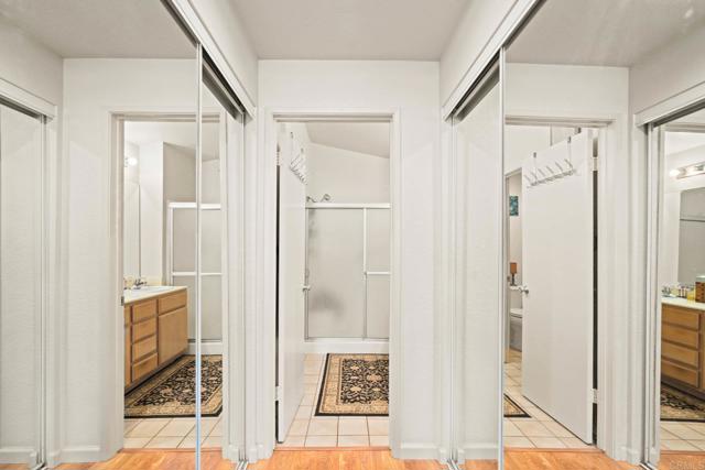 The wait is over—Finally vacant and ready to shine! Fresh paint, tucked away in a private end-unit location with peaceful park-like views, and that easy Oceanside coastal vibe. This is Southern California living at its best. Upstairs condo with vaulted ceilings and a light, airy feel throughout. The open layout makes it easy to cook, dine, and relax, with durable flooring and no carpet. The primary suite offers comfort and privacy with its own patio and tranquil view, while the second bedroom provides flexibility for guests, a home office, or creative space. This beautiful community embraces the coastal lifestyle, just minutes from the beach. Enjoy resort-style amenities including a pool, spa, clubhouse, fitness center, tennis court, and putting green. AT&T Fiber Internet keeps you connected for streaming, gaming, or working from home, while the HOA covers water, sewer, and trash for added convenience. A detached garage plus a designated parking space adds everyday ease and security. Close to beaches, dining, shopping, and freeway access, this home blends comfort, convenience, and coastal charm—an inviting place to settle in and enjoy the best of Oceanside living.