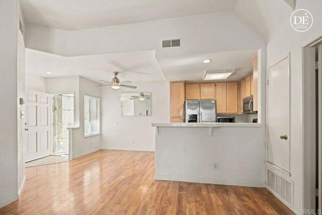 The wait is over—Finally vacant and ready to shine! Fresh paint, tucked away in a private end-unit location with peaceful park-like views, and that easy Oceanside coastal vibe. This is Southern California living at its best. Upstairs condo with vaulted ceilings and a light, airy feel throughout. The open layout makes it easy to cook, dine, and relax, with durable flooring and no carpet.