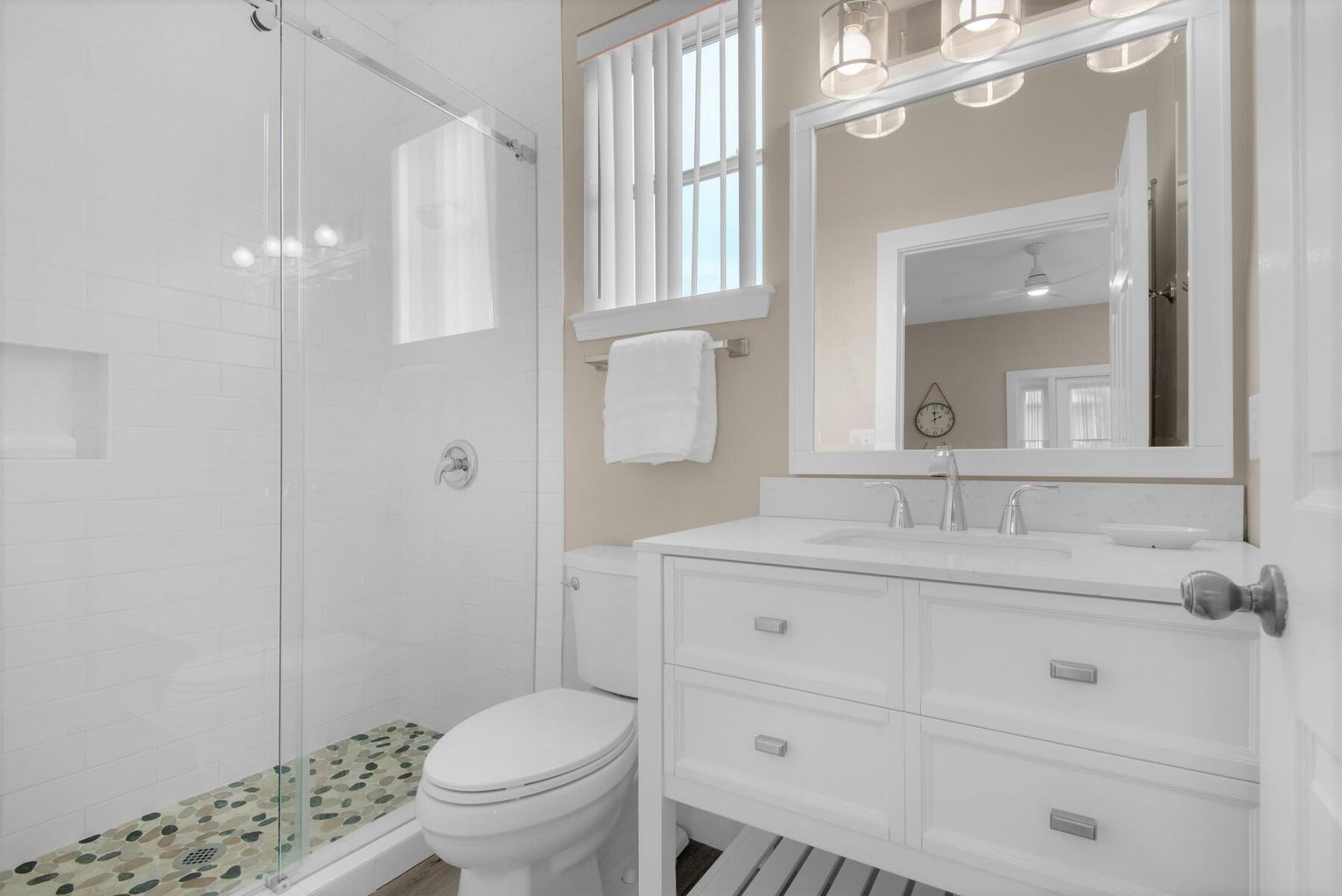 If youve been looking for a place near the beach that actually feels like home?not just a house---114 N Oak Dr in Surfside Beach is one youll want to see. Its just a short golf cart ride or walk to the ocean, so grabbing your morning coffee and heading to the shore can easily become part of your routine. And with no HOA, theres a sense of freedom here thats getting harder to find. Inside, the home feels bright and easygoing from the moment you walk in. The main living area is open and filled with natural light, making it a comfortable space to relax or have friends over. The kitchen is set up in a way that just works---stainless steel appliances, plenty of cabinets and counter space, and a breakfast bar that tends to become the go-to gathering spot. One of the standout features is that every bedroom has its own full bathroom with tiled showers, which makes a big difference whether you have guests or just want everyone to have their own space. The primary suite, in particular, feels like a true retreat with high ceilings, a large walk-in closet, and a bathroom with double sinks, a walk-in tiled shower, and a whirlpool tub. Newer tankless water heater for renter convenience, and the Paid-Off solar panels and foam insulation in the attic for efficiency and lower electric bills. Outside is where this home really shines. The front balcony is perfect for catching the coastal breeze, while the fenced backyard and covered area underneath the home give you plenty of space to hang out, entertain, or just unwind after a day at the beach. The location also makes everyday life easy---youre just minutes from the Surfside Pier, Murrells Inlet MarshWalk, Brookgreen Gardens, plus tons of great restaurants, golf courses, and shops. All in all, its the kind of home that makes beach living feel simple, comfortable, and completely within reach.