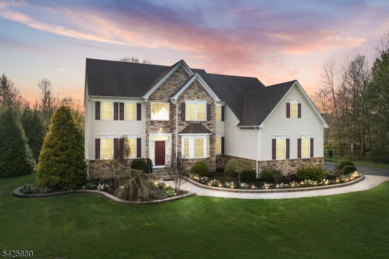 Built in 2012 and just moments from town, this exceptional Northeast facing estate is set on 2 fenced acres at the end of a cul-de-sac, among other fine homes. A grand 2-story foyer with wrought iron balusters & oak treads welcomes you into an open layout with hardwood floors & elegant formal living & dining rooms. The soaring family room features a vaulted ceiling, rear staircase & wood-burning fireplace. The adjacent eat-in kitchen is a standout with a center island, double wall oven, gas cooktop with hood & breakfast area overlooking a resort-style backyard. A private study with french doors, mudroom & updated powder room complete the main level. Upstairs, enjoy 4 spacious bedrooms & 3 full baths, including a princess suite, Jack & Jill bath & a luxurious primary suite with double-door entry, sitting room, sauna, 2 oversized walk-in closets, tray ceiling & spa-like bath with jetted tub & dual vanity. Tile flooring throughout the bedrooms offers a clean, modern aesthetic. Step outside to your private retreat featuring a heated in-ground pool (2025 heater & pump), spa, expansive paver patio with pergola & firepit, vegetable garden & gorgeous sunset views. Additional highlights include public sewer, OWNED solar panels, whole-house generator, 2-zone heat/AC, full basement, 3 car garage, lawn irrigation, shed & driveway pickleball court. All appliances remain. Ideally located near Neshanic Valley Golf Course, kayaking, hiking, Bridgewater, Princeton, NYC train & major highways.