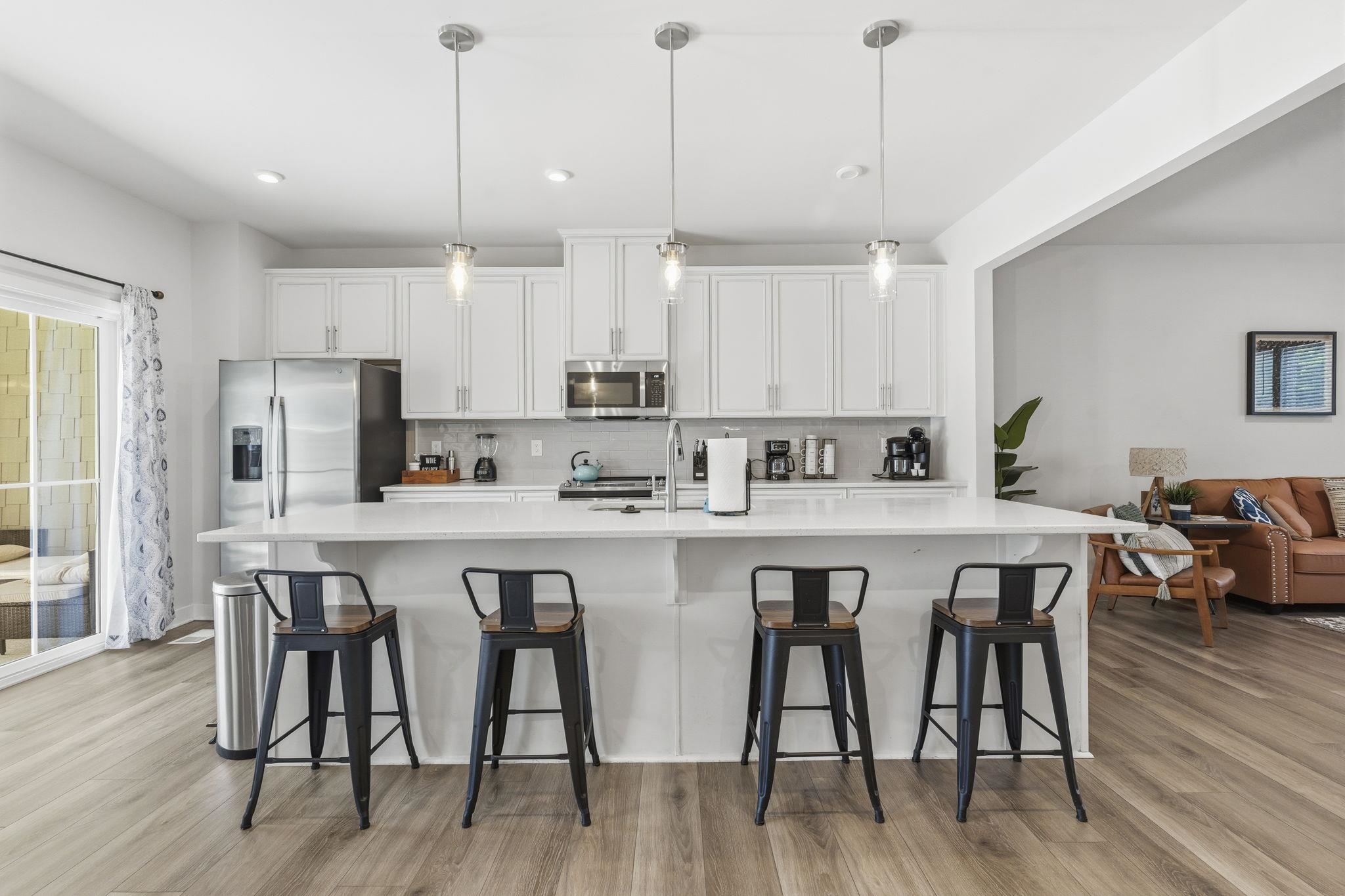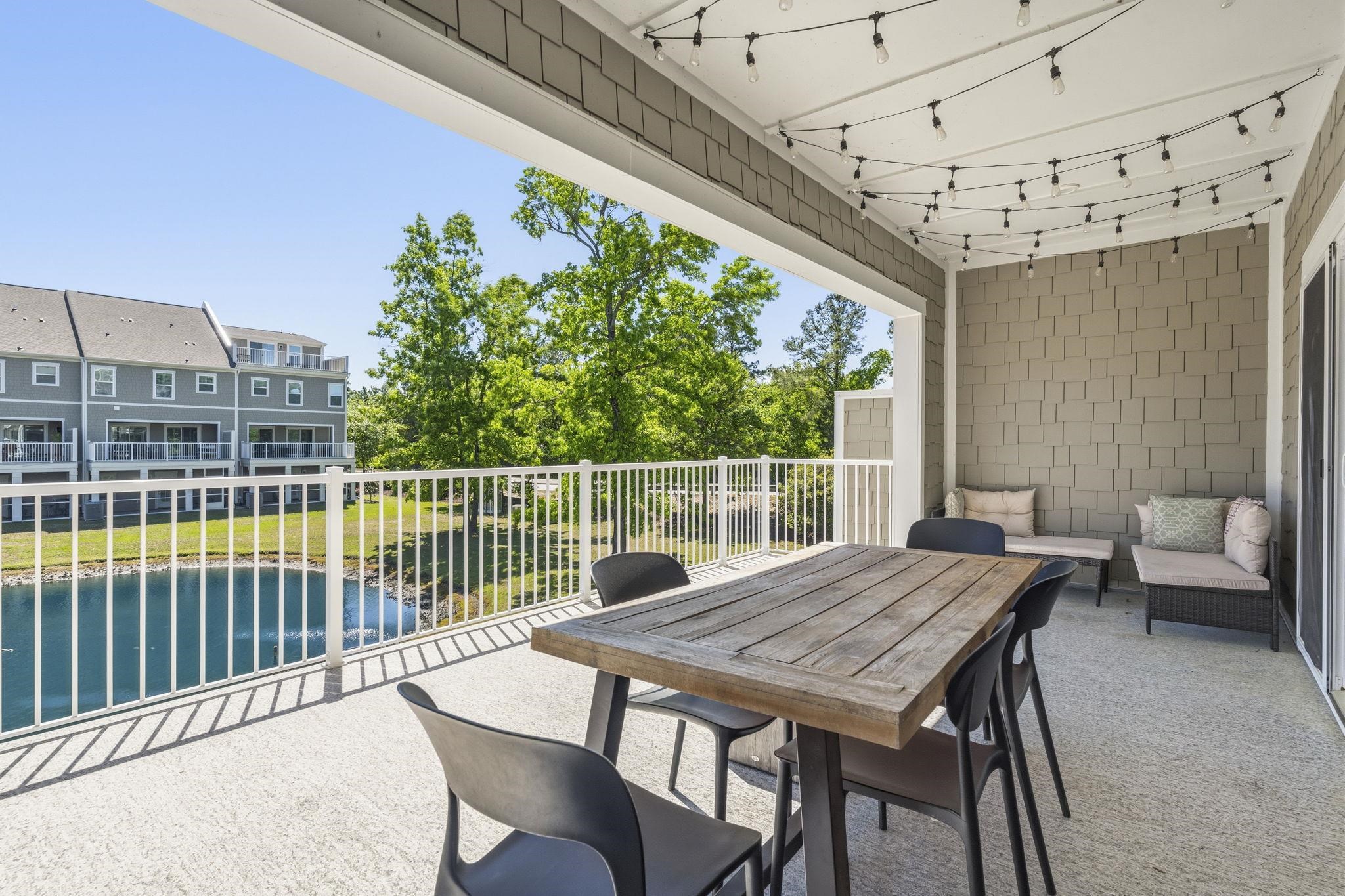 Welcome to 2557 Pete Dye Dr, Unit 402--a fully furnished, designer-curated 4-bedroom, 3.5-bath luxury townhome offering exceptional indoor/outdoor living in the prestigious Dye Townhomes community at Barefoot Resort. Overlooking a tranquil pond, this light-filled home features an open-concept main level with a spacious kitchen boasting a large island, pendant lighting, and stainless steel appliances, all flowing seamlessly to a generous second-floor balcony perfect for al fresco dining. The lower level enhances the indoor/outdoor experience with a screened patio and a versatile bonus room--currently outfitted with two sets of bunk beds--ideal as a fourth bedroom, office, or second living area. There is also a full bathroom and a convenient mud room off the attached 2-car garage on this level. The top floor hosts the primary suite, with a ceiling fan, walk-in closet, double vanity, and walk-in shower. Two additional bedrooms (each with ceiling fans), a full bathroom, and a centrally located laundry room complete this floor. Nestled beside the Pete Dye Golf Course, residents enjoy access to Barefoot Resorts premier amenities, including four championship golf courses, an oceanfront beach cabana with seasonal shuttle service, a marina, pools, walking trails, and a clubhouse. Just minutes from Barefoot Landing shopping, dining, and entertainment, this property is perfectly suited as a primary residence, a golf and beach retreat, or a standout investment opportunity. Schedule your showing today!