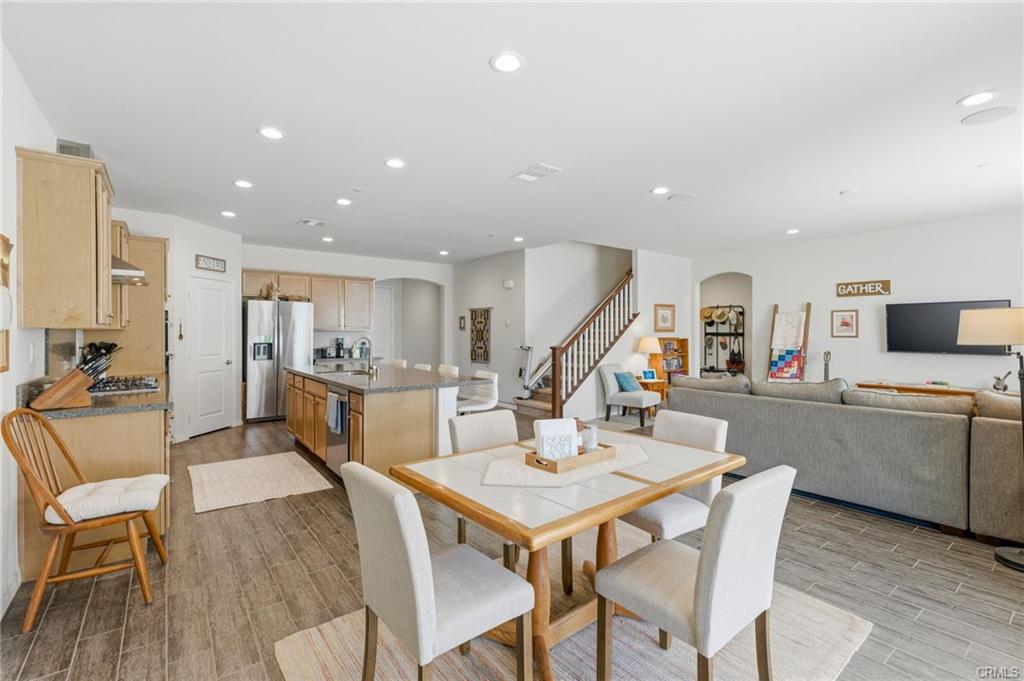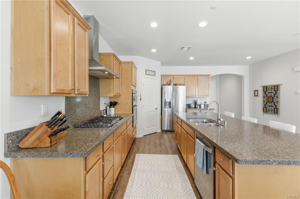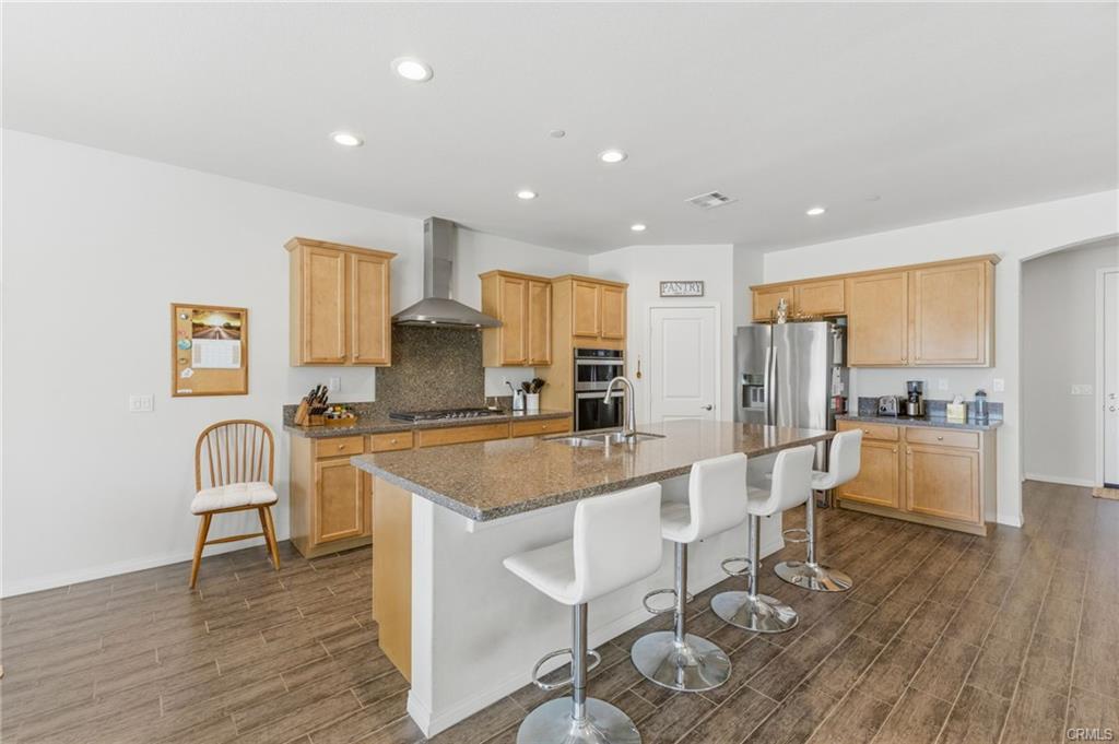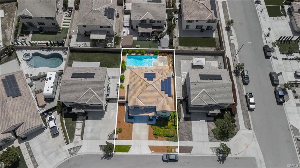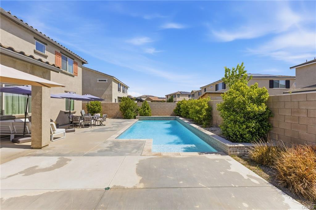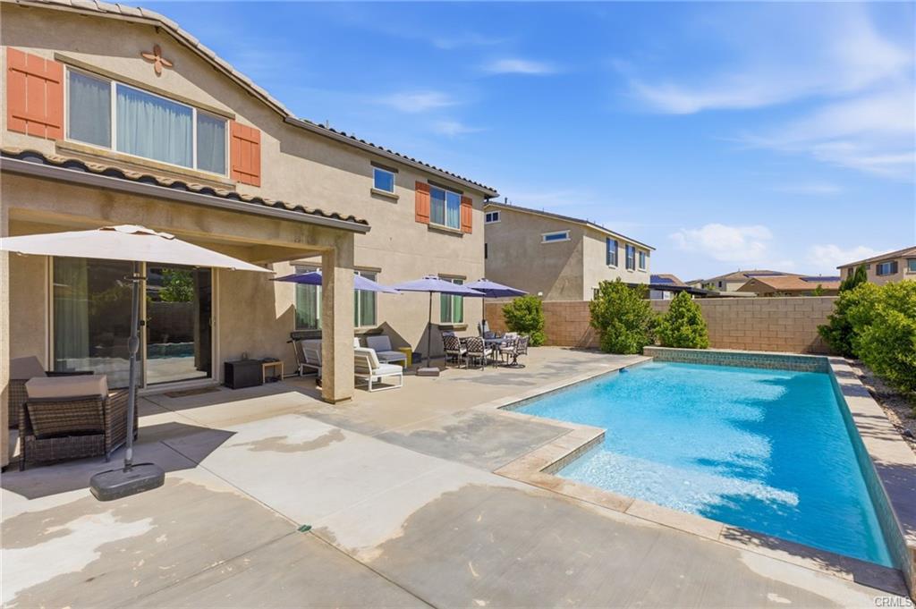 Turn-key North Fontana pool home offering 4 bedrooms, 3 bathrooms, and a highly desirable open-concept floor plan, ideally situated on a cul-de-sac with no HOA. This spacious two-story residence features a downstairs bedroom and full bathroom, ideal for guests, multigenerational living, or a private home office. An additional downstairs office/study provides even more flexibility for today’s lifestyle needs.The inviting great room showcases a large kitchen island, dining area, and beautifully appointed kitchen with quartz countertops and upgraded stainless steel appliances—all seamlessly opening to a generous family room, creating the perfect space for both everyday living and entertaining.Upstairs, you’ll find a versatile bonus room ideal for a game room or media space, along with an additional loft area that offers a potential 5th bedroom option. The spacious primary suite features a large walk-in closet, dual sinks, and a walk-in shower. Two additional secondary bedrooms, an upstairs hall bathroom with dual sinks, and a convenient upstairs laundry room with sink complete the upper level. Additional highlights include recessed lighting, dual-zone A/C for optimal comfort and drought tolerant landscape. Step outside to your private backyard retreat featuring a gorgeous pool and a covered patio—perfect for relaxing or entertaining year-round. Additional features include solar and an unbeatable location in desirable North Fontana, with convenient access to the 10, 15, and 210 freeways, and just minutes from shopping, dining, and entertainment at Victoria Gardens.