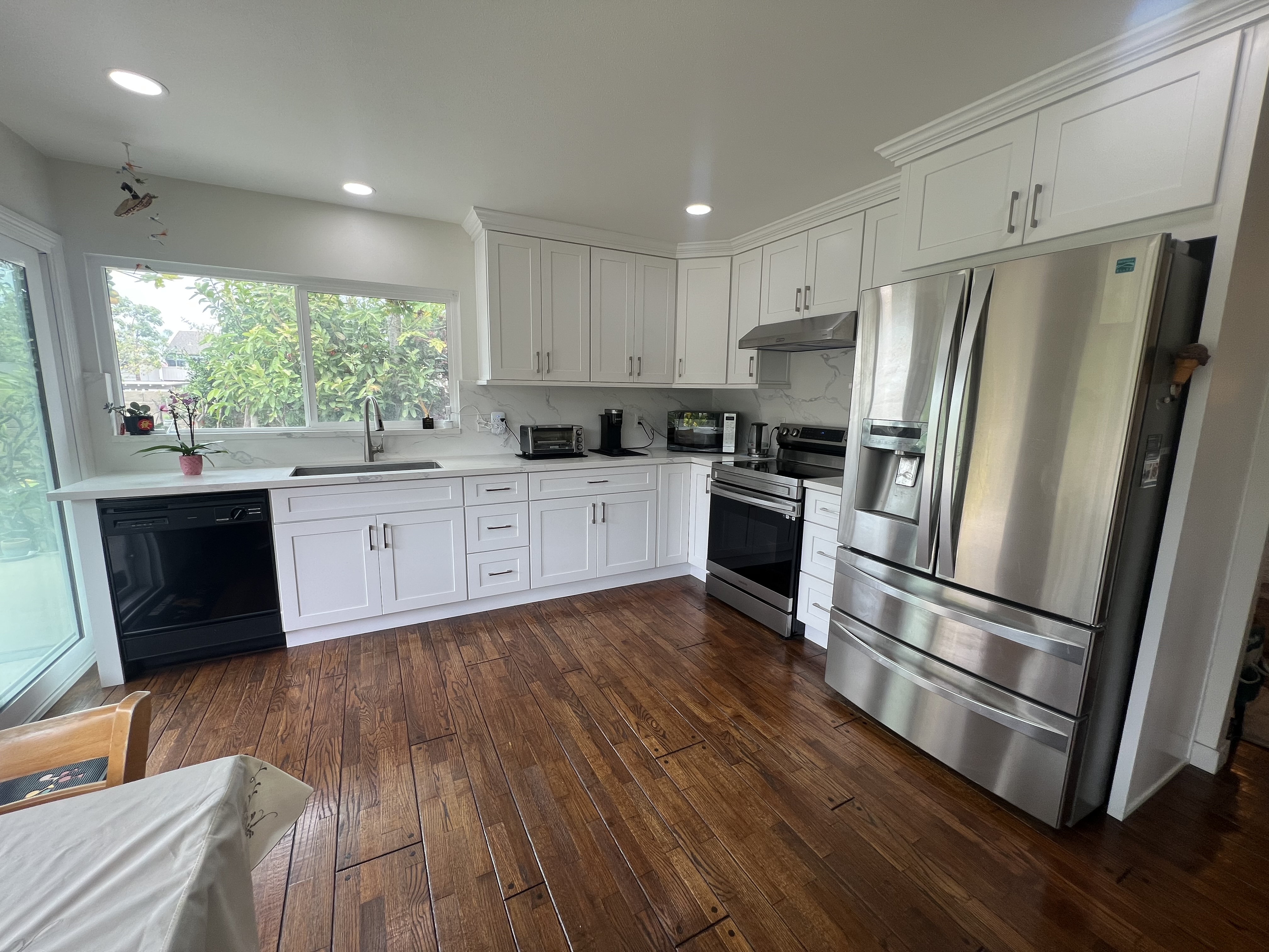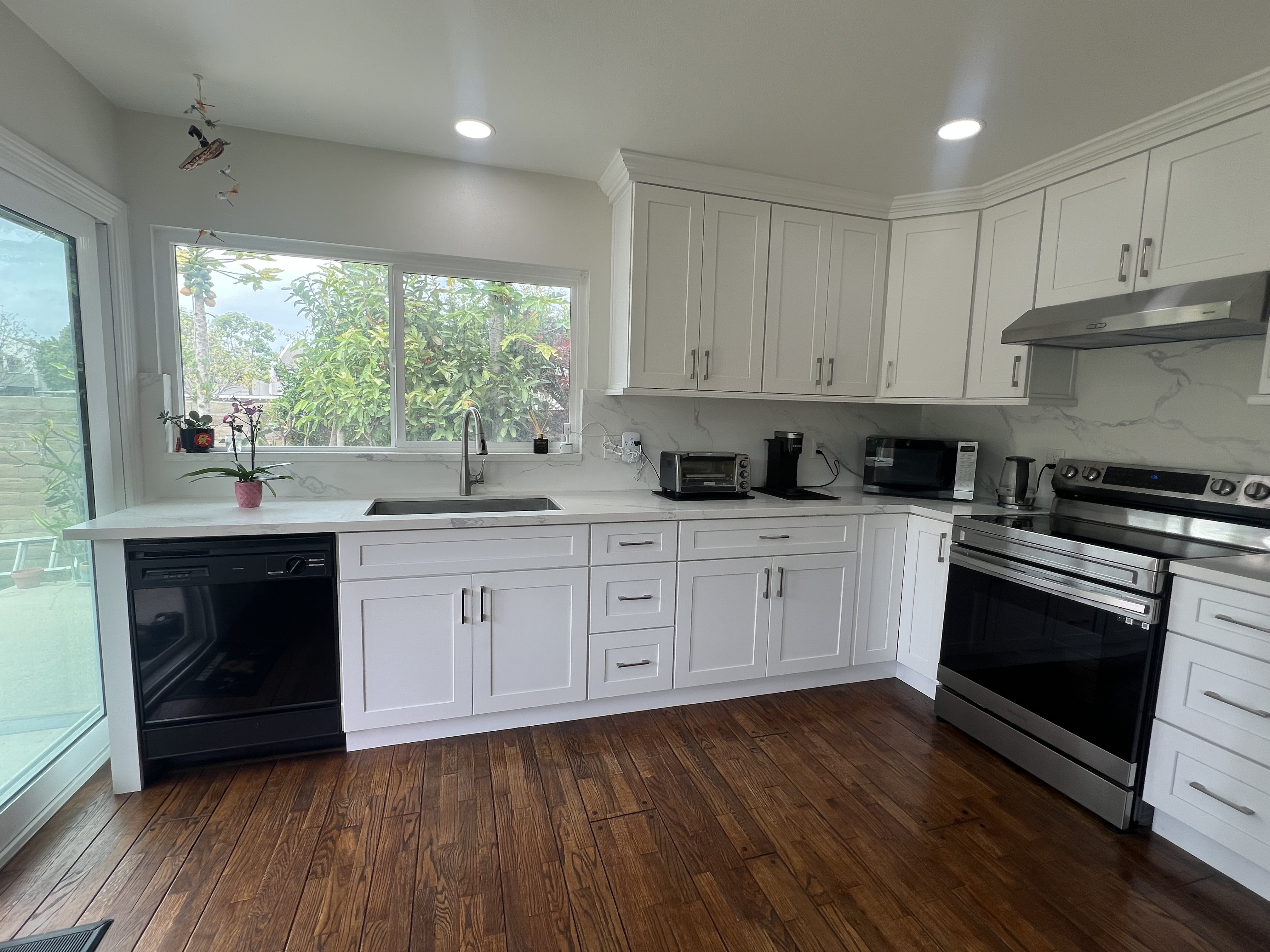 Curb Appeal! The larger and upgraded Model 4 bedrooms with 3 bathrooms Home that faces EAST located in the Sunshine Park Tract which places it above the more common single story homes nearby. Natural Bright Light pours in through the newer Double Pane windows throughout the house. Its premium model layout includes on the main level a bright and spacious Formal Living Room with very desirable high vaulted ceilings with large front and side facing double pane windows, a Family Room has a fireplace with mantle and a pleasant view of the backyard full of fruit trees. It connects to a beautifully remodeled modern kitchen with stainless steel electric appliances: Double Door Kenmore Refrigerator with double drawers, Electric Cook top/range with built-in exhaust fan, dishwasher, portable toaster, microwave, deep sink with faucet extender. Beautiful Quartz counter top has matching back splash for easy cleaning. Modern self closing drawers with lots of additional cabinets for extra storage. The sturdy quality of the flooring made with Oak leads to the Double pane sliding door to the backyard. The kitchen area has a breakfast nook with a clear view of your backyard treasures: Fruit trees and plants composed of Pomegranate, Loquat, Kumquat, Persimmon, Dragon Fruit, Lemon, Japanese Palm tree, Hawaiian Papaya, Avocado, Passion Fruit, Guava and the beautiful Queen of the Night Flower. Main floor bedroom downstairs with the double pane window giving a beautiful backyard view. Next to it is a main floor bathroom with a full tub which is highly desirable for guests for multi-generational living. There is an open flow between the Living Room, Dining Room and the family spaces to the exterior. The primary suite that is located upstairs has a double door entryway with a double sliding door exit to the balcony with railings. Hallway inside the primary suites leads to a his and hers sink area with a his and hers closet dressing area and a private powder room with commode and shower. The upper level also has two decent size rooms and an extra hallway bathroom with full tub. The larger than average 6,626 sq.ft. Lot makes it have a decent backyard space great for landscaping. The Sunshine Tract is known for wide streets, suburban feel and strong school zoning in the ABC School District. This was the original Showcase home in the tract.