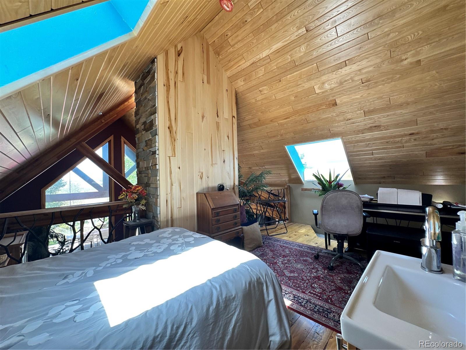 This captivating off-grid sanctuary, maintained as a high desert oasis near Villa Grove for 20 years, is remote yet just 5 minutes from the highway, offering absolute serenity and uncomparable vistas. Once the hub of Sangre de Cristo hang gliding fly-in’s, it blends rustic simplicity with undeniable elegance. A circular drive leads to a secure gate and a sunny, flowing courtyard, full of flowers and birdsong.1 Inside, natural materials (granite, tile, stone, and wood) create a sophisticated, spiritual space. The seamless living and gourmet kitchen areas feature a handstacked stone fireplace and entertaining island, flexible for intimate meals or gatherings of twenty. Natural light streams in through high windows and skylights. The private main-floor master wing boasts timeless birch/hickory cabinetry and Eastern red cedar ceilings.1 Outside, two premium decks offer vast, soaring views of Mount Ouray and the Sawatch Range. Thoughtfully planted tree groves ensure privacy. The property includes a 300 sq. ft. ADU above a 2-car garage/office and a historical lawn stage, rivaling Red Rocks views. An off-grid masterpiece built for generational sustainability, utilizing passive solar and a 16x32 greenhouse for year-round farm-to-table possibilities. A true heirloom home, melding timeless beauty, energy efficiency, and food security for visionary buyers. Built by an award winning builder for himself..Not to be missed.