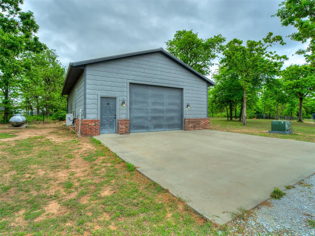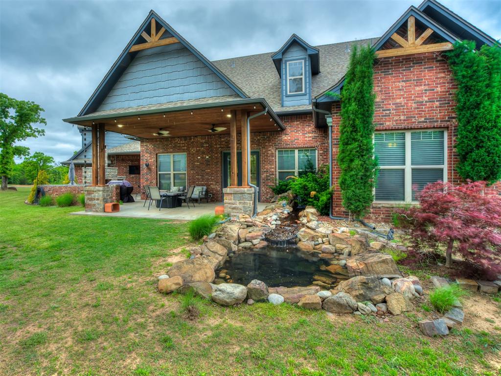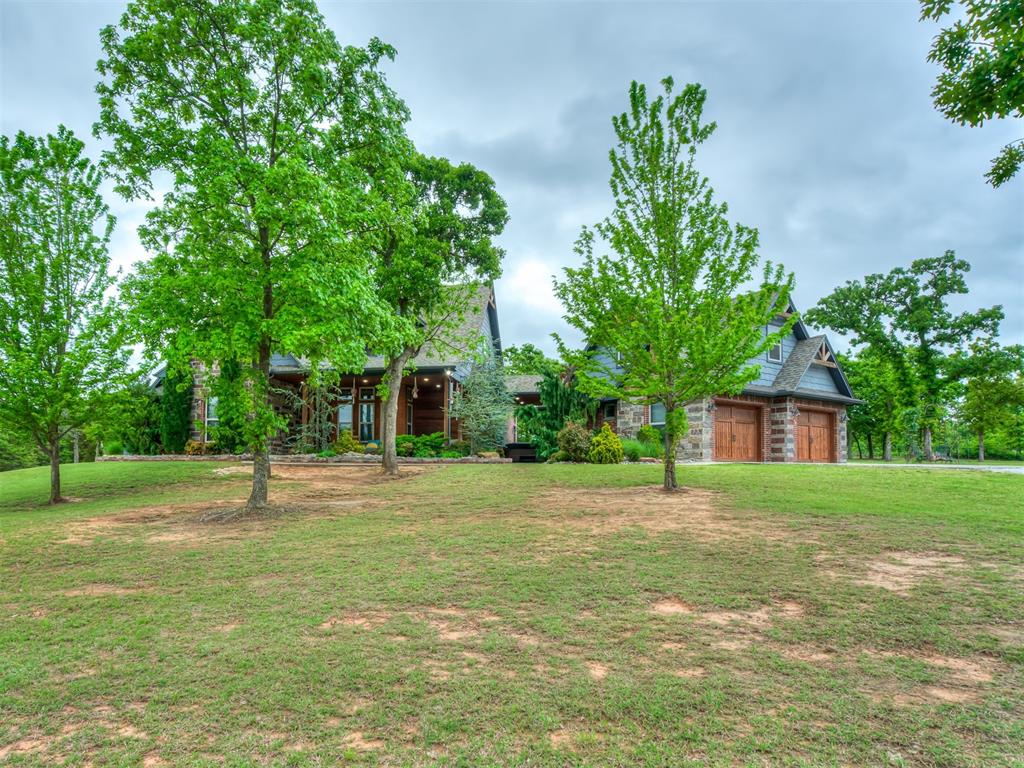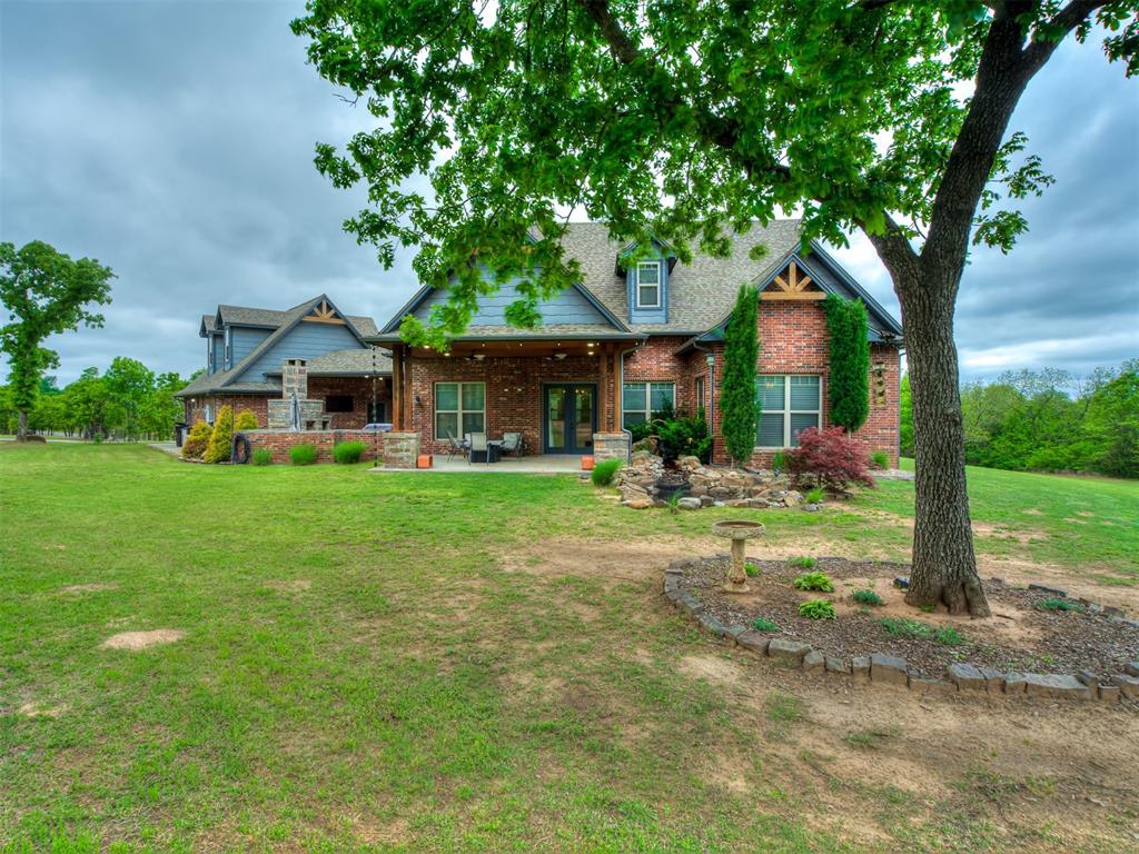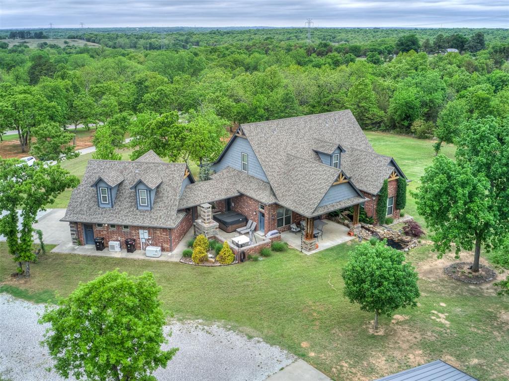 Nestled on approximately 4 private, wooded acres, this extraordinary custom-built estate offers a rare blend of luxury, privacy, & timeless design. Encompassing over 3,600sqft of refined interior living space plus 1,400sqft of outdoor living areas, this one-of-a-kind residence was designed for elevated living & effortless entertaining. Soaring 12-ft coffered ceilings, spray foam insulation, wood-look tile flooring, designer finishes, & custom window treatments create an atmosphere of elegance throughout. The picture perfect kitchen features a large island, rich leather granite countertops, soft-close cabinetry, Frigidaire Professional appliances, & a walk-in pantry. The lavish primary suite is a private retreat with custom built-ins & a spa-inspired bath offering thermal heated floors, dual-head walk-in shower, & claw-foot soaking tub. 4 additional bedrooms & 3 beautifully appointed bathrooms provide exceptional comfort for family & guests. A private living space above the oversized 2-car garage offers endless flexibility for guests, executive office, studio, or multigenerational living. Outdoors, enjoy professionally curated landscaping, full sprinkler system, serene koi pond, whole-home generator, & an above-ground storm shelter that holds 15. Completing the estate is an impressive 30x40x12 climate-controlled workshop with electric, water, fully insulated with plywood lined walls, & a private bath—ideal for collectors, entrepreneurs, or premium storage. Roof & gutters replaced in 2023. HVAC units replaced in 2024. A truly rare opportunity to own an exceptional estate where luxury, function, & natural beauty meet.