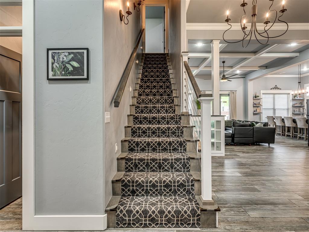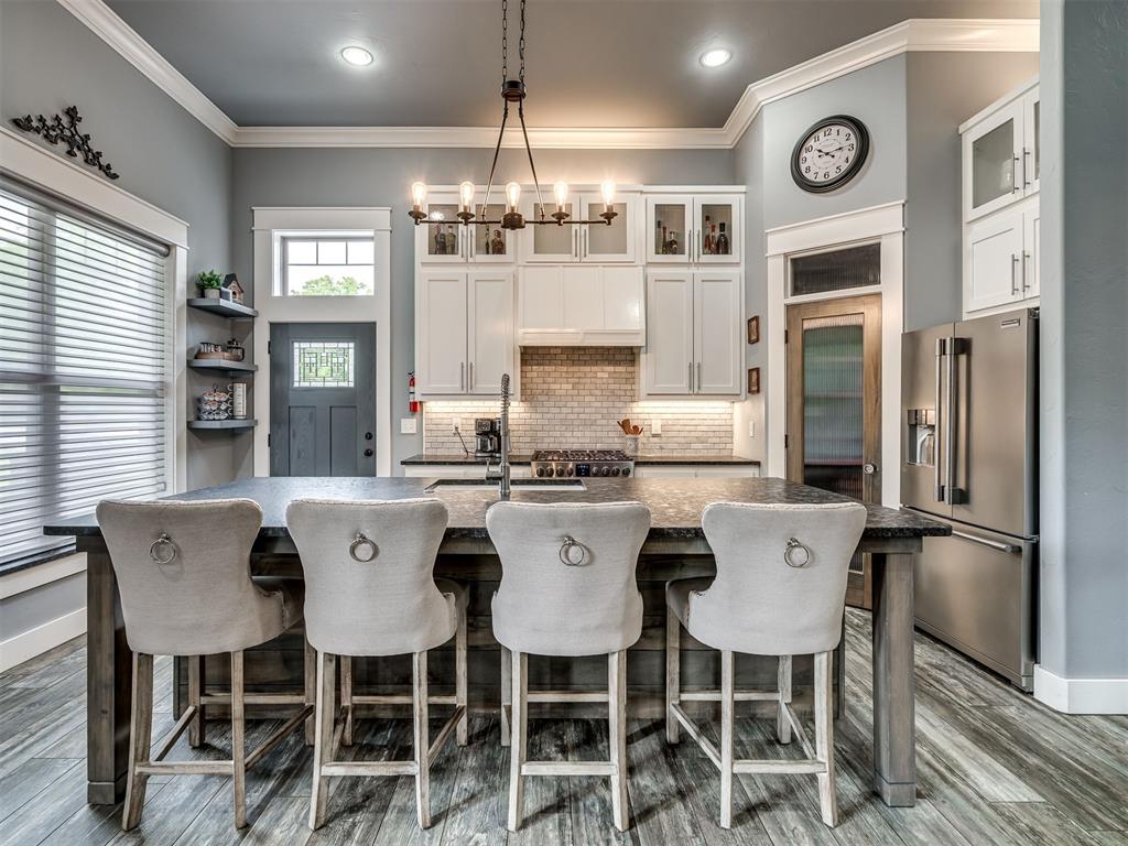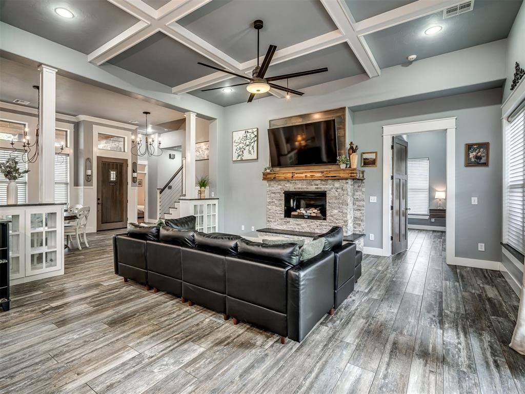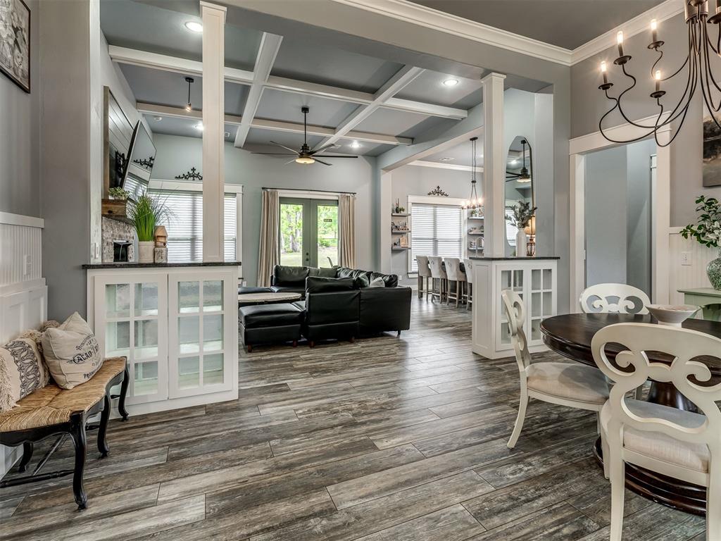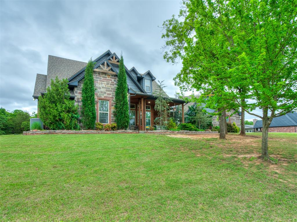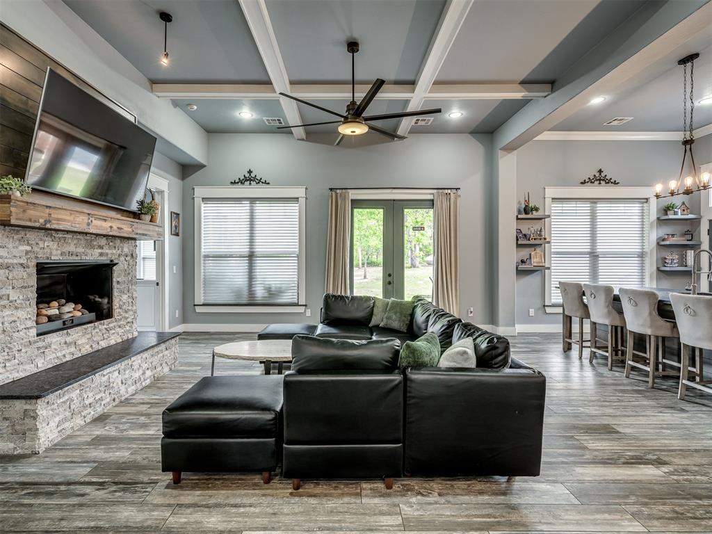 Nestled on approximately 4 private, wooded acres, this extraordinary custom-built estate offers a rare blend of luxury, privacy, & timeless design. Encompassing over 3,600sqft of refined interior living space plus 1,400sqft of outdoor living areas, this one-of-a-kind residence was designed for elevated living & effortless entertaining. Soaring 12-ft coffered ceilings, spray foam insulation, wood-look tile flooring, designer finishes, & custom window treatments create an atmosphere of elegance throughout. The picture perfect kitchen features a large island, rich leather granite countertops, soft-close cabinetry, Frigidaire Professional appliances, & a walk-in pantry. The lavish primary suite is a private retreat with custom built-ins & a spa-inspired bath offering thermal heated floors, dual-head walk-in shower, & claw-foot soaking tub. 4 additional bedrooms & 3 beautifully appointed bathrooms provide exceptional comfort for family & guests. A private living space above the oversized 2-car garage offers endless flexibility for guests, executive office, studio, or multigenerational living. Outdoors, enjoy professionally curated landscaping, full sprinkler system, serene koi pond, whole-home generator, & an above-ground storm shelter that holds 15. Completing the estate is an impressive 30x40x12 climate-controlled workshop with electric, water, fully insulated with plywood lined walls, & a private bath—ideal for collectors, entrepreneurs, or premium storage. Roof & gutters replaced in 2023. HVAC units replaced in 2024. A truly rare opportunity to own an exceptional estate where luxury, function, & natural beauty meet.