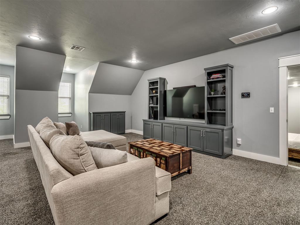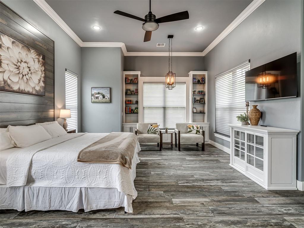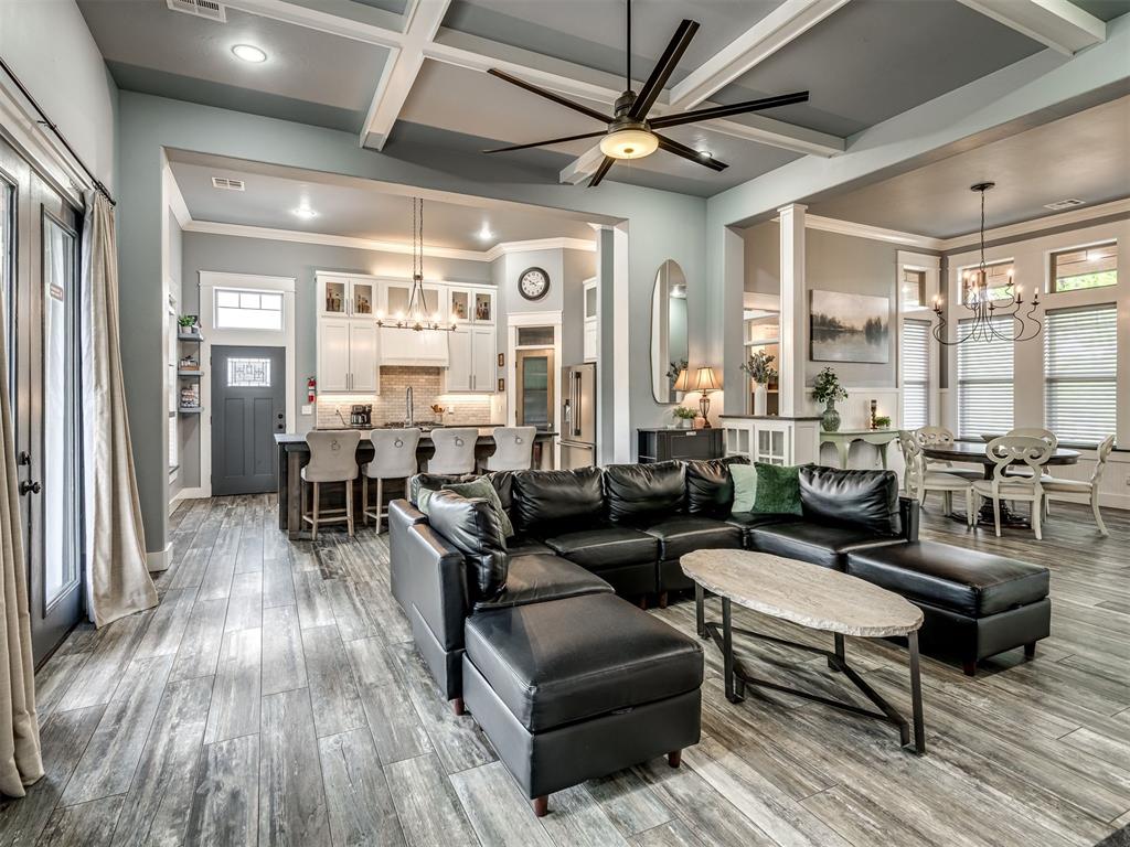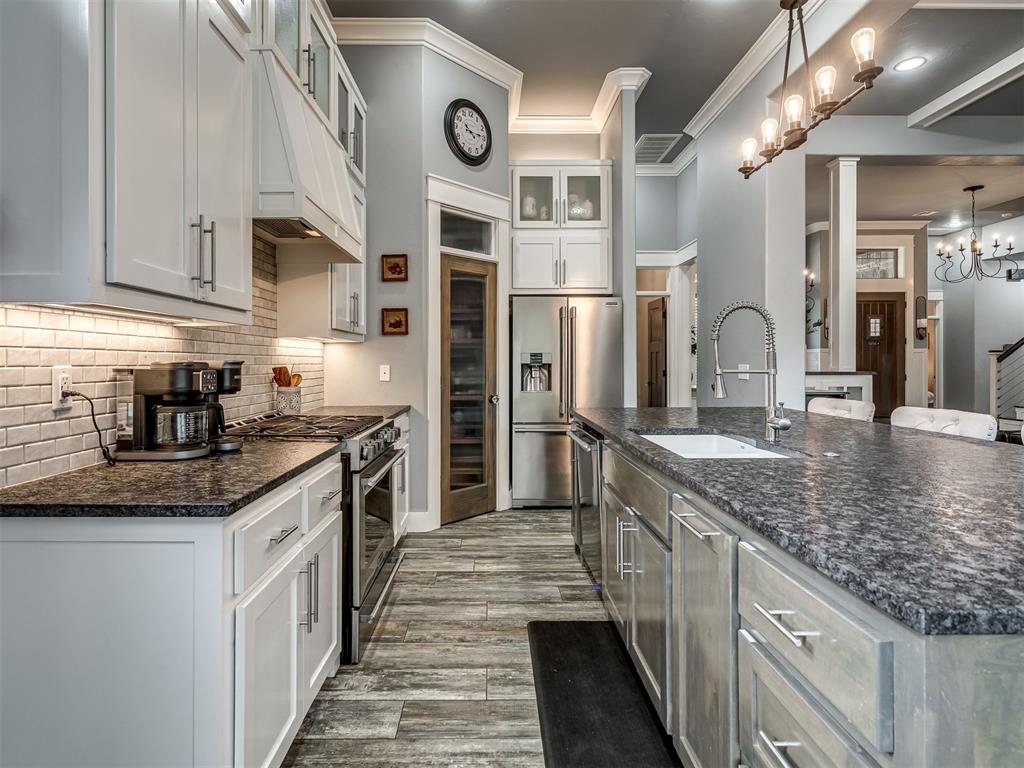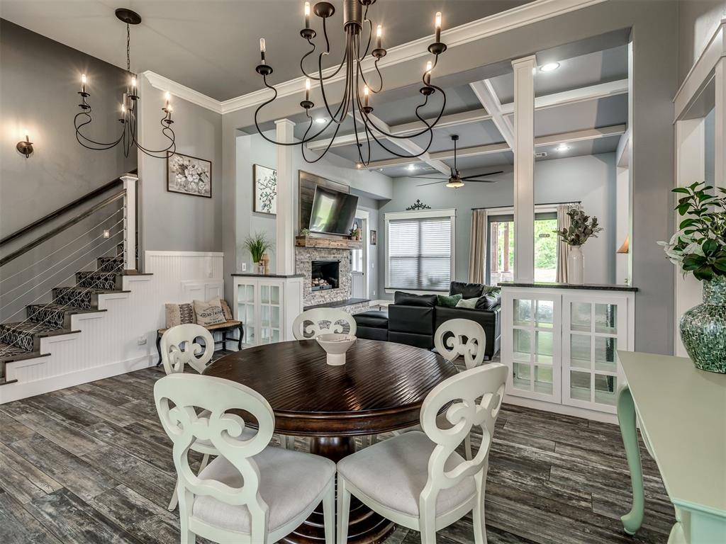Nestled on approximately 4 private, wooded acres, this extraordinary custom-built estate offers a rare blend of luxury, privacy, & timeless design. Encompassing over 3,600sqft of refined interior living space plus 1,400sqft of outdoor living areas, this one-of-a-kind residence was designed for elevated living & effortless entertaining. Soaring 12-ft coffered ceilings, spray foam insulation, wood-look tile flooring, designer finishes, & custom window treatments create an atmosphere of elegance throughout. The picture perfect kitchen features a large island, rich leather granite countertops, soft-close cabinetry, Frigidaire Professional appliances, & a walk-in pantry. The lavish primary suite is a private retreat with custom built-ins & a spa-inspired bath offering thermal heated floors, dual-head walk-in shower, & claw-foot soaking tub. 4 additional bedrooms & 3 beautifully appointed bathrooms provide exceptional comfort for family & guests. A private living space above the oversized 2-car garage offers endless flexibility for guests, executive office, studio, or multigenerational living. Outdoors, enjoy professionally curated landscaping, full sprinkler system, serene koi pond, whole-home generator, & an above-ground storm shelter that holds 15. Completing the estate is an impressive 30x40x12 climate-controlled workshop with electric, water, fully insulated with plywood lined walls, & a private bath—ideal for collectors, entrepreneurs, or premium storage. Roof & gutters replaced in 2023. HVAC units replaced in 2024. A truly rare opportunity to own an exceptional estate where luxury, function, & natural beauty meet.