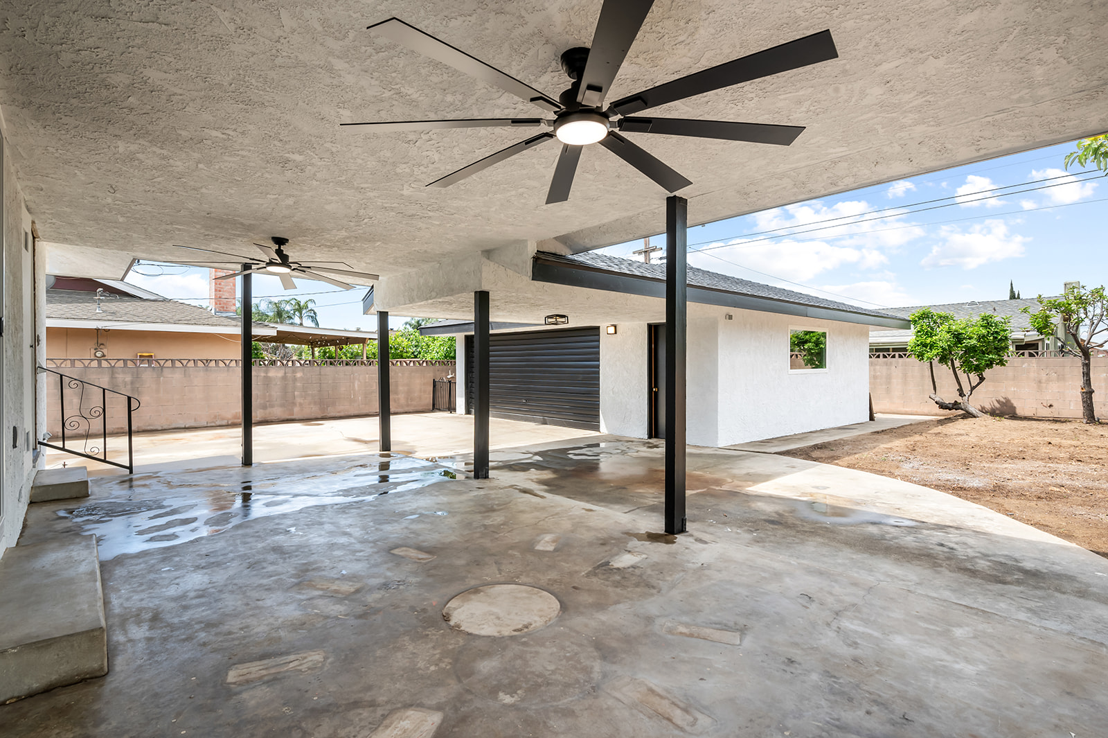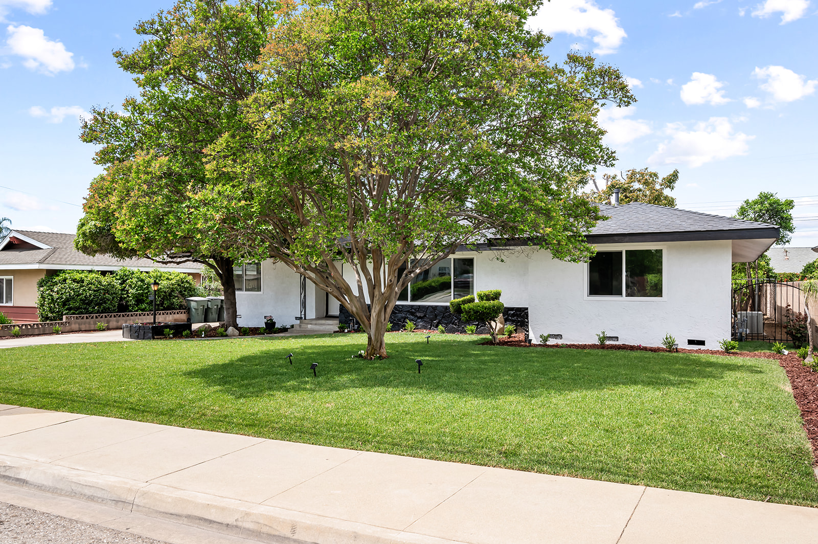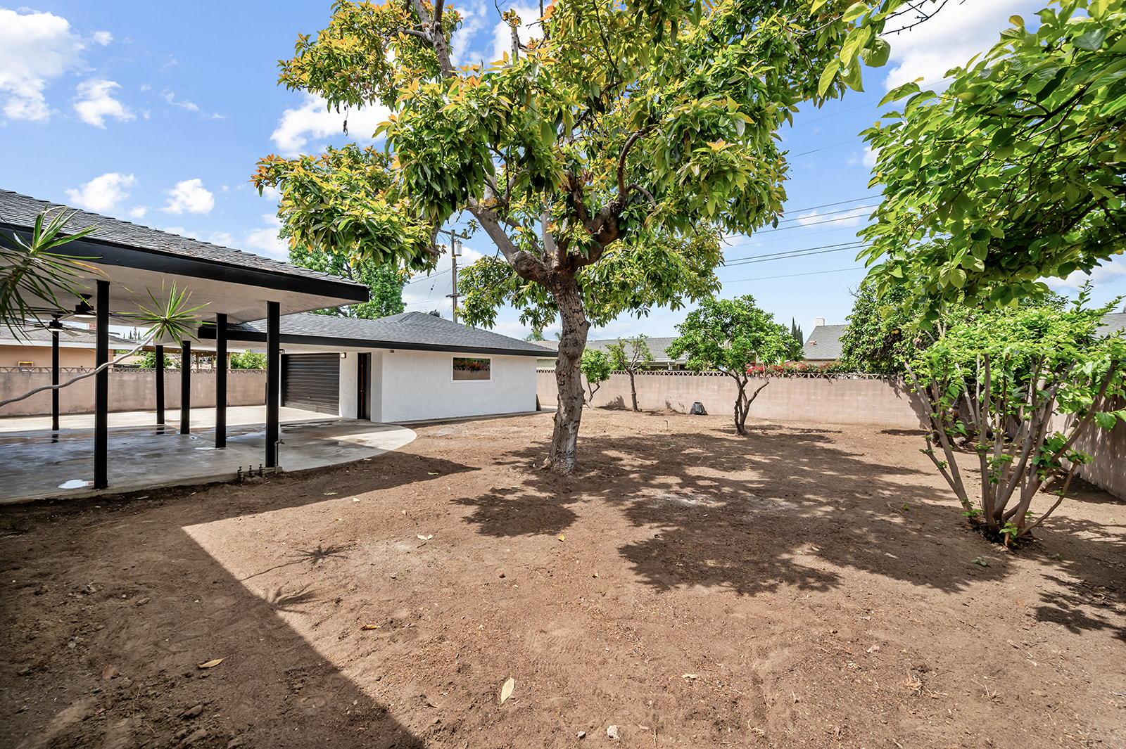Rare find large flat lot, single story turn-key luxury living in the heart of Chino! This beautifully upgraded 3-bedroom, 3-bath home, features a stunning open-concept layout designed for modern living and effortless entertaining. The custom contemporary kitchen is the centerpiece of the home, showcasing high-end finishes, sleek cabinetry, and an oversized island perfect for gatherings. Thoughtfully updated throughout, the property includes new windows, sliding glass door, and interior/exterior doors—all with stylish, modern finishes. The spacious layout offers a dedicated dining room, living room, family room, and a separate laundry room for added convenience. Step outside to a finished patio that seamlessly connects the main home to a detached oversized garage—ideal for a future ADU conversion or additional workspace. Situated on a generous lot just under 10,000 sq ft, the property offers endless possibilities. Enjoy a large, beautifully landscaped front yard with fresh sod, as well as a spacious backyard filled with mature fruit trees including apple, grapefruit, orange, tangerine, and avocado. There is still ample room to build an additional dwelling (buyer to verify with city) or create your dream pool and spa retreat. The long, expansive driveway provides parking for up to 6 vehicles with ease. A rare opportunity to own a fully upgraded, move-in ready home with space, style, and future potential!