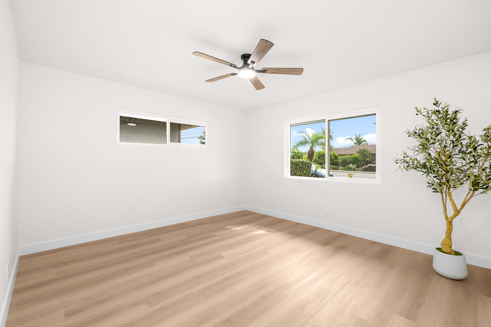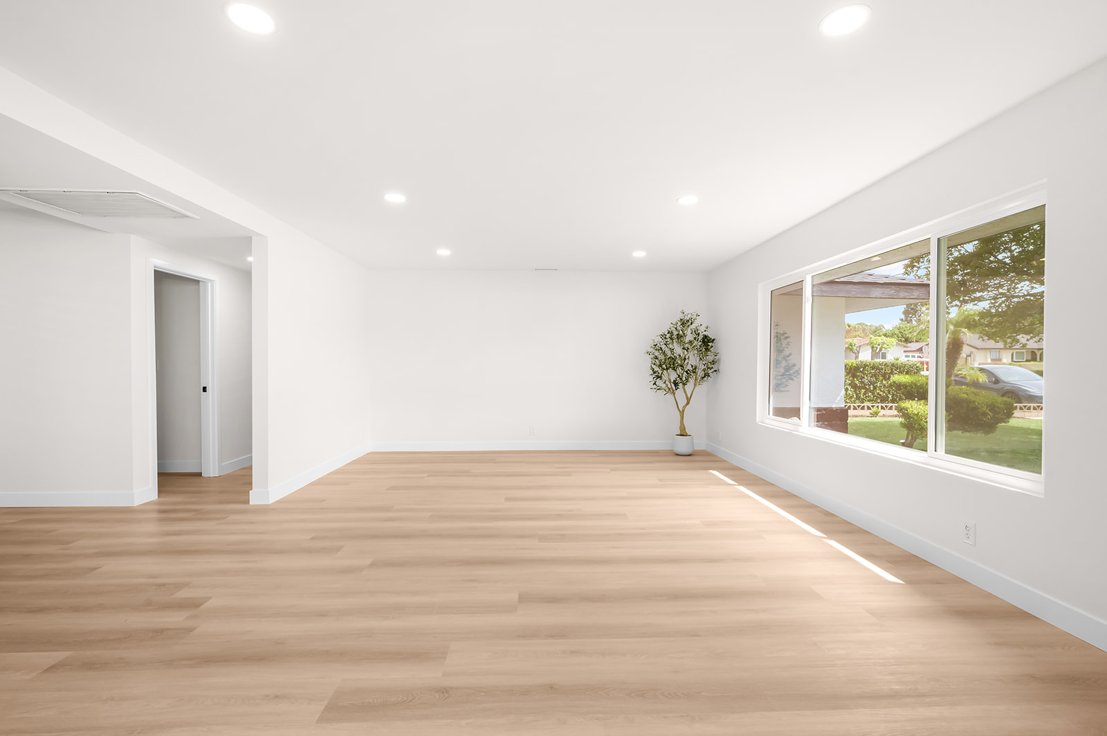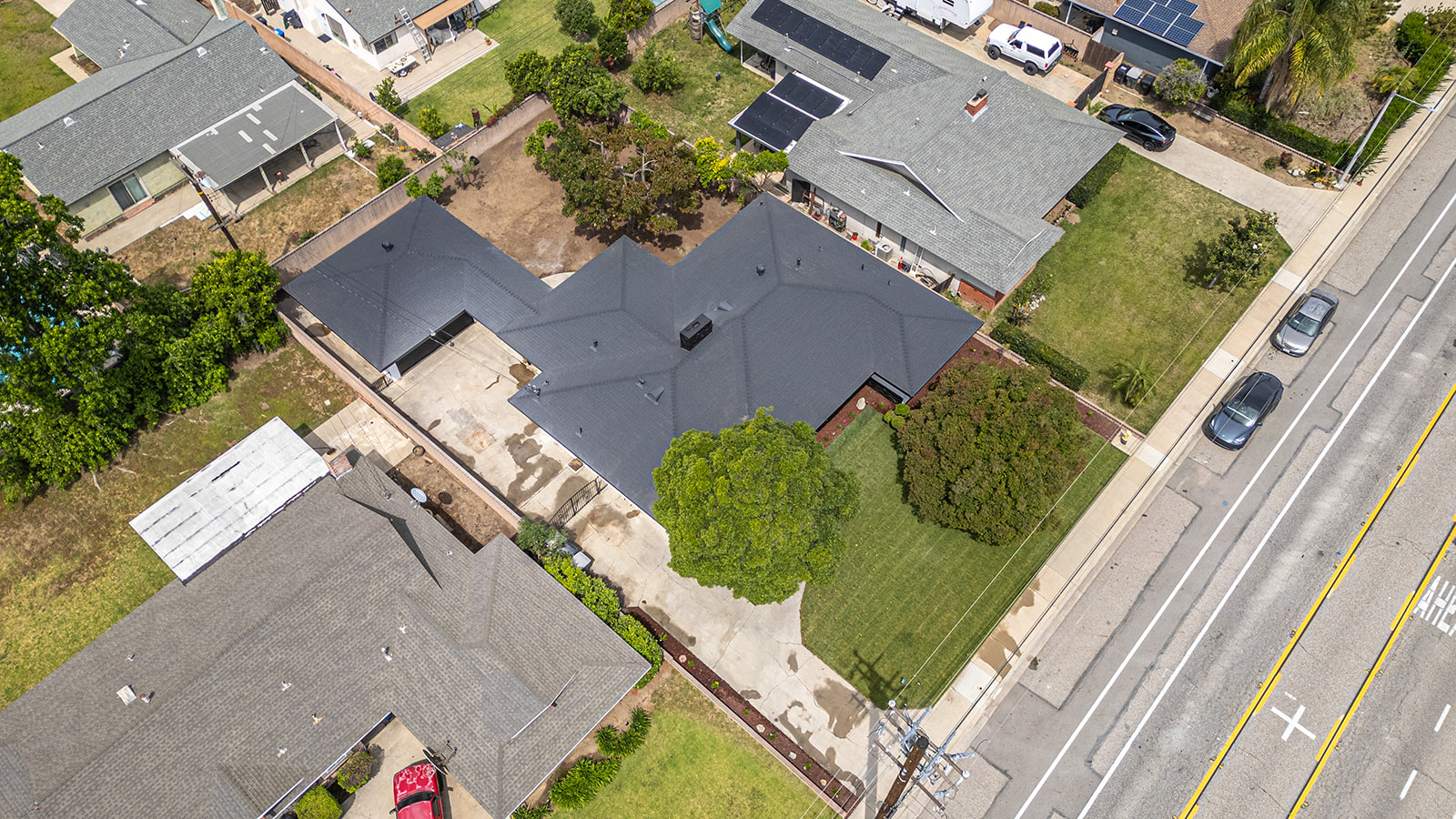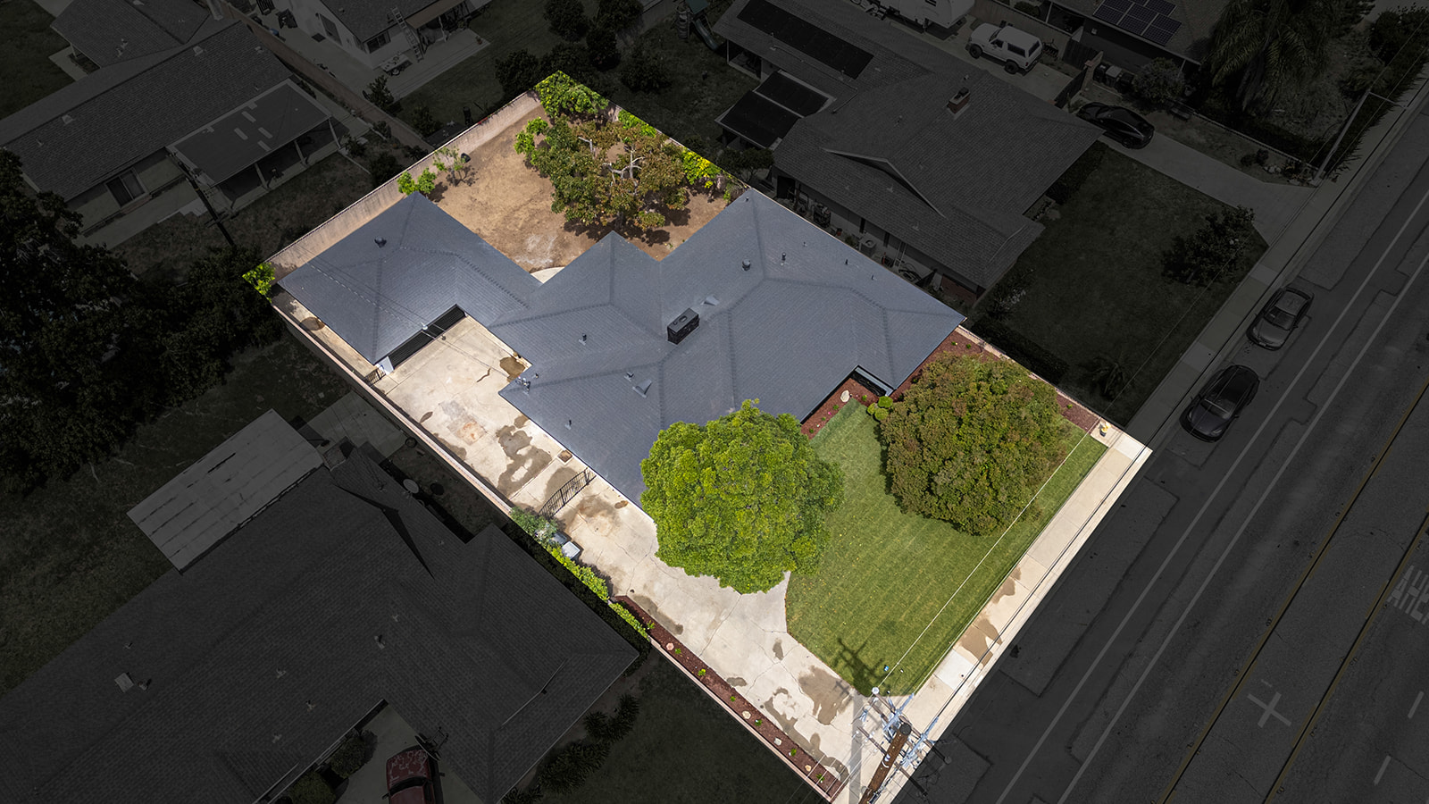 Rare find large flat lot, single story turn-key luxury living in the heart of Chino! This beautifully upgraded 3-bedroom, 3-bath home, features a stunning open-concept layout designed for modern living and effortless entertaining. The custom contemporary kitchen is the centerpiece of the home, showcasing high-end finishes, sleek cabinetry, and an oversized island perfect for gatherings. Thoughtfully updated throughout, the property includes new windows, sliding glass door, and interior/exterior doors—all with stylish, modern finishes. The spacious layout offers a dedicated dining room, living room, family room, and a separate laundry room for added convenience. Step outside to a finished patio that seamlessly connects the main home to a detached oversized garage—ideal for a future ADU conversion or additional workspace. Situated on a generous lot just under 10,000 sq ft, the property offers endless possibilities. Enjoy a large, beautifully landscaped front yard with fresh sod, as well as a spacious backyard filled with mature fruit trees including apple, grapefruit, orange, tangerine, and avocado. There is still ample room to build an additional dwelling (buyer to verify with city) or create your dream pool and spa retreat. The long, expansive driveway provides parking for up to 6 vehicles with ease. A rare opportunity to own a fully upgraded, move-in ready home with space, style, and future potential!