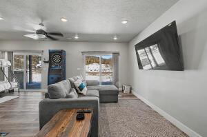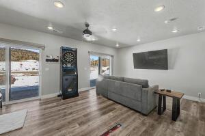 Crooked River Town Homes are one of the the newest Town Homes(TH) in Brian Head. Built in 2021 these finely upgraded Town Homes are nestled in the Brian Head Mtns. across from Navajo Lodge (high speed quad chair) with views of the surrounding trees and mtns. Features include large basmt plumbed for bath & kitchenette, LVT flooring, upgraded carpet, on demand water heater, granite countertops, SS appliances, vaulted ceilings, upgraded insulation,gas fireplace, covered patio wired for hot tub & deck off main level, AC & pre-wired for security & distributed audio. High end Furniture included along with 3 Arcades for the kids or family entertainment. This TH has 2 bunk beds(full & Twin) in the basement for the kids. Do not miss out on this rare opportunity to own one of the newest and most modern Town Home in Brian Head. HOA dues include:private road maint., snow removal, exterior maintenance(excluding windows & doors), reserves.