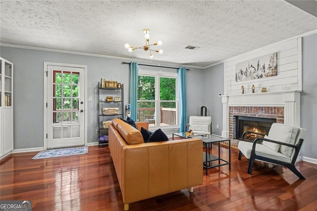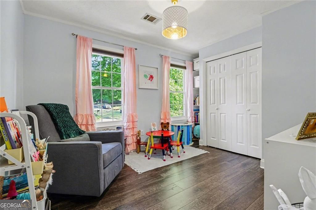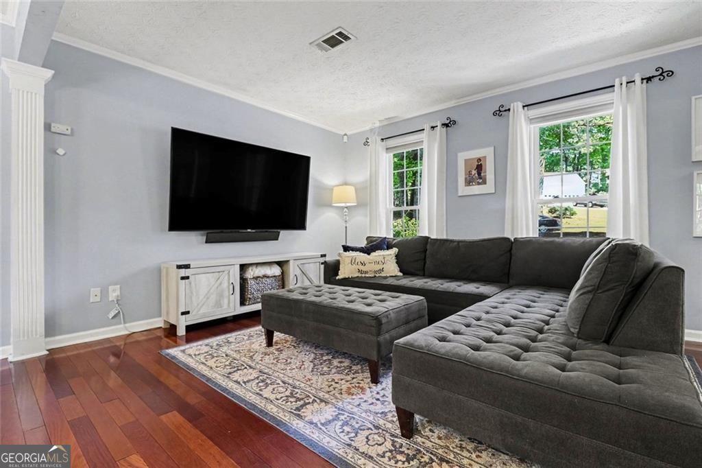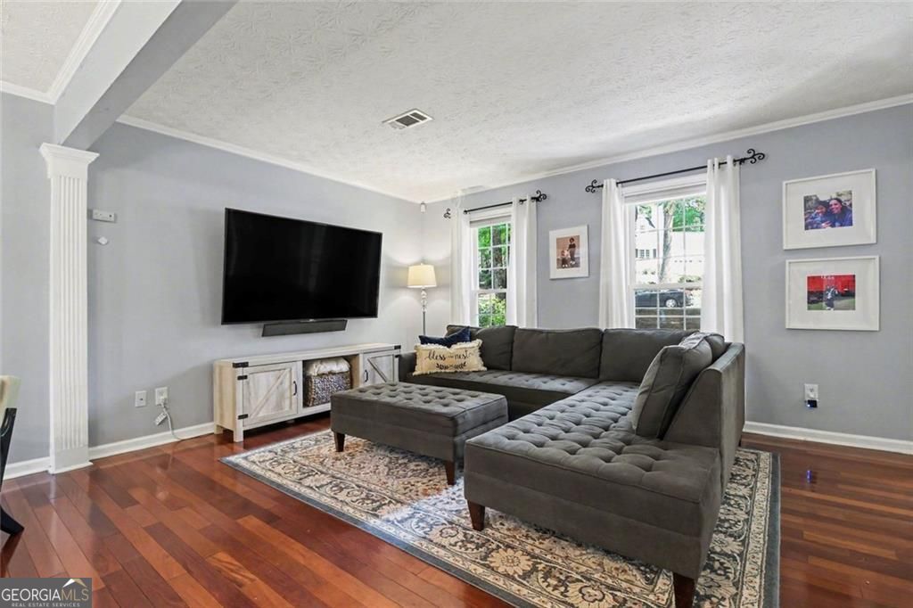 Charming jewel in Roswells desirable Barrington Farms neighborhood. The main level welcomes you with a spacious foyer leading to a bright living room that opens to a fireside family room-an ideal layout for entertaining.