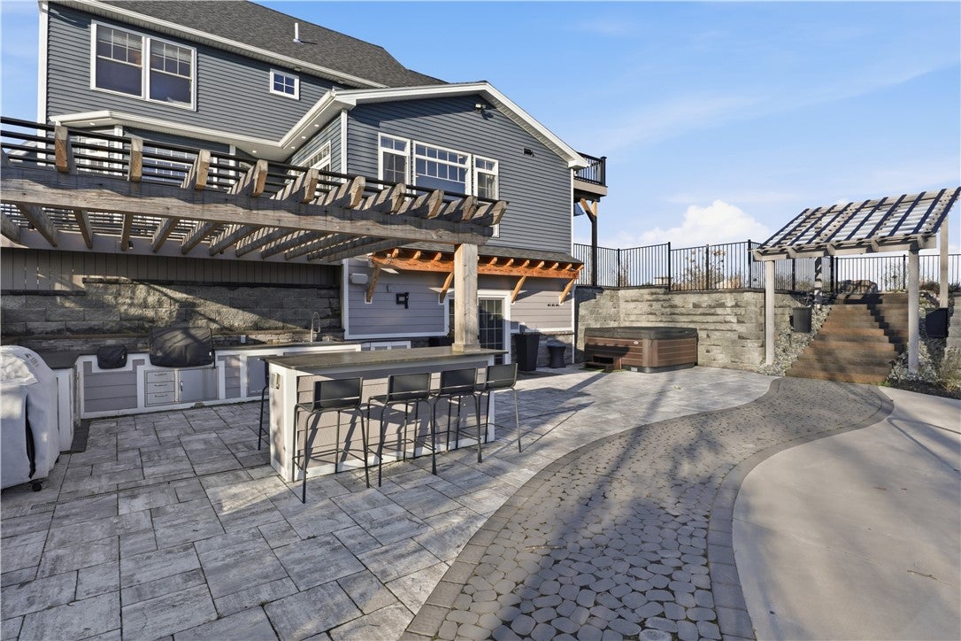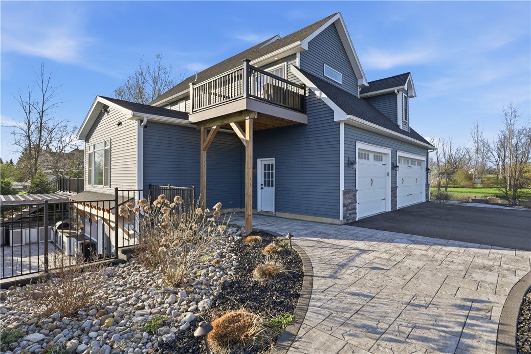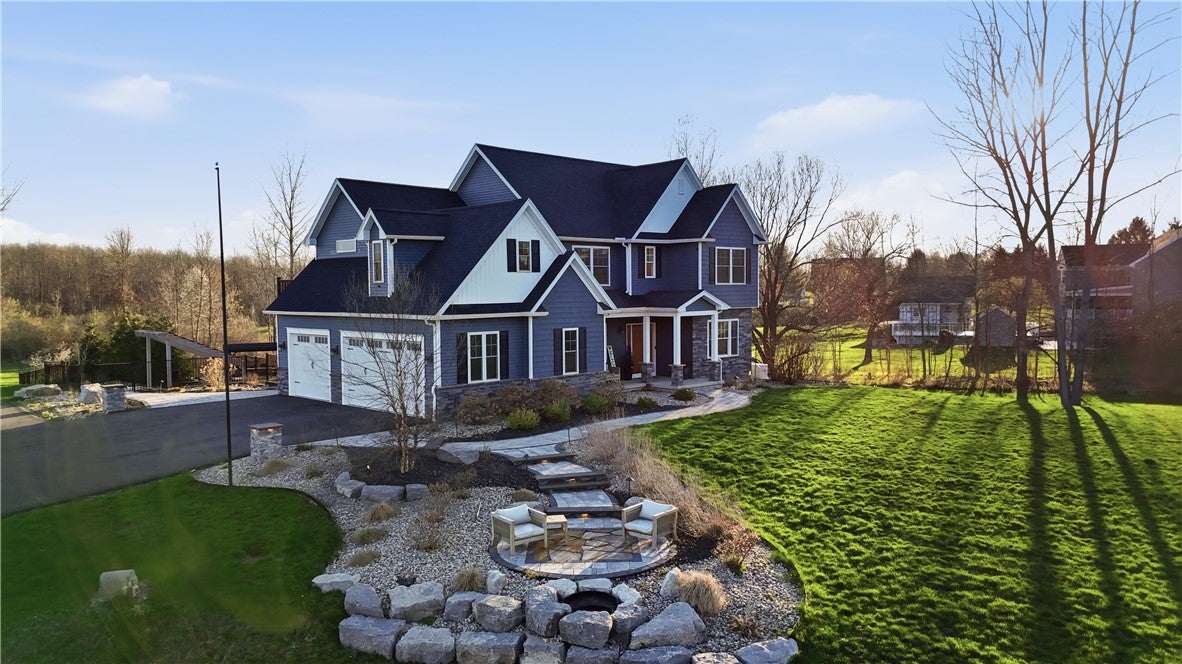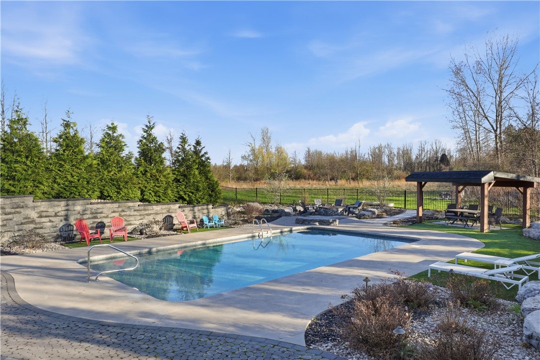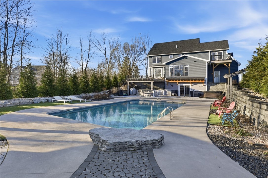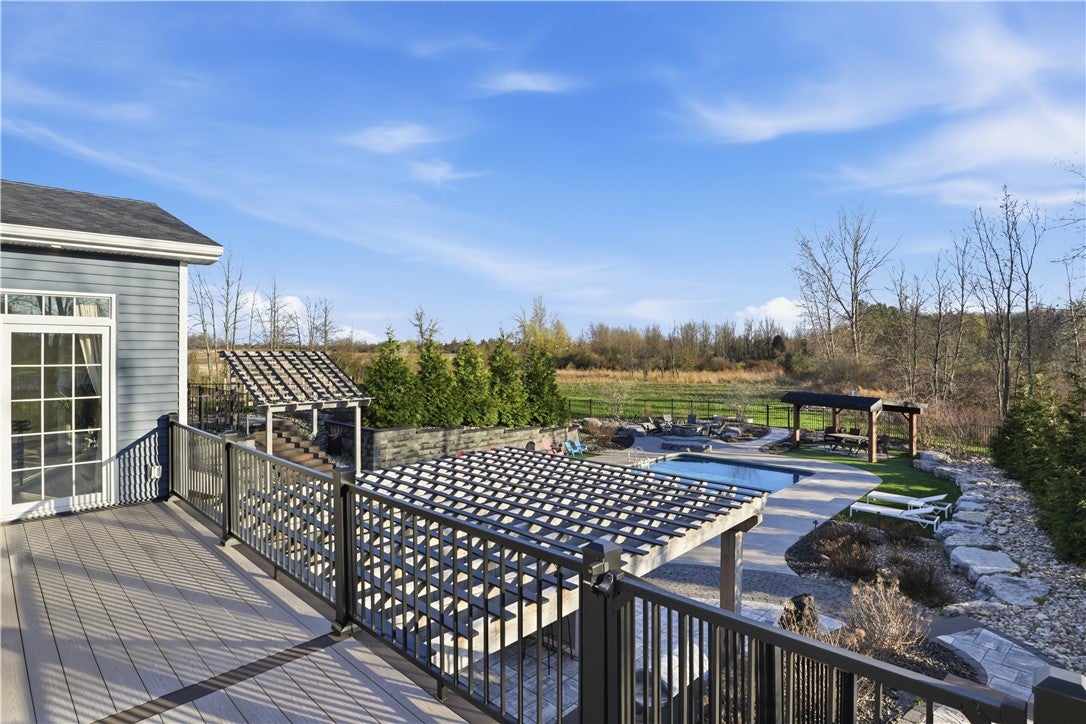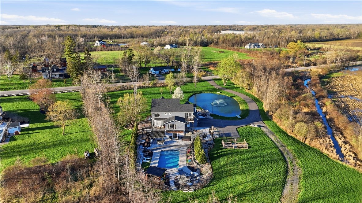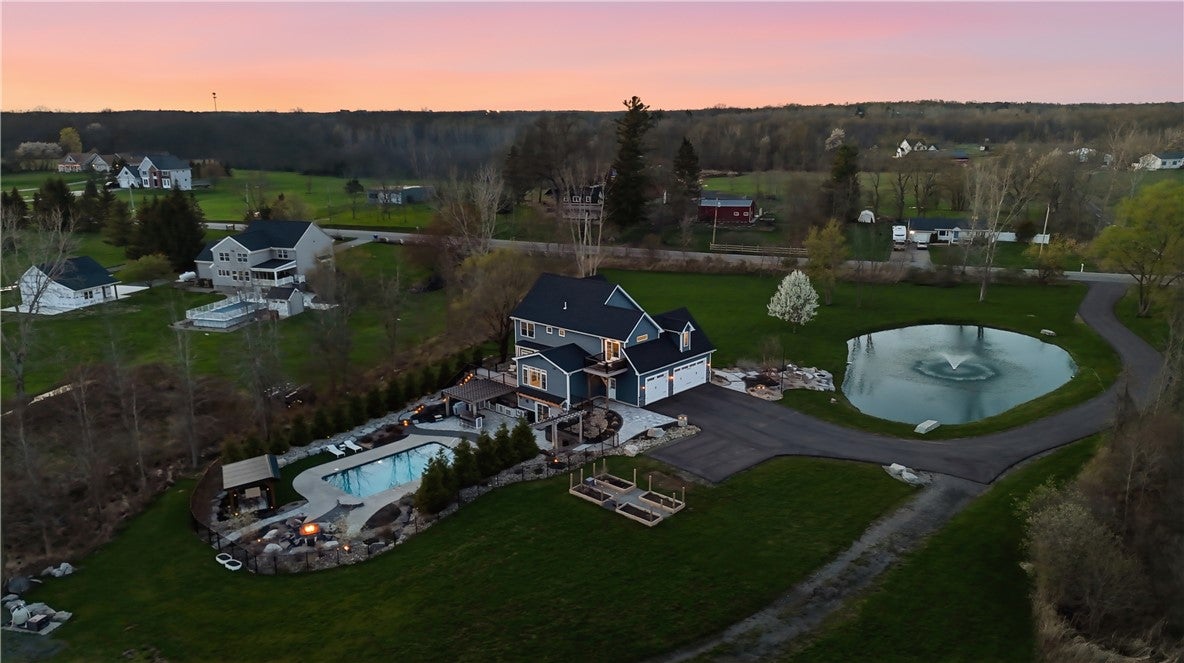 One of a kind and thoughtfully designed, this custom-built 2021 home is set on 10.41 private acres in Chili and offers a rare blend of modern living and resort-style retreat. With 2,749 square feet above grade, plus an additional approximately 800 square feet of beautifully finished walkout lower level, this home was built for both everyday comfort and unforgettable gatherings. The lower level lives like a true extension of the home- featuring a living room, kitchenette, full bath, and guest bedroom with direct walkout access to the pool and hot tub area- ideal for entertaining, guests, or multigenerational living. Inside, the flow is seamless and intentional. The main kitchen and dining area open to an elevated deck that transitions effortlessly to the backyard, creating a natural connection between indoor and outdoor living. The primary suite is a true retreat- complete with a private sitting area and dry bar, a custom walk-in closet with expansion potential, and exclusive access to a second-floor deck, offering a peaceful space to start or end your day. Step outside and experience a setting that feels like your own private resort. The backyard oasis features a saltwater pool (2022), a fully equipped outdoor kitchen, hot tub (2022), pergola, lean-to for shaded relaxation, and a gas fire pit- all surrounded by professionally designed, fully lit landscaping with integrated sound. The grounds have been meticulously curated for year-round enjoyment. A custom paver walkway welcomes you home, while a private pond-side patio overlooks a -acre stocked pond with fountain and aerator. Here, a sunken natural fire pit framed by a boulder wall creates a truly unforgettable gathering space. Additional highlights include a whole-house generator and a newly paved driveway (2025), rounding out this immaculate property. Every detail from the interior layout to the engineered outdoor experience was designed with comfort, privacy, and connection in mind. This is more than a home- its a lifestyle... one designed so well, you wont feel the need to leave.