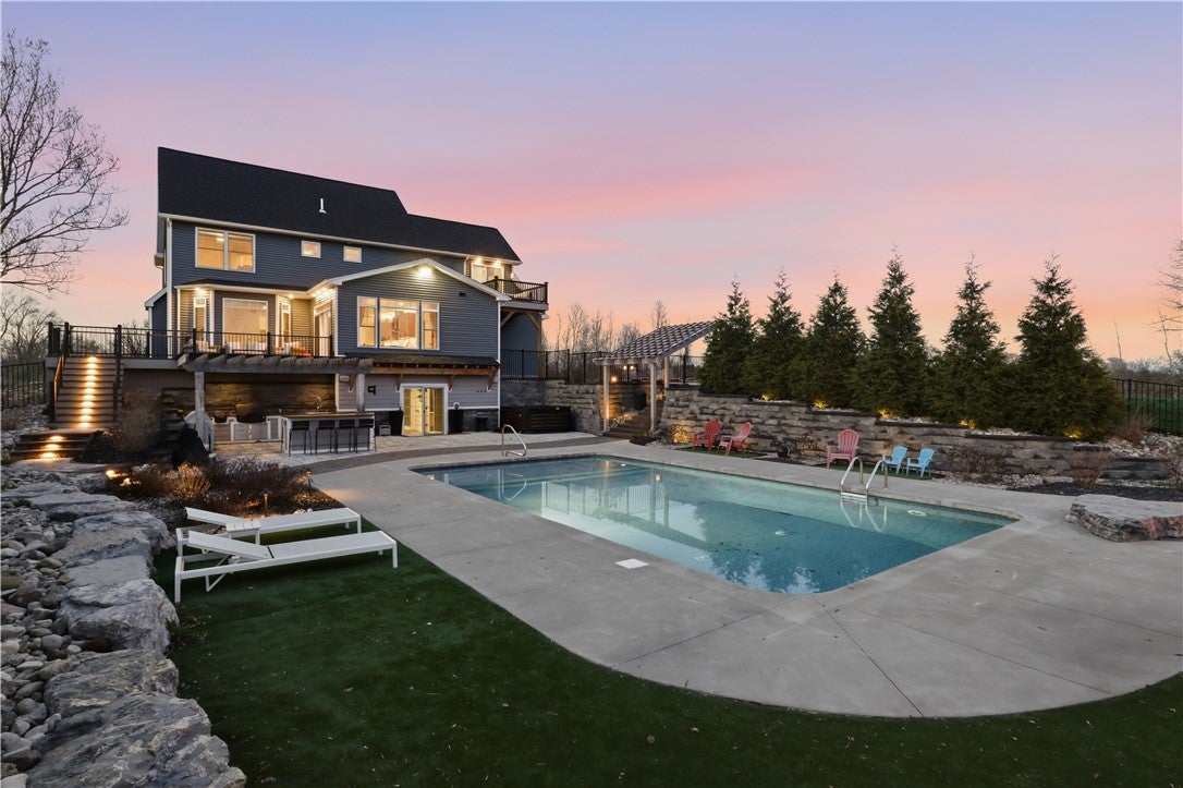 The nicest home in the most upscale subdivision at the LOZ! This 10,000SqFt masterpiece IS COMPLETED & will leave you in awe. Centrally located on the 21MM near Redhead, Shorty Pants, & PBC, this no wake, cove located gem offers constant boat watching for Lake enthusiasts. In totality, the property presents 6 bedrooms(each are ensuites), 8 full baths, 1 half bath, a 2 tiered salt water gunite pool, massive new 2 well boat dock(16x50 & 12x34 ft slips), elevator, floating staircase, & gentle lakefront lot. The exterior consists of stucco, NewTechWood, & native Kansas limstesone & marble quality limestone. The main level offers 2 ensuites, the kitchen, living, dining, & laundry rooms, & 10 ft collapsible sliding doors. Venture upstairs for 3 ensuites, bar, & a half bathroom. The lower level has a living area, golf simulator room, wine room, lakeside ensuite, storage, & walks out to the pool. Upgrades include Sonos wired speakers throughout, 4 car heated/cooled garage(fit 8 w/ lifts), each level has stamped concrete patios, Viking appliances, Quaker aluminum windows, Napoleon electric fireplaces, & was designed by ML Designs(KCs top interior designer 2022-24). Tour it today!