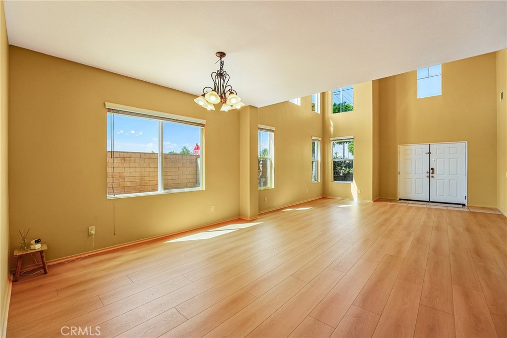 Situated in a highly convenient Eastvale neighborhood, this beautiful two-story home features a recently updated interior fresh paint and new flooring. The entrance opens to an inviting living room with vaulted ceilings and ample natural light, adjacent to a formal dining space.
