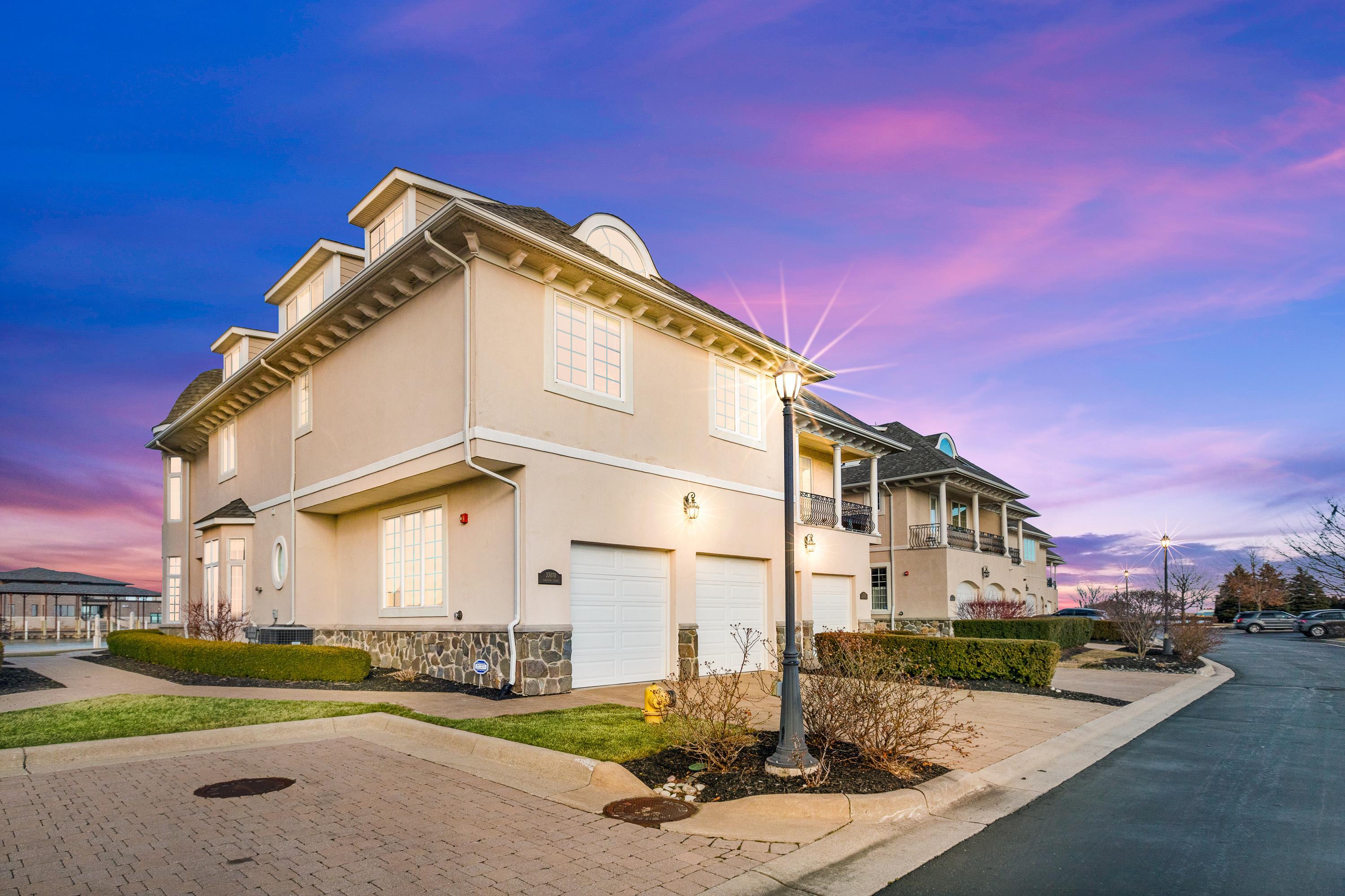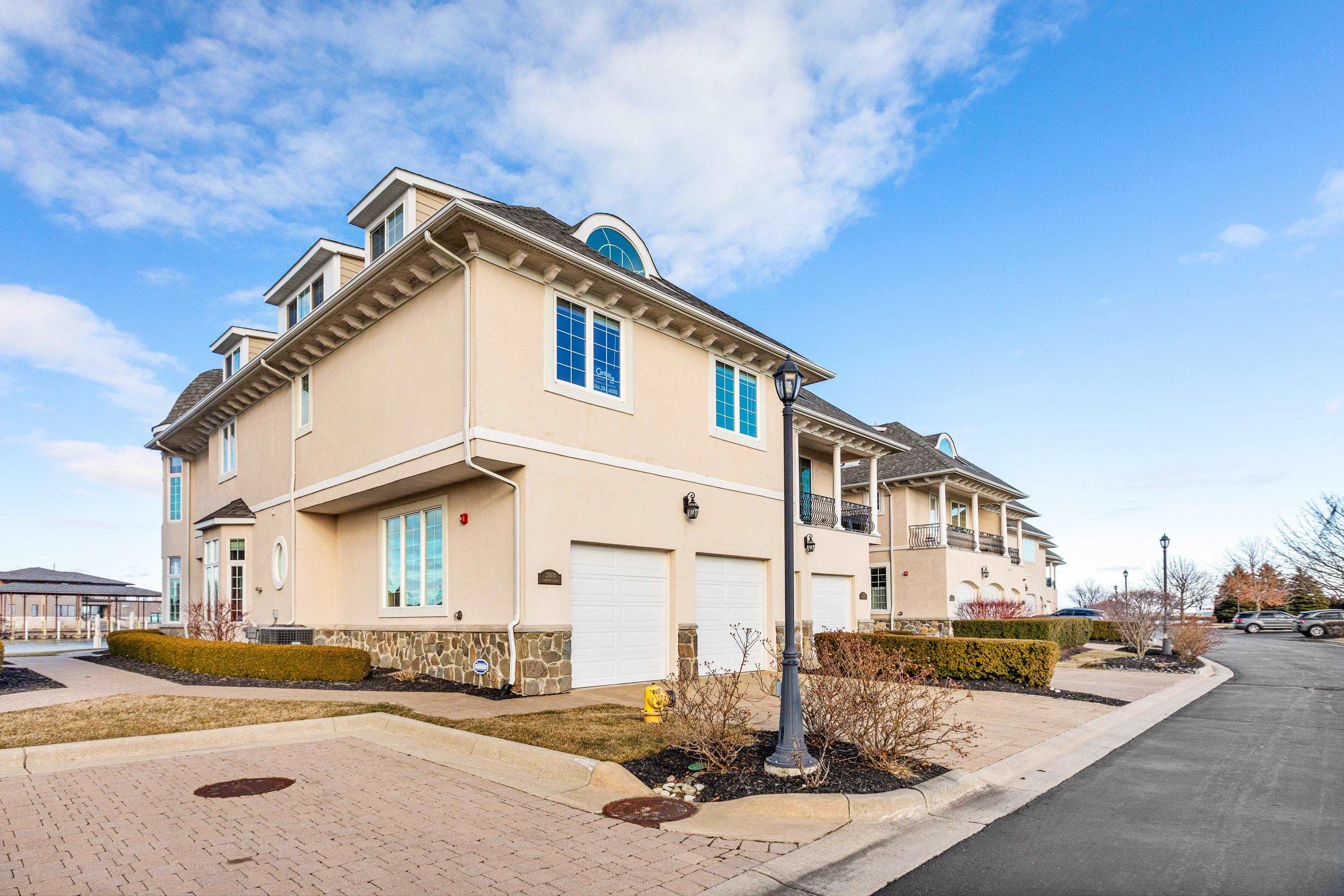 YOUR INVITED! OPEN HOUSE THIS SUNDAY 4-26 from 11-3 Well Bring the Champagne! The Best Of The Best of Care Free Condo Living on the Lake. Welcome to this Pristine Gated Community of Venetian Pointe Estates. A True Boaters Paradise w/ Spectacular Panoramic Waterfront like No Other. One of a Kind-World Class Michigan Lake Yachting right in your Back Yard Daily Including 2-40 Ft Boat Slips on the Clinton River. Deep Water Location! Vacation at Home with an Entertaining - Centric Home & Open Floor Plan including 4 Bdrm, 3 1/2 Bath Boasting Exceptionally Maintained & Updated - Mint Condition Steps Away from Boat Slips. Truly feels like your over water Simply Spectacular! 8 Ft Doors , 9 Ft Ceilings Crown Molding and More! As you enter the Condo there will be No Doubt you will have to Catch Your Breath! Model Beautiful and Professionally Decorated with a Sharp Dramatic Kitchen, Stainless Steel Appliances, High End Hardware-Stunning! Large Seated Island and Built in Bar Area and Floor Plan includes Formal Dining & Gas Fireplace. Hard Wood Flooring t/o. Primary Ste is Stunning w/Balcony & River Views! Third Floor Guest Ste has additional Heating/Cooling & Full Bath. All Appliances Included. Rear View of Bedrooms is Campau Bay and Lake St Clair. Paver Brick Walkways and Patio. Hard to find Guest Parking and Lush Green Grounds unlike most Condo Developments! A Boutique & Fashionable Waterfront Beauty! Dont Miss This One!