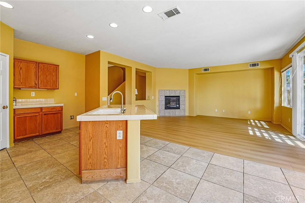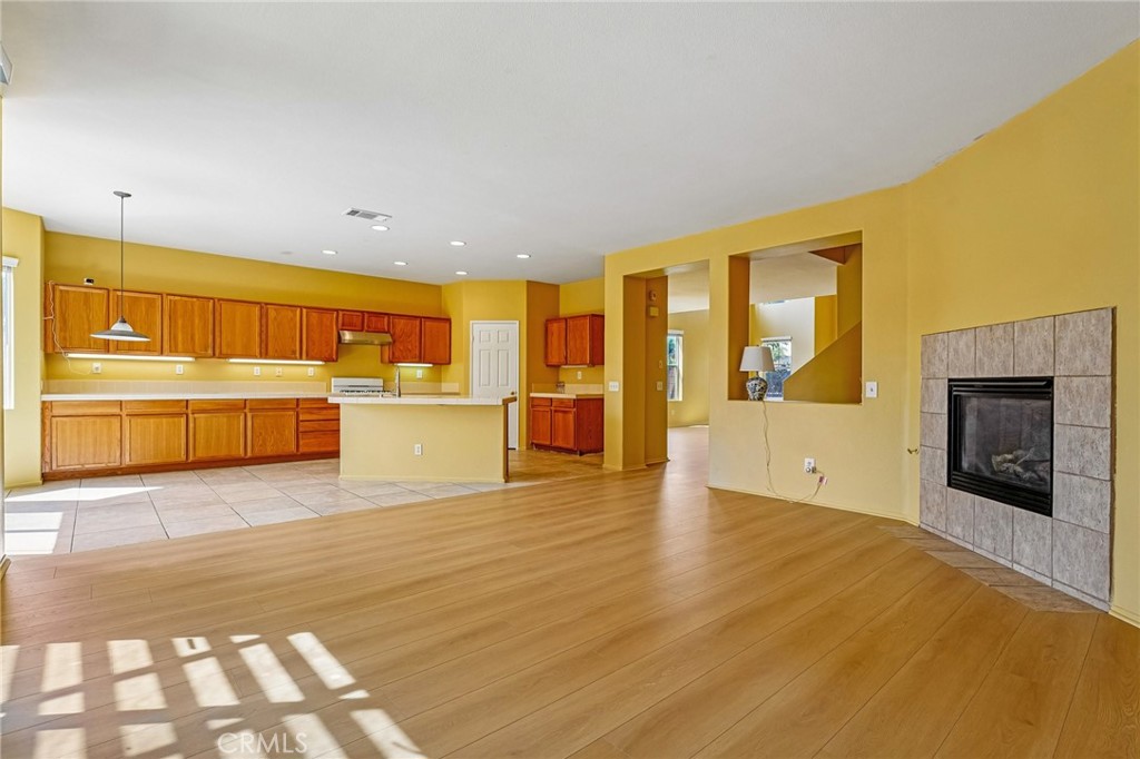 Situated in a highly convenient Eastvale neighborhood, this beautiful two-story home features a recently updated interior fresh paint and new flooring. The entrance opens to an inviting living room with vaulted ceilings and ample natural light, adjacent to a formal dining space. The open floor plan towards the back to unfold a spacious kitchen, features wood cabinetry, tile countertops, a pantry, and a center island, all in its original well-kept condition. Next to kitchen is a breakfast nook with a sliding glass door access to the backyard. It also connects to a family room anchored by a cozy fireplace. There is a master suite in main floor to accommodate overnight guests or multilgeneration lifestyle. Addition guest restroom is also aviable in main floor for convenience. Moving to upper level is fully carpeted with a spacious loft, along with three bedrooms, which includes a master suite and additional full bathrooms. There is also an extra space can be used as a play area or simply a meditation retreat. Additional property highlights including : an extra space / room at main floor can be used as home office or convert to a 5th bedroom, recessed lighting in kitchen, walk-in closet in upstairs master suite, laundry room upstairs for convenience, 3 car attached garage, low maintenance backyard with a built in BBQ grill set. No HOA. The property is located in the heart of Eastvale, providing immediate access to the 10, 15, 60, and 91 freeways. The location is near neighborhood parks, top-rated school. Agent please read private remarks.