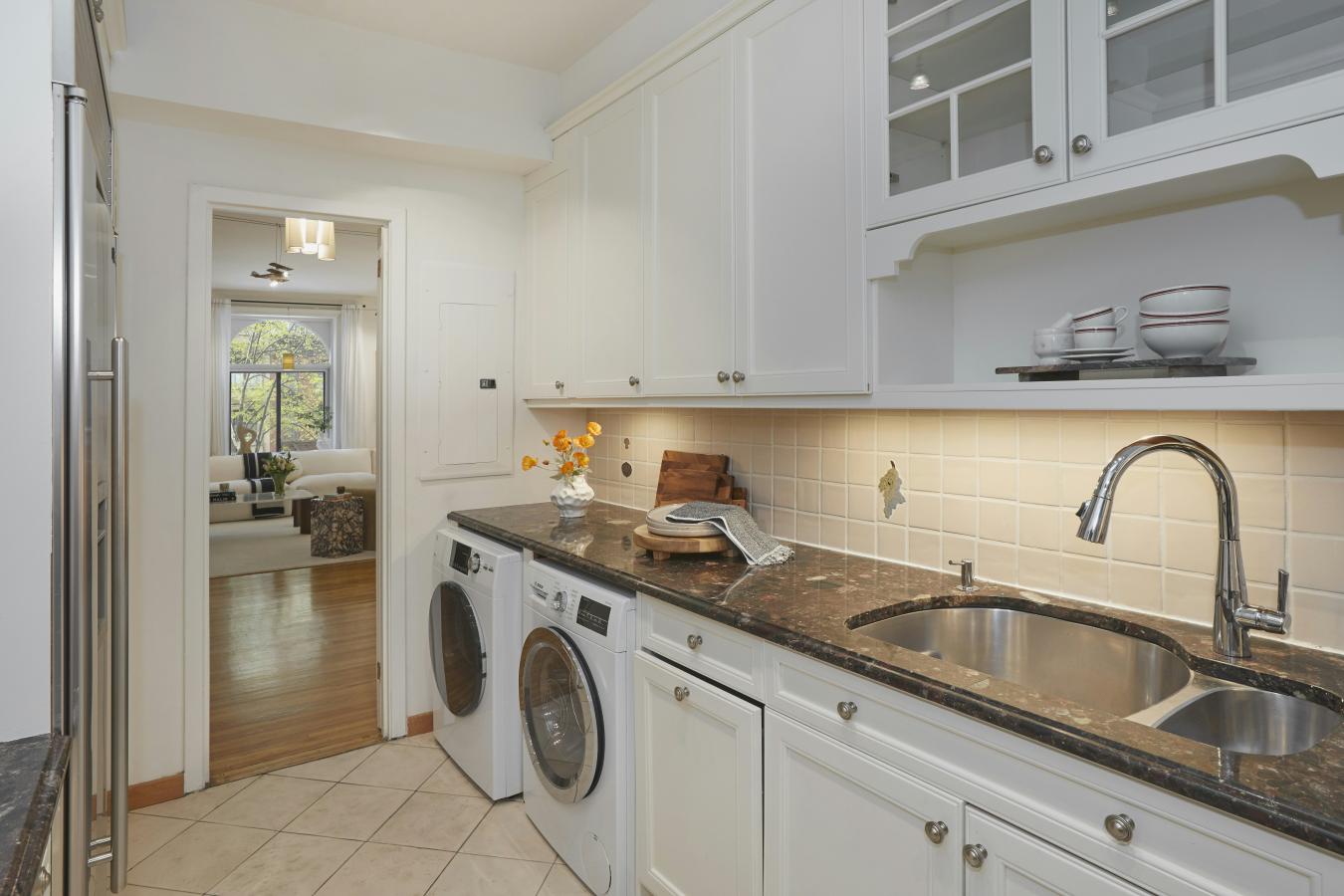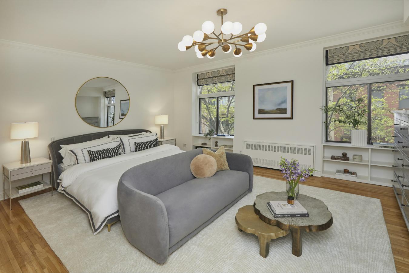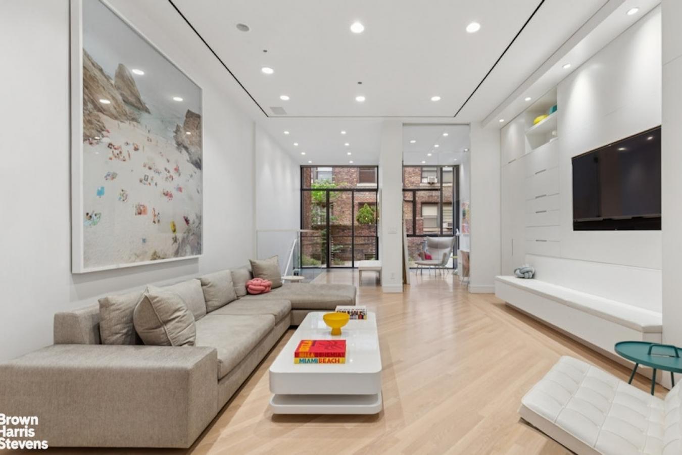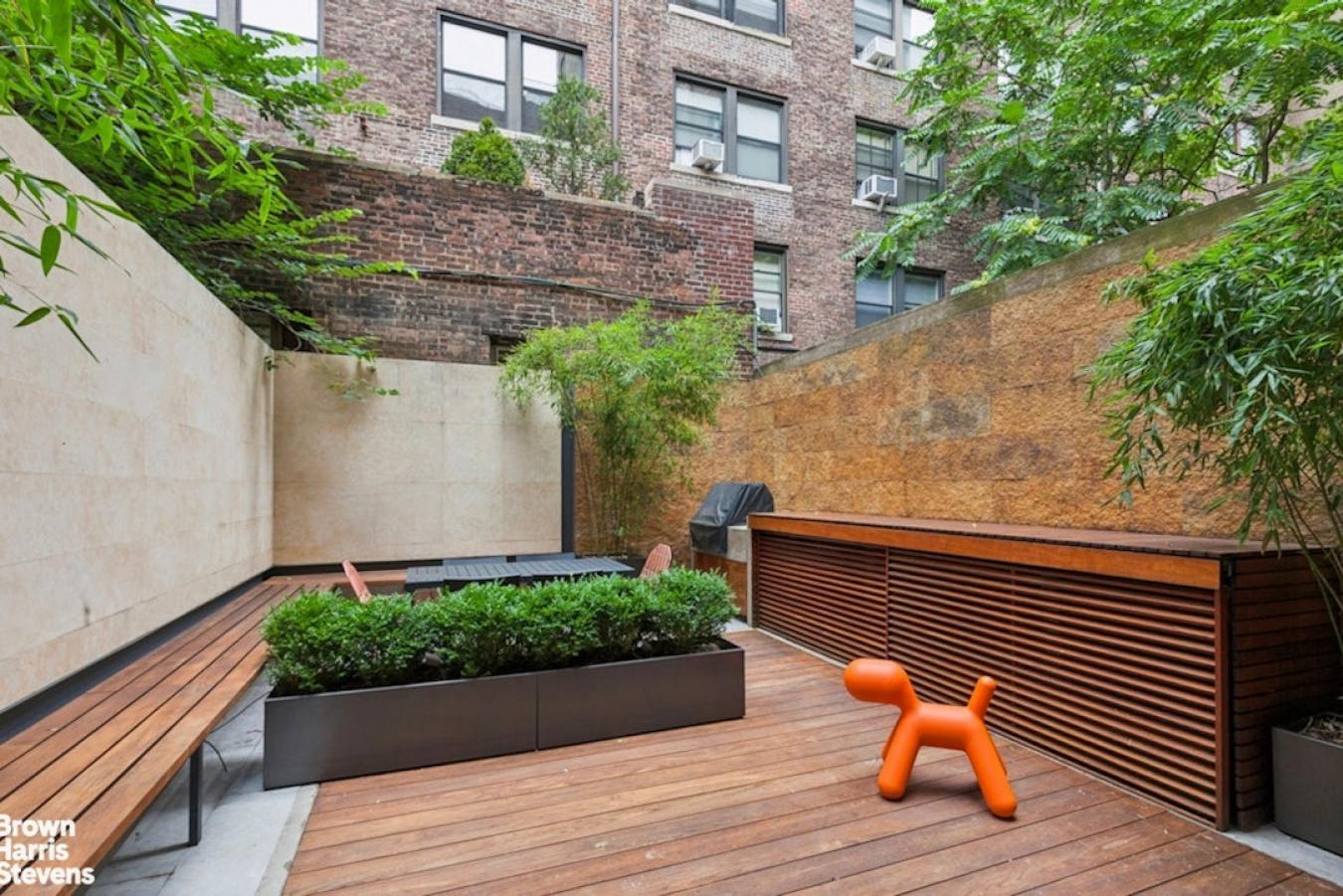 Welcome to 35 West 71st Street #1, a one-of-a-kind residence nestled on a picturesque tree-lined street just one block from Central Park. This immaculately designed and renovated duplex spans the parlor and garden levels of a historic 1899 townhouse, offering the rare privacy of a home with the ease of a boutique co-op. This home features 3 bedrooms, 3 bathrooms, and a dedicated home office. The residence has been thoughtfully renovated over the past decade. Smart-home comforts include an all-new HVAC system with central air controlled by Nest thermostats, a brand-new Lutron lighting system with Sonos integration, in-ceiling audio with new Sonos units for seamless sound throughout, and motorized shades in every room for convenience and ambiance. The parlor-level entry sets the tone with custom coat and shoe storage designed for both elegance and practicality. To the left, a sleek chefs kitchen gleams with top-of-the-line Miele, Wolf, and Sub-Zero appliances, complemented by a convenient seated bar top for casual dining or conversation. The generously proportioned dining room boasts soaring 12.6-foot ceilings and is framed by dramatic 9-foot curved glass bay windows, flooding the space with southern light and offering picturesque views over West 71st Street. Comfortably accommodating eight guests, making it ideal for both intimate dinners and larger gatherings. To the right, the expansive living room is bathed in northern light through dramatic floor-to-ceiling windows and enhanced by custom built-ins and lofty 11-foot ceilings, creating an atmosphere of airiness and grandeur. This level also includes a sunlit home office and a full bathroom appointed with Dornbracht fixtures and a wall-hung toilet. Overlooking the private garden, a balcony offers a tranquil retreat, while a striking frosted-glass floor dramatically reveals the floating staircase that descends to the garden level below. The garden-level family room offers both comfort and functionality, with abundant custom cabinetry for storage and seamless access to your private outdoor oasis. Step outside into a beautifully designed garden retreat, complete with a wood deck, built-in seating, lush greenery, and a dedicated outdoor cooking area-perfectly suited for quiet relaxation or lively entertaining with guests. Just off the family room, two secondary bedrooms share a well-appointed full bathroom, providing an ideal layout. Further down the hallway, the serene primary suite awaits, featuring a spacious walk-in closet and a spa-inspired bath. Indulge in a glass-enclosed shower with a built-in bench, Dornbracht fixtures, and a separate toilet room with a sleek wall-hung design. For added convenience, an Asko washer and vented dryer complete this level, blending luxury with everyday practicality. Set within a beautifully maintained townhouse with only two shareholders, this co-op functions much like a condo, requiring only a minimal board package. The building offers a renovated lobby (2022), basement storage, intercom access via mobile app, and a pet-friendly environment. With the B/C subway just one block away and the 1/2/3 trains one avenue over, commuting is effortless. Central Park is practically your backyard, with world-class dining, shopping, and culture moments away.
