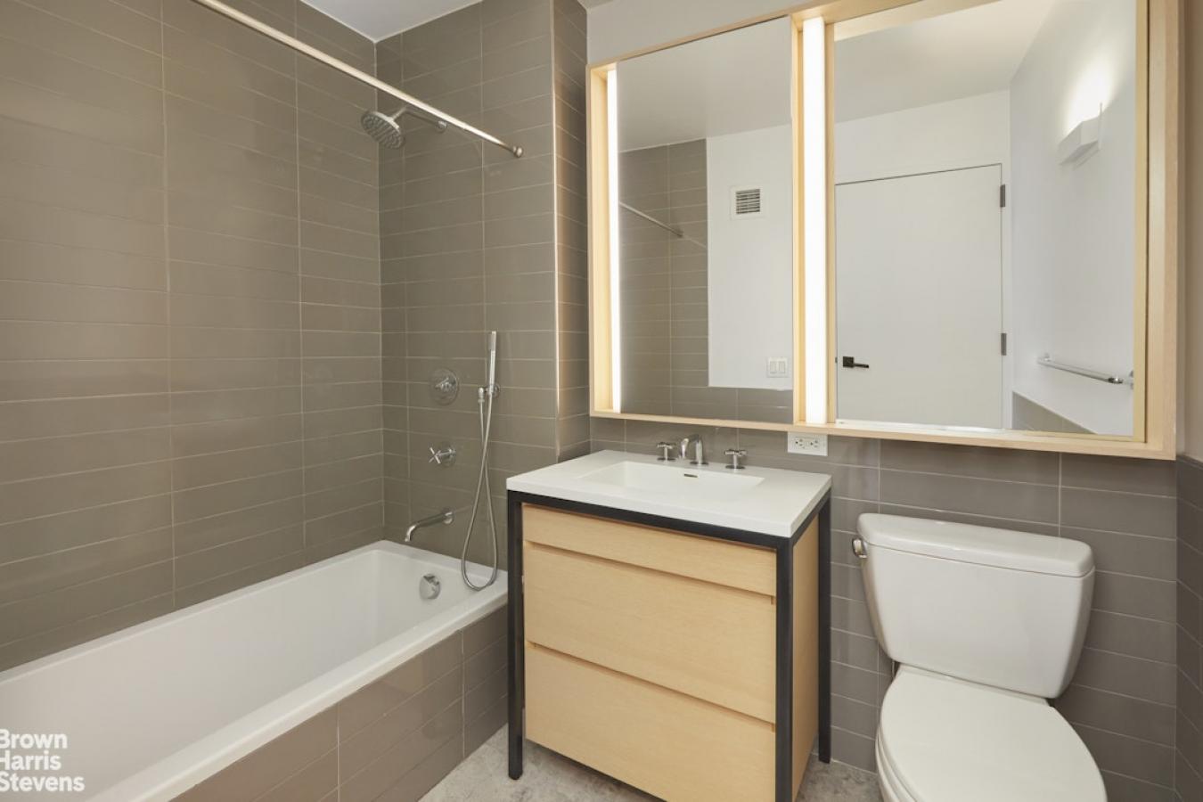 Welcome to apartment 2E at 100 Engert Street-a thoughtfully designed one-bedroom, one-bath condominium offering modern comfort, a long list of essential amenities, and an unbeatable Williamsburg location just one block from McCarren Park. This bright and efficient home features a well-proportioned layout with a Juliet balcony. All residences feature some private outdoor space and include a full-size in-unit washer and vented dryer-a rare and highly desirable upgrade-tons of storage inside the apartment, two available storage cages in the basement for an additional fee, free bike storage, and the ultimate in building parking, available for separate rent. All making everyday living seamless and convenient. The building has recently undergone a full renovation of its lobby and hallways, creating a polished and contemporary arrival experience, naturally lit by windows in all common areas. Residents enjoy an impressive suite of amenities, including a fully equipped gym, a landscaped common garden terrace with planter boxes, and a beautifully furnished roof terrace with full skyline views ideal for relaxing or entertaining. This apartment transfers with a private outdoor roof cabana with water and power. Additional conveniences include true central air conditioning and forced air heat, solar shades, custom California closets, an entertainment console, wood floors, floor-to-ceiling windows, massive closets, and the building has a full-time superintendent, a locked package room, bike storage, and additional on-site storage cages available for rent. Parking is available in the building directly accessed by the elevator for an additional fee. Perfectly positioned just one block from McCarren Park and moments from Williamsburgs best dining, shopping, and transit, this home offers the ideal balance of lifestyle and convenience. Welcome home!