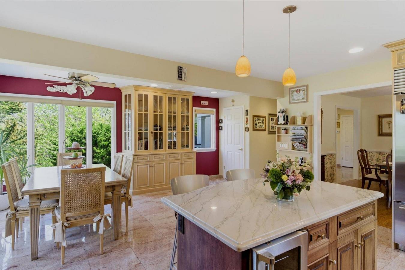 Set back from the road on just over an acre in East Norwich, this elevated and private residence is accessed by a long driveway and offers a rare combination of architectural character, functional layout, and thoughtfully designed outdoor living enhanced by extensive and thoughtfully executed recent improvements. Blending Mediterranean influences with traditional design, the home spans over 3,100 square feet across multiple levels, creating a natural separation between living, entertaining, and private spaces. The main level features a bright and open kitchen with a breakfast area overlooking the surrounding greenery, a formal dining room, and a well-proportioned living room with a fireplace and direct access to the outdoor deck, creating a seamless indoor-outdoor flow. The kitchen is equipped with top-tier appliances, including Sub-Zero, Viking, and Thermador. The outdoor setting is a defining feature of the property. A series of expansive, recently rebuilt and upgraded decks and a gazebo take full advantage of the homes natural elevation, offering multiple areas for entertaining, dining, and relaxation in a private, tree-lined setting. Beyond the primary outdoor entertaining areas, the lot includes two additional open grounds, offering potential for expanded outdoor uses such as a sport court, pool, or garden-subject to permits and approvals. The second level includes a spacious primary suite with vaulted ceilings, along with additional bedrooms and flexible living space. The lower level offers added versatility, ideal for a home office, guest space, or extended living setup. Significant upgrades enhance both efficiency and long-term comfort, including a fully owned solar system, a whole-house natural gas generator, upgraded insulation, and a hybrid heating system with a hot water tank (earning the home a Pearl Silver Certification). Additional features include central air, central vacuum, and gas line connections for outdoor use. Private, well-maintained, and offering a unique combination of usable outdoor space and interior flexibility-this is a home that delivers both lifestyle and long-term value. As per the homeowner, an assumable mortgage is available to qualified buyers. Listing ID: 931704