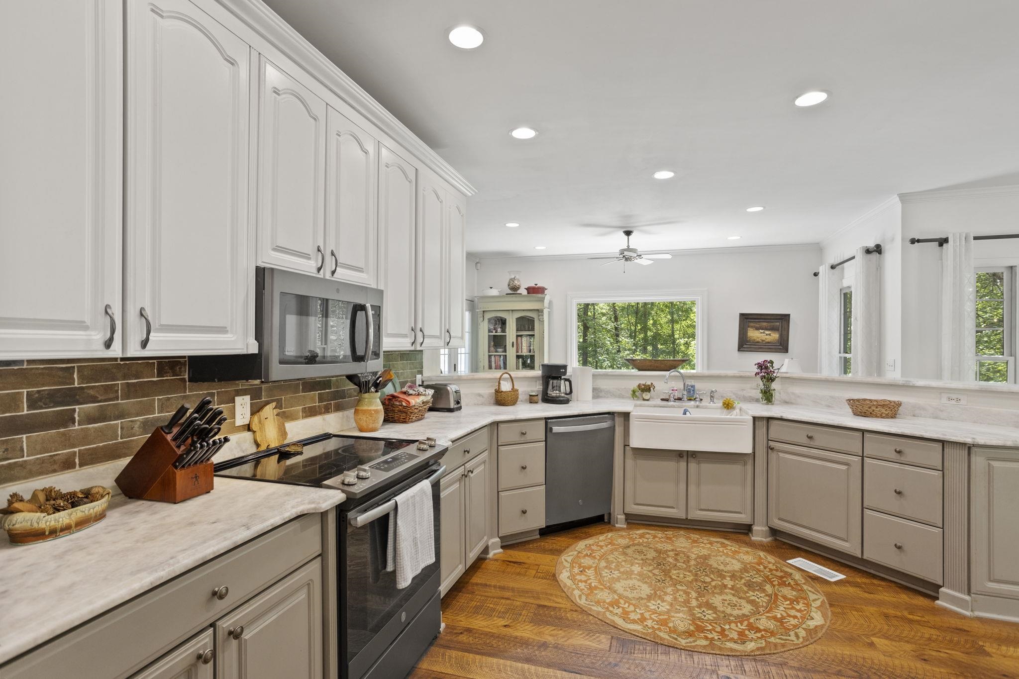 Minutes from downtown Landrum and the Tryon International Equestrian Center, this stunning equestrian property offers the perfect blend of comfort, space, and country living on 11.19 private acres with a beautiful mix of trees and open pasture. Complete with a barn, open pasture, and peaceful surroundings, this property is ideal for horse lovers or anyone seeking room to roam. As you meander down the private drive, the 2,883 square foot home welcomes you with an inviting entry foyer that opens into a spacious great room featuring cathedral ceilings, a cozy gas log fireplace, and a wet bar perfect for entertaining. The eat-in kitchen is both functional and stylish with updated marble countertops, tile backsplash, a walk-in pantry, breakfast bar, and a convenient desk area, with appliances updated in 2020. The formal dining room adjoins the kitchen and great room, creating the perfect setting for entertaining and gatherings. The owners suite is a true retreat with hardwood floors, a tray ceiling, built-in window seat, and private access to the back deck. The ensuite bath offers updated countertops, double vanities, a garden tub, separate shower, and a walk-in closet. Two additional bedrooms share a well-appointed hall bath. Upstairs, youll find a versatile rec room with built-in shelving and abundant storage space, ideal for a game room, home office, or hobby area.