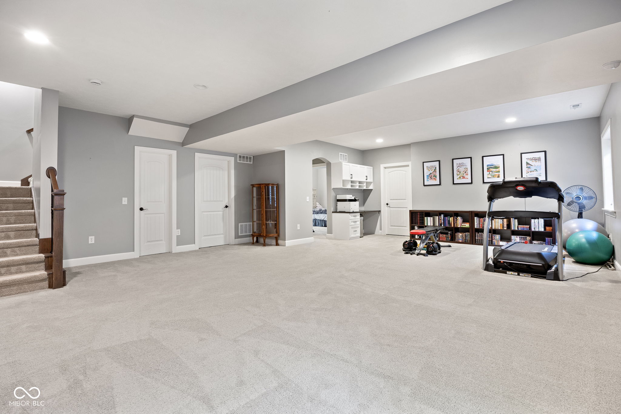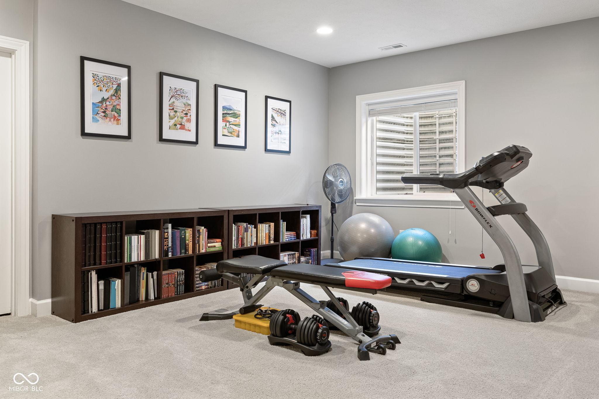 Rare opportunity to own a home in the heart of Carmel with true walkability to everything downtown has to offer!! Walking distance to Carmel City Center, Carmel Arts & Design District, Midtown, and the Monon Trail, this well-maintained home by David Weekley offers an urban lifestyle with all the amenities and benefits that Carmel provides. The home features a functional, efficient floor plan with flexible living spaces and wonderful storage. The kitchen includes ample cabinetry, double ovens, soft-close cabinets, a large walk-in pantry, and a dedicated beverage/coffee nook. The main living area includes has large west-facing windows and natural light and crown molding. The primary suite is located on the main level with tray ceilings, a large walk-in closet, oversized tile shower, and double vanity. Upstairs includes a dual vanity bathroom, two bedrooms, and a flexible open loft living space. The basement has egress windows and high ceilings to allow natural light. Large recreation room, along with the fourth bedroom and third full bathroom. The backyard is fully fenced for privacy and designed for outdoor recreational use with a stamped concrete patio, pergola, 10-person hot tub, gas grill, and hammock hook. Recent updates include: Kinetico water softener, R/O water filter system, wood floors throughout main and upper levels, custom built-in desk and cabinetry in basement, custom built-ins in laundry room, electric car charger in the garage, tankless water heater, bike storage in the garage. HVAC replace in 2017. Seller willing to negotiate a credit to replace the carpeting on the stairs and lower level for a floor covering of buyers preference. This is a Must See if you want to live in downtown Carmel! Open house Saturday 11-1 and Sunday 3-5!