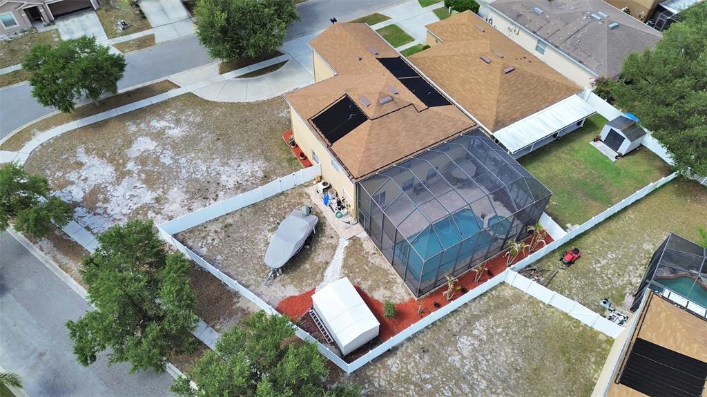 Space, Style & So Much to Love! Six bedrooms Bonus Room. Four FULL bathrooms. Two Car Garage. And 3,563 square feet, all opening to a beautiful, screened pool with spillover spa. Offering the kind of space that makes life feel easy and a backyard made for making memories. Sitting proudly on an oversized corner lot of OVER a quarter-acre, this impressive two-story home delivers! From the moment you pull into the drive, youll feel the difference that extra elbow room really makes. Inside, the layout works beautifully for real life. The dining room greets you upon entry, large enough for your biggest table and grand gatherings. The well-equipped open kitchen features an abundance of cabinetry, granite counters and backsplash, stainless appliance suite, generously sized closet food pantry, and a breakfast bar for seating that flows seamlessly into a cozy dining nook. The relaxing and spacious living room frames pool views through two large windows, and the kitchens sliding glass door puts you poolside in seconds! The home provides an abundance of flexible living spaces, with 6 TRUE bedrooms and 4 FULL baths. The first level offers a large downstairs bedroom and an adjacent full bathroom, the perfect asset that is highly sought-after. The upstairs primary suite is a true retreat: oversized, sun-drenched, and tucked away for ultimate privacy, with two large walk-in closets, plus a private En Suite bath with two sinks, soaking tub & shower, and large linen closet. Four additional great-sized bedrooms (3 with Walk-In Closets) and two more full bathrooms sit upstairs, offering flexibility for whatever life requires. An additional BONUS ROOM upstairs adds even more versatility to the generous floor plan. This is a layout that effortlessly adapts to growth, multi-generational living, or those who simply value space for playroom, media/game/craft room, home offices, gyms, and guests. Outside, the magic continues. The dramatic, newly-screened, soaring enclosure houses a heated sparkling pool with spillover spa, all surrounded by an expansive paver deck. Wrapped in the privacy of full vinyl fencing, this backyard airy oasis, with views of the overhead sky beyond the screens, was made for lazy Sunday afternoons, nighttime swims, and lively summer gatherings alike. The corner lot means you also have coveted side yard space -gated and ready for a boat, trailer, or toys, offering rare convenience in a residential community. A substantial storage shed keeps the 2-Car Garage free for what matters. The spacious corner lot gives you plenty of room for pets and play, plus the breathing room youve been dreaming of, something most homes in this price range simply cant offer. Located in the Ashley Lakes community, nestled in the sought-after Gunn Highway/SR-54 corridor with neighborhood parks and everyday conveniences just around the corner, this is the home you grow into and never want to leave. A Low HOA fee of only 114/Quarter and NO CDD fee. Call to schedule your private showing today.
