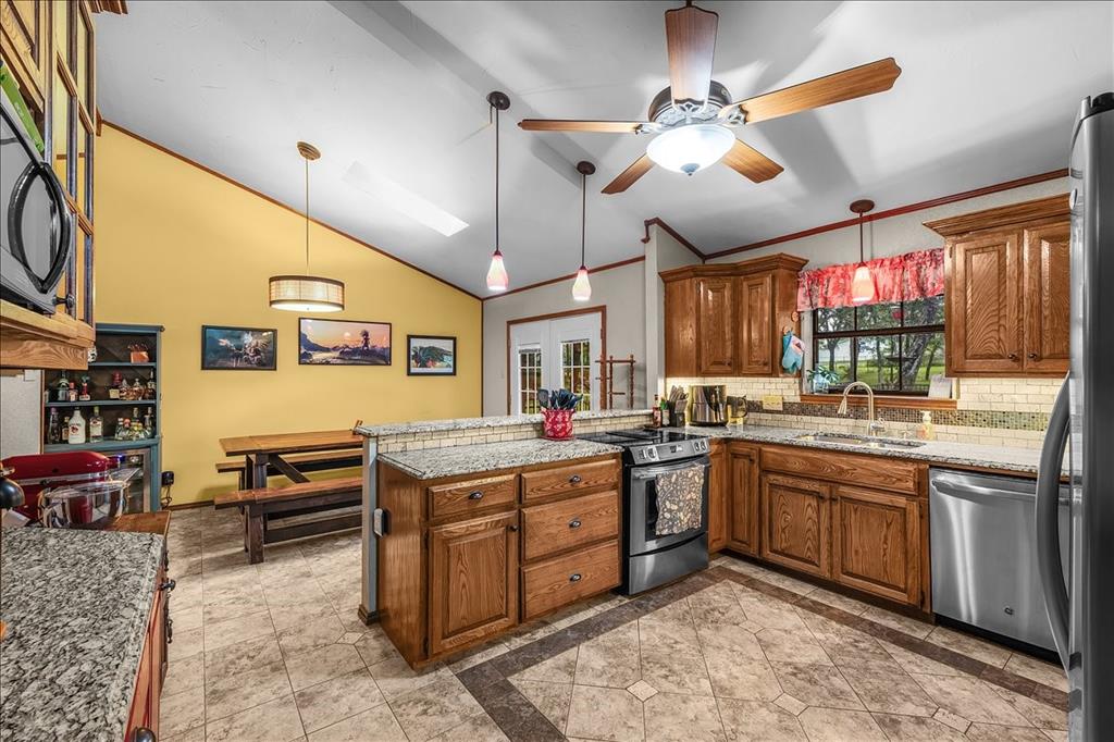 Welcome to 15637 South County Rd 207, Blair OK. This wonderful home is almost hidden from the road. You turn into the driveway and go up a small hill 600 feet. When you top the hill you will see this gorgeous 3 bedroom and 2 bath house (3880 square feet) and the untouched 20 acres of land. There are trees and wild plumb thickets (with exception of NE corner) 3 1/2 sides in 5 strand barbed wire fencing. This home was framed with 2x6’s. While the almost 1000 square foot garage was framed with 2x4’s. The home owner spray foamed the attic so the temperature remains around 75 degrees year round. This home comes with a full home Generac, tankless hot water heater, a water filtration system with two 10 year filters, a water softener, and a safe room/storm shelter. The propane tank is leased at 10.00 a month. The HVAC has a dual function in case the electric cannot keep up. The septic is an aerobic water sprinkler system. The approximately 2800 square foot of living space has wood grained plank tile flooring throughout the home with 9 foot ceilings. The floor plan is open and split with a sunroom. The bathroom includes: dual sinks, a six foot jetted tub, a dual head shower system or a double ended shower, and a water closet. The closet has built-in drawers. The kitchen has floor to ceiling cabinets. In this open space you have a gas cook top stove-oven and another built in oven and microwave, a small single sink, and beautiful granite countertops. As you enter the pantry you come to the full sink, dishwasher, and more floor to ceiling shelves. The living area comes with a fireplace with gas logs, and floor plugs for electric furniture. The other two rooms are set up with a jack and jill bathroom. The utility room has a single sink with cabinets. The garage is set for 3 vehicles with two electric car charging ports. It has a lacquered floor and a mini split for heat and AC year round. This garage finishes out the over 3900 square feet home.