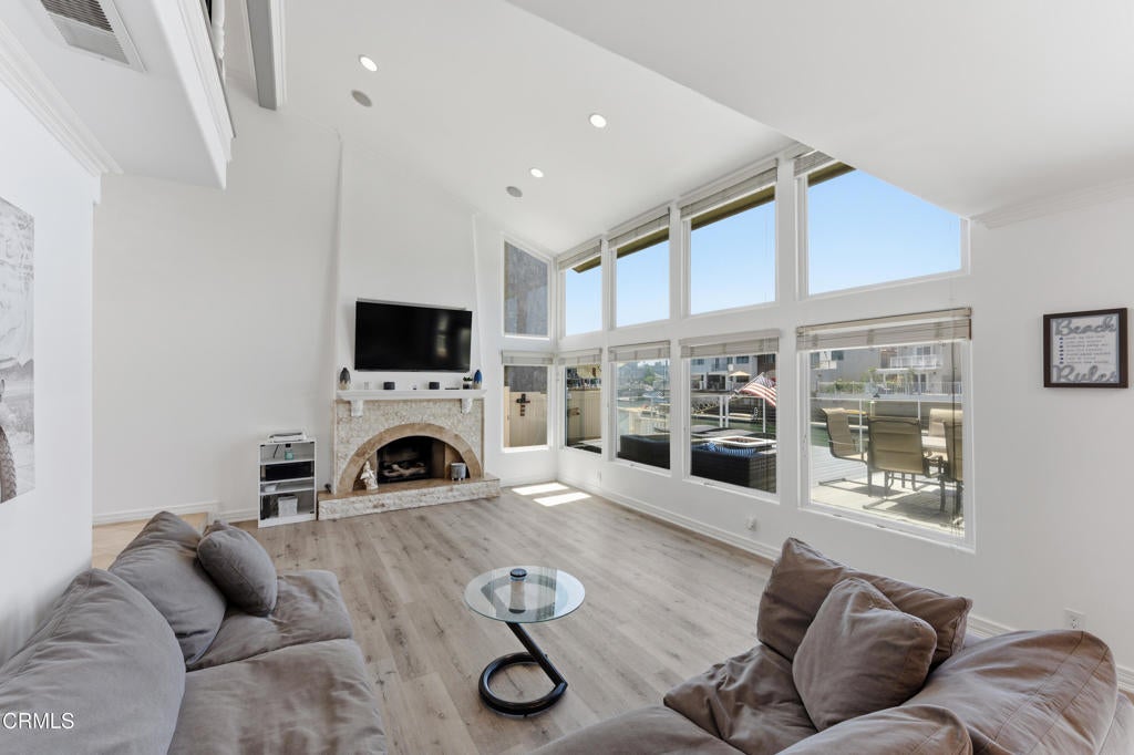 From the moment you arrive, youre greeted by exceptional curb appeal, lush tropical landscaping, warm architectural tones, and a beautifully designed entry that sets the tone for whats inside. Beautifully appointed 3 bed, 3 bath offering 2,100 sq ft of light-filled living space on the water. Upstairs, all bedrooms provide privacy, including a spacious primary suite with direct access to a private balcony overlooking the water. The kitchen is equipped with stone countertops, center island, and stainless steel appliances, flowing seamlessly into the main living area with a cozy fireplace. Whether youre hosting sunset dinners, enjoying a quiet morning coffee, or gathering around the fire feature under the stars, this space delivers an unmatched coastal lifestyle. Additional highlights include a 45-ft private dock, fully paid solar, EV charging, and a new deck that offers a functional, open layout designed for comfort and coastal living. Ideally located just minutes from beaches, dining, and harbor amenities--experience the ultimate coastal lifestyle.