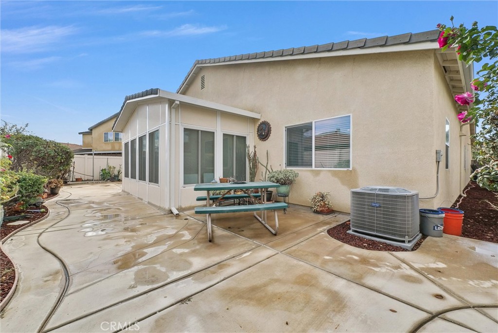 BACK ON MARKET (through no fault of seller or home) Stunning 4-Bedroom, 3-Bath Home - Welcome to your dream home in Serrano Ranch one of Jurupa Valleys most desirable neighborhoods. This spacious 2,795 sq. ft. residence offers a bright, open-concept floor plan that seamlessly connects the living, dining, and kitchen areas — ideal for both entertaining and day-to-day family life. Step into the chef-inspired kitchen, complete with ample counter space, and a practical layout thats perfect for serious cooking or casual meals. The homes four large bedrooms and three full baths provide plenty of private space, while the light, airy finishes enhance the overall sense of openness and comfort. One of the standout features is a fully enclosed, permitted patio, giving you a versatile space to relax or host guests year-round. Outside, youll find yourself just steps from beautiful parks and green spaces — perfect for outdoor recreation, family time, or simply enjoying the natural surroundings. This home combines suburban serenity with convenient access to local amenities, schools and shopping. Its an exceptional find for those seeking space, style, and a strong neighborhood community. NOTE: Buyer to assume existing solar purchase. Principal 44,987 - monthly payment 192.33.