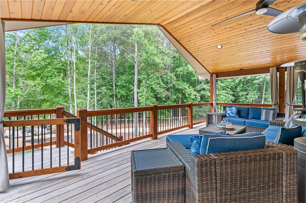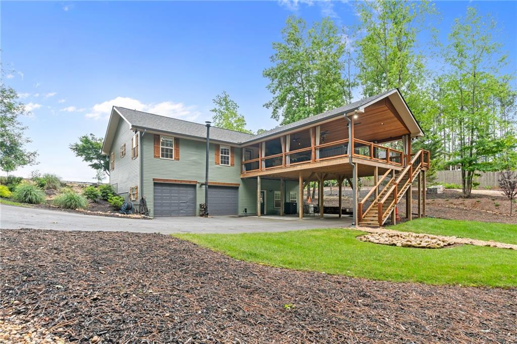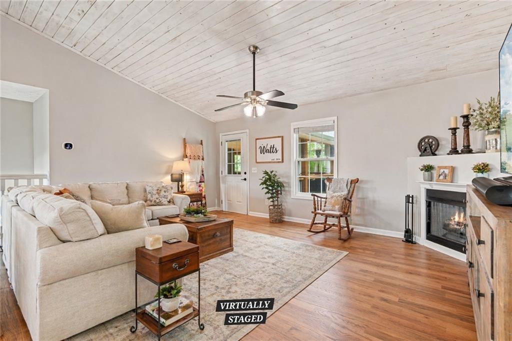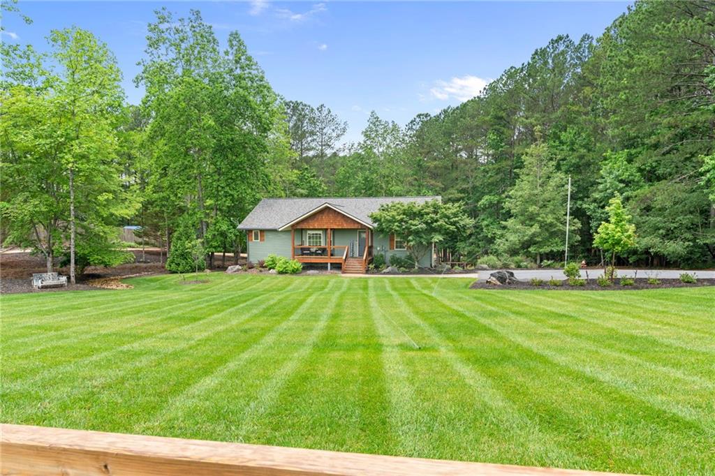 Just in time for spring and summer outdoor living/entertaining! Welcome to your Outdoor Living Oasis in North Georgia Wine Country! Nestled on just over an acre of beautifully landscaped land, this 4-bedroom, 3-bath home has been extensively updated with hundreds of thousands of dollars in improvements, seamlessly blending indoor comfort with exceptional outdoor living. The main level features a bright, open floor plan with whitewashed cathedral ceilings, new hardwood floors, and a cozy gas fireplace. The kitchen offers stainless steel appliances and a peaceful front yard view. Two secondary bedrooms and a full bath are also on the main level, along with a laundry room conveniently located next to the spacious primary suite. The finished terrace level includes a private bedroom, kitchenette, and separate entry ideal for guests or multi-generational living. The oversized garage provides additional versatility with a utility sink, second laundry hookup, and wood stove for year-round comfort. Outdoor living shines here with a 25x33 covered deck featuring a tongue-and-groove ceiling and commercial-grade bar, a professionally landscaped backyard with lighting, a shaded patio beneath the deck, and a fire pit overlooking a fully stocked pond. Additional highlights include a whole-house generator, 2024 HVAC, 2023 roof and gutters, 2.5-year-old water heater, freshly painted interior and exterior, circular driveway with dual private entrances, and RV parking. No HOA and a prime location just minutes from top wineries, hiking trails, waterfalls, and the charming town of Helen make this property the perfect opportunity to enjoy the best of North Georgias outdoor lifestyle. Some images are virtually staged to show potential.