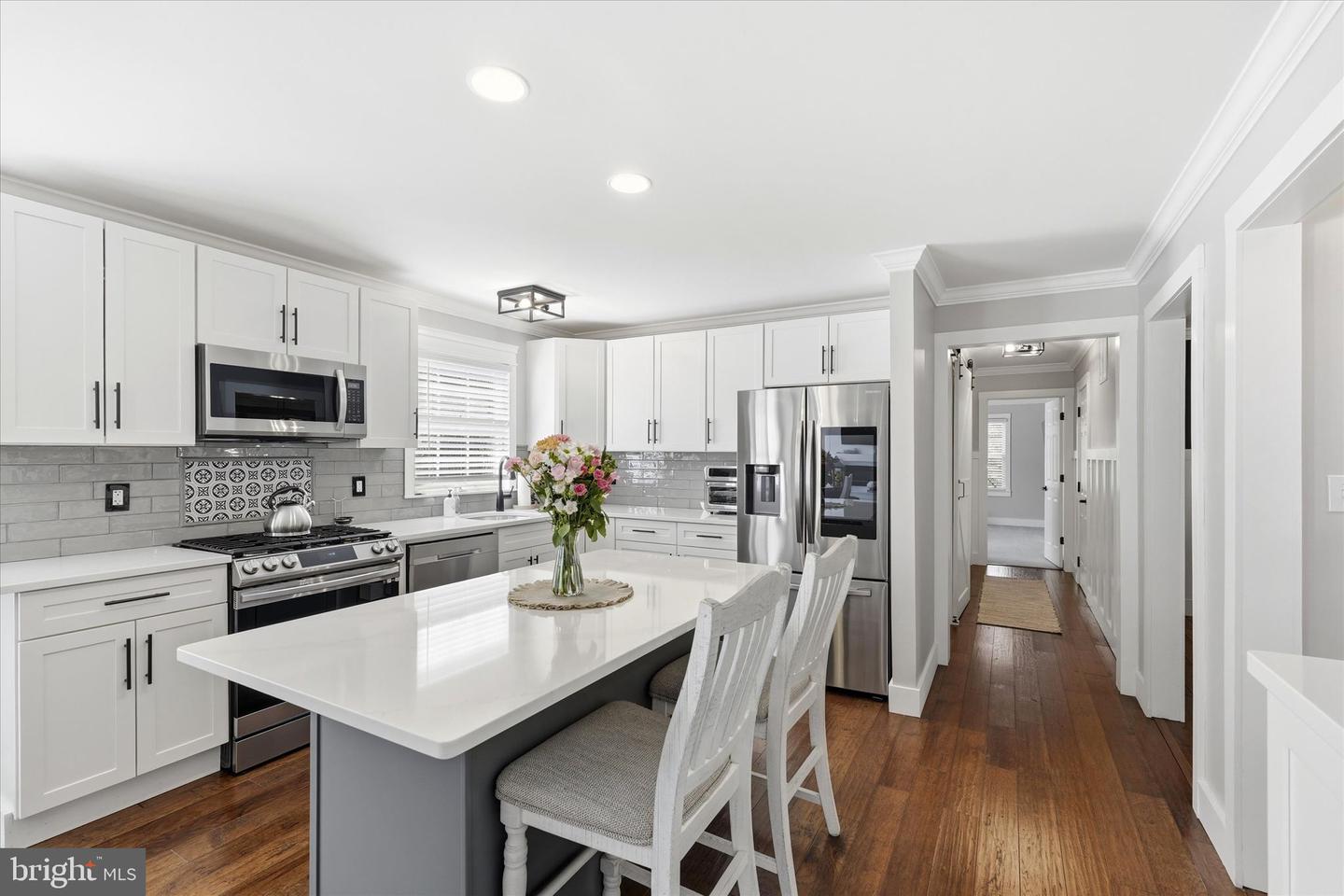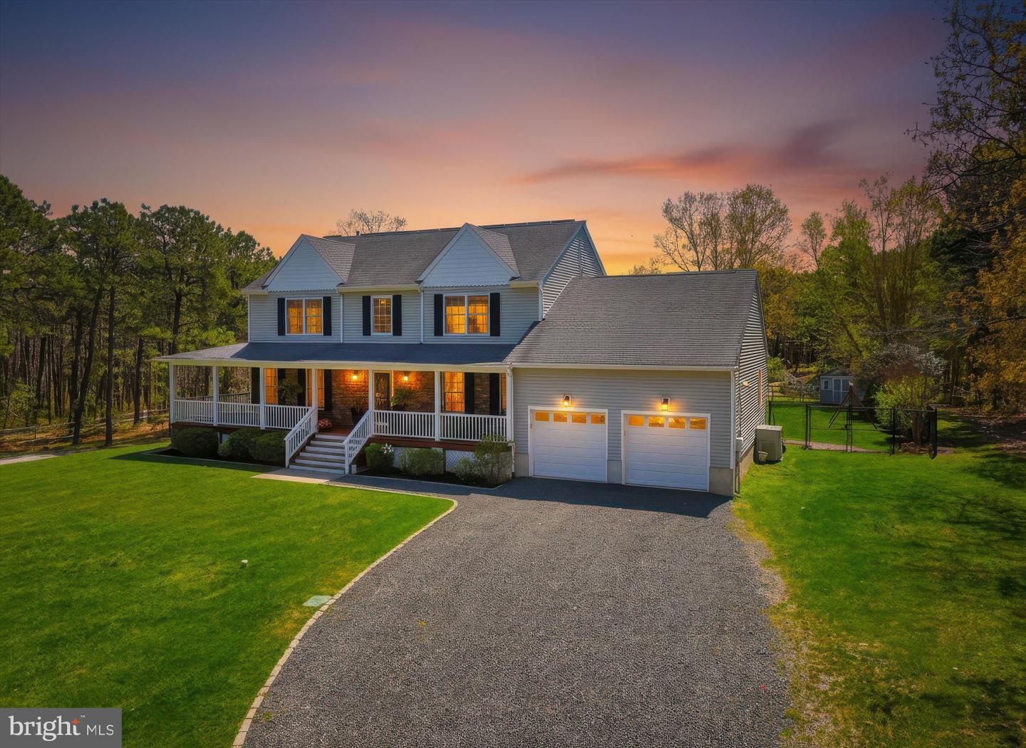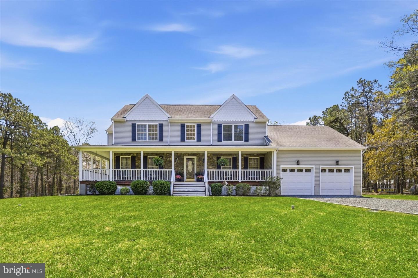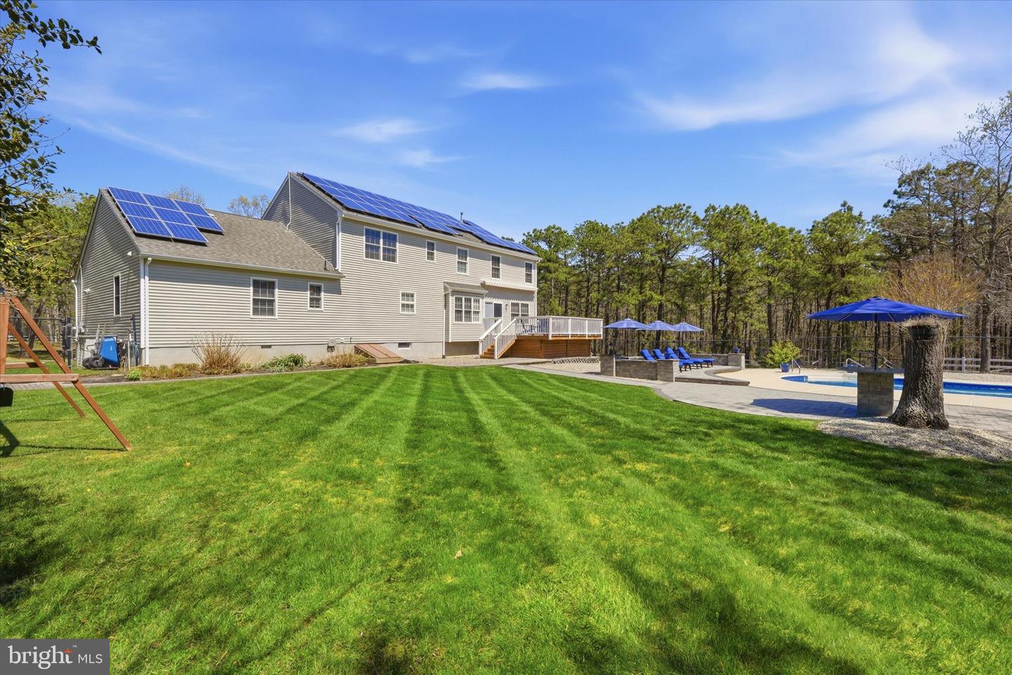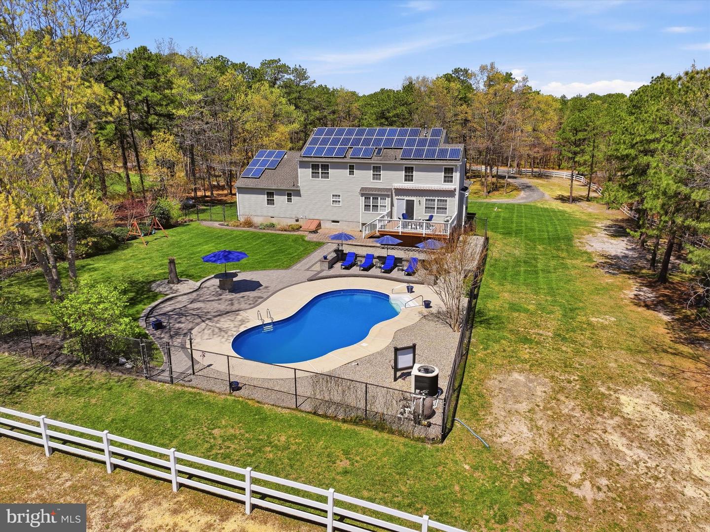 Brand new to the market! Luxury farmhouse nestled on 3.42 acres of pristine Pinelands offering the perfect blend of privacy, and nature. This spectacular residence merges elegant charm with modern finishes, focusing on indoor-outdoor living, stunning forest views, and spacious acreage. This lush relaxing environment boasts a heated inground pool and a 3 stall tack room for your horses. Front yard entry gates lead to the circular driveway and charming wrap around porch. Enter into the foyer with a NEW grand staircase, NEW rich hickory hardwood floors & NEW crown moulding throughout. Entirely NEW kitchen with pearly white quartz countertops, and endless cabinets. Living room showcases NEW French doors to the porch. The NEW family room boasts a decorative cozy fireplace with sliders to the sundeck. Bonus... a NEW first floor bedroom & full bath. Upstairs is all NEW including the main bedroom suite with lux soaking tub/double quartz vanity/shower/ WIC! Come preview the dream!!! Extras include: Solar panels are owned (no payment) NEW pool pump, NEW pool heater, NEW shutters, NEW crown & base moulding, New fans & lighting, All new pavers around the pool, pub table, new landscaping, and so much more...WOW!