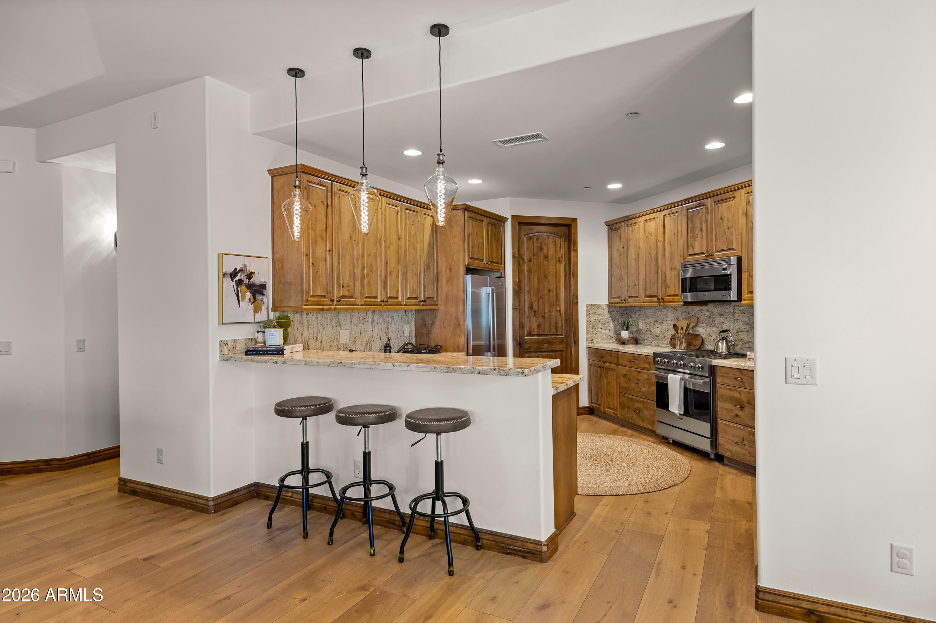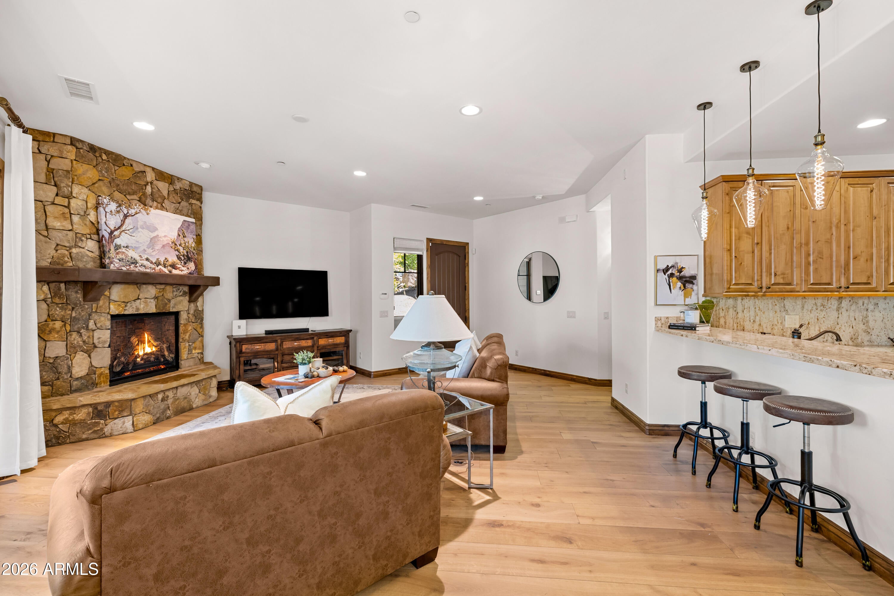 1734 E Mossy Oak CT 2, Flagstaff, AZ 86005. Experience your dream retreat in Mountain Vista at Pine Canyon in Flagstaff--where refined luxury meets the beauty of mountain living.This beautifully upgraded 3-bedroom, 2-bathroom turnkey, lock-and-leave condo offers an effortless blend of comfort, style, and functionality, all complemented by exceptional views ofthe golf course. Step inside to an open, light-filled floor plan designed for both relaxation and entertaining, featuring high-end finishes throughout. The gourmet kitchen is a standout,showcasing premium stainless steel Viking appliances, custom alder wood cabinetry, elegant stone countertops, and a spacious breakfast bar ideal for casual dining or hosting guests.Listing agent is related to seller. Ideally located near Trout Creek Park and the community clubhouse, this home offers the perfect blend of comfort, style, and convenience.Social and golf membership can be purchased separately through Pine Canyon Club. Pine Canyon is built around a country club outdoor lifestyle: golf is the centerpiece, but the real draw is the combination of luxury clubhouse living, spa/fitness, and easy access to Flagstaffs mountain environment.