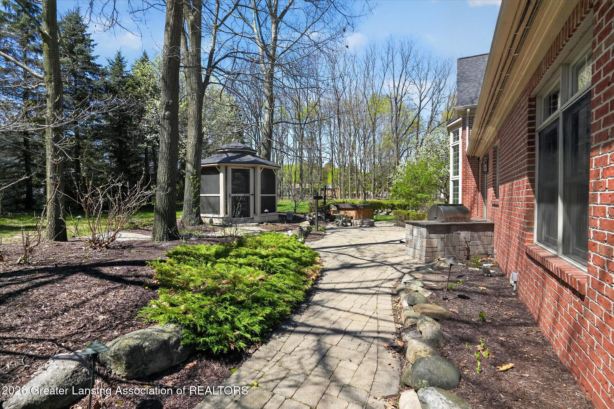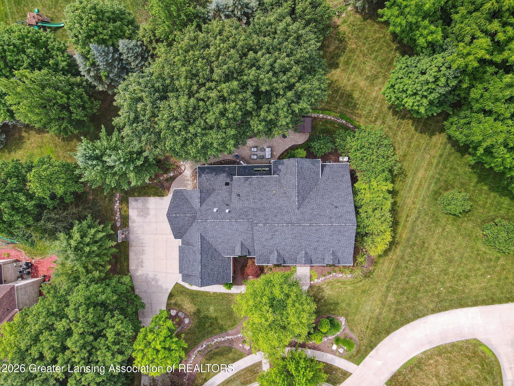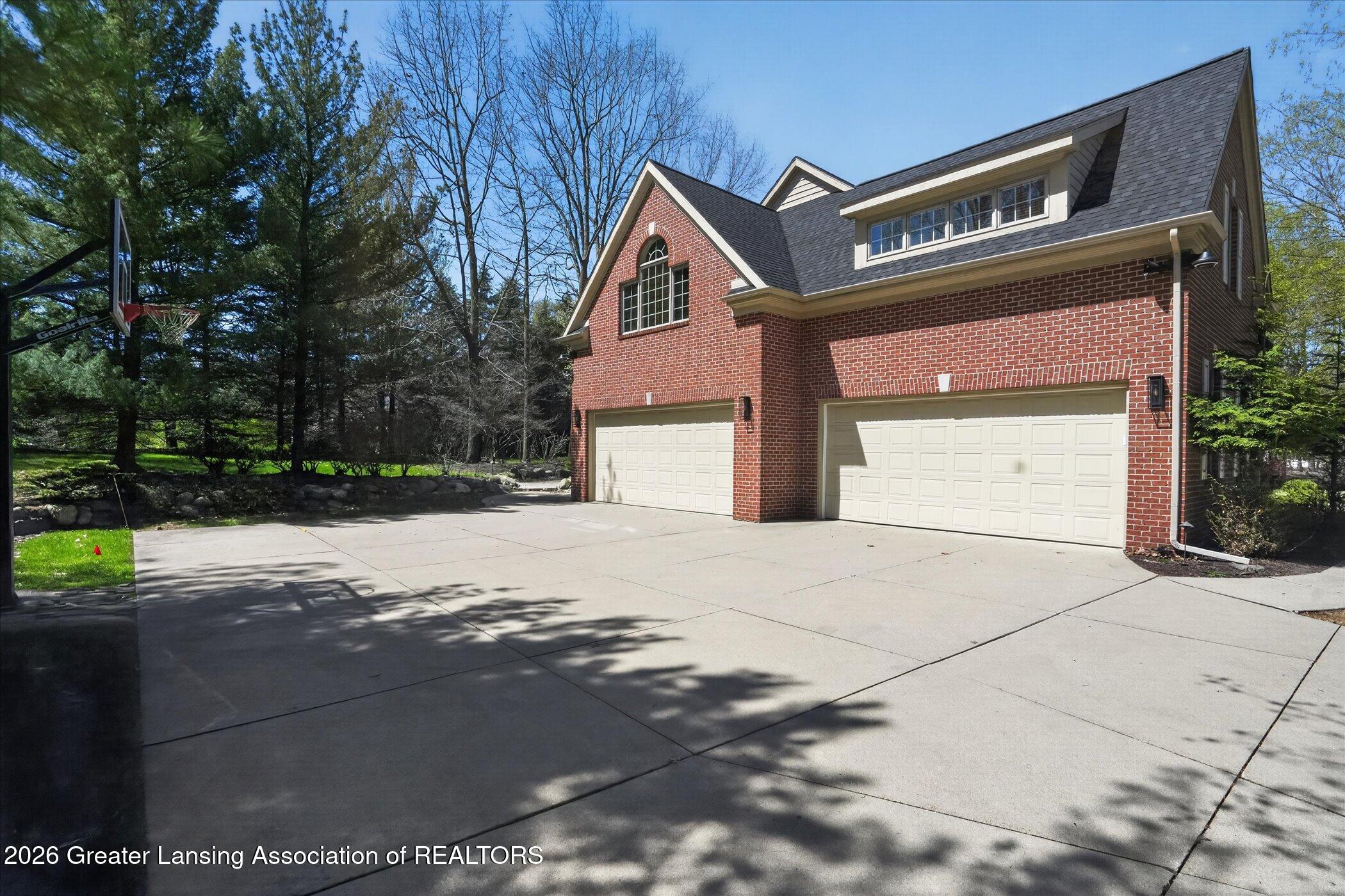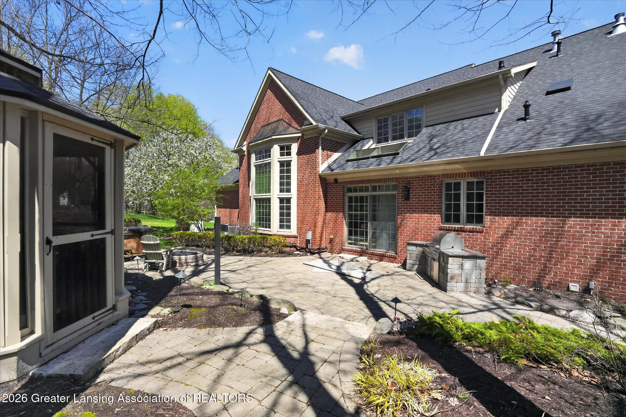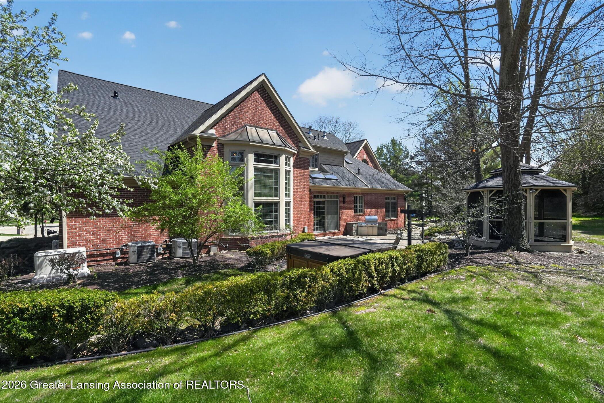 Welcome to 1437 Wandering Way, an exceptional 5-bedroom, 5.5-bath, all brick executive style home tucked away on a private cul-de-sac in the highly sought-after Ember Oaks subdivision, within the award-winning Okemos School District. This impressive residence seamlessly blends timeless elegance with modern updates. Over 300,000 in tasteful updates since 2023! To name a few, revamped landscaping, a brand-new roof, new furnace, fresh paint, new carpet, and updated lighting throughout. The first floor offers an ideal layout for both everyday living and entertaining, featuring a spacious eat-in chefs kitchen, a dramatic two-story great room with beamed ceilings and a gas fireplace, formal dining room, den, and convenient first-floor laundry. A private office with custom cabinetry provides the perfect work-from-home space. The luxurious first-floor primary suite is a true retreat, boasting a spa-like ensuite with a two-sided gas fireplace and an expansive walk-in closet. Upstairs, youll find four generously sized bedrooms, each with its own full bathroom and walk-in closet, along with a versatile bonus room complete with a wet bar and gas fireplace, perfect for entertaining or additional living space. The finished lower level elevates this home even further, offering a full bathroom, expansive living area, in-home theater, bar area, an 80k fully encapsulated dedicated cigar room addition in 2024, and an enormous storage space. Step outside to enjoy the large, private, tree-lined lot with mature landscaping, a brick-paved patio, screened-in porch, and hot tub, an ideal setting for relaxing or hosting gatherings. This extraordinary home offers privacy, luxury, and comfort in one of Okemos most prestigious neighborhoods. A must see! Call today for your private tour.