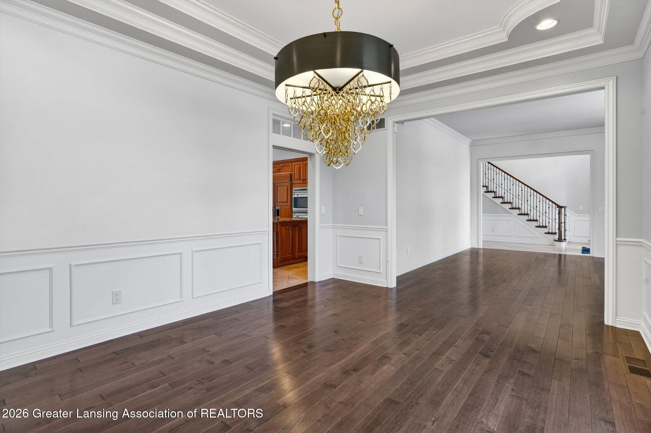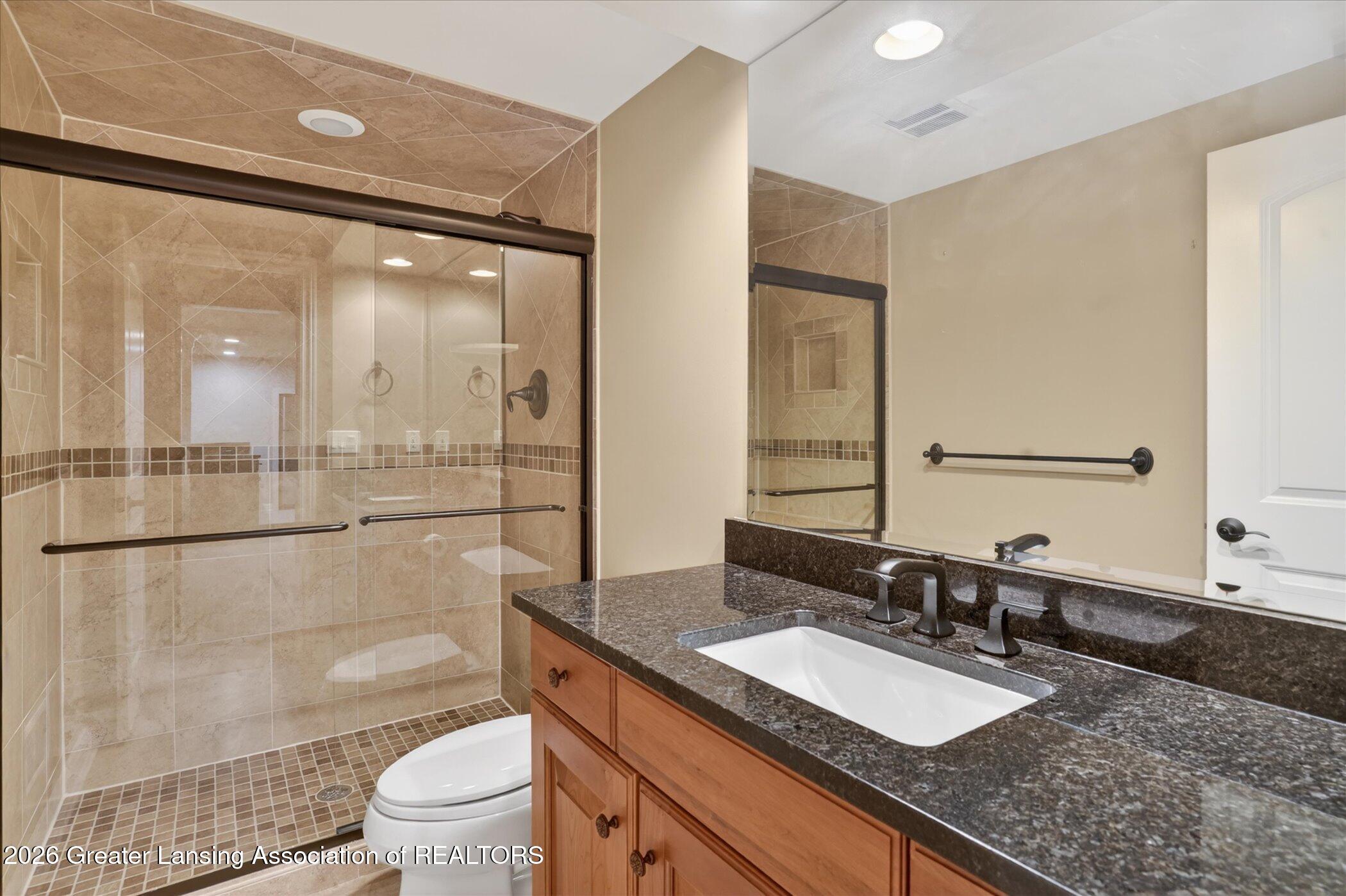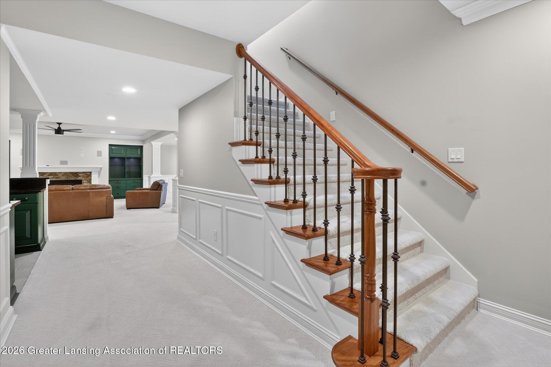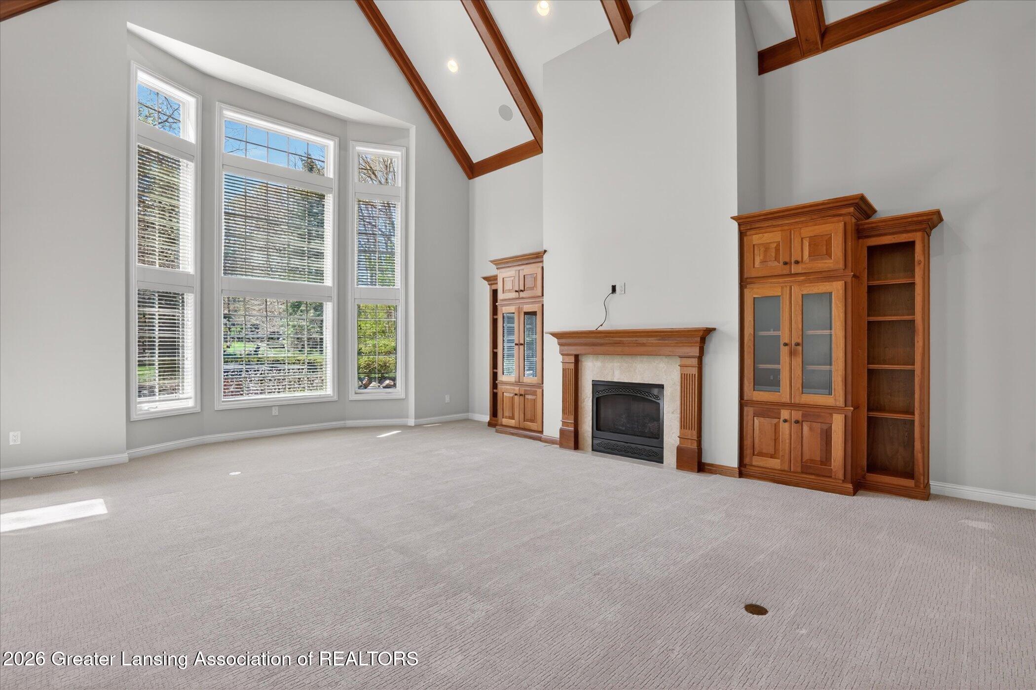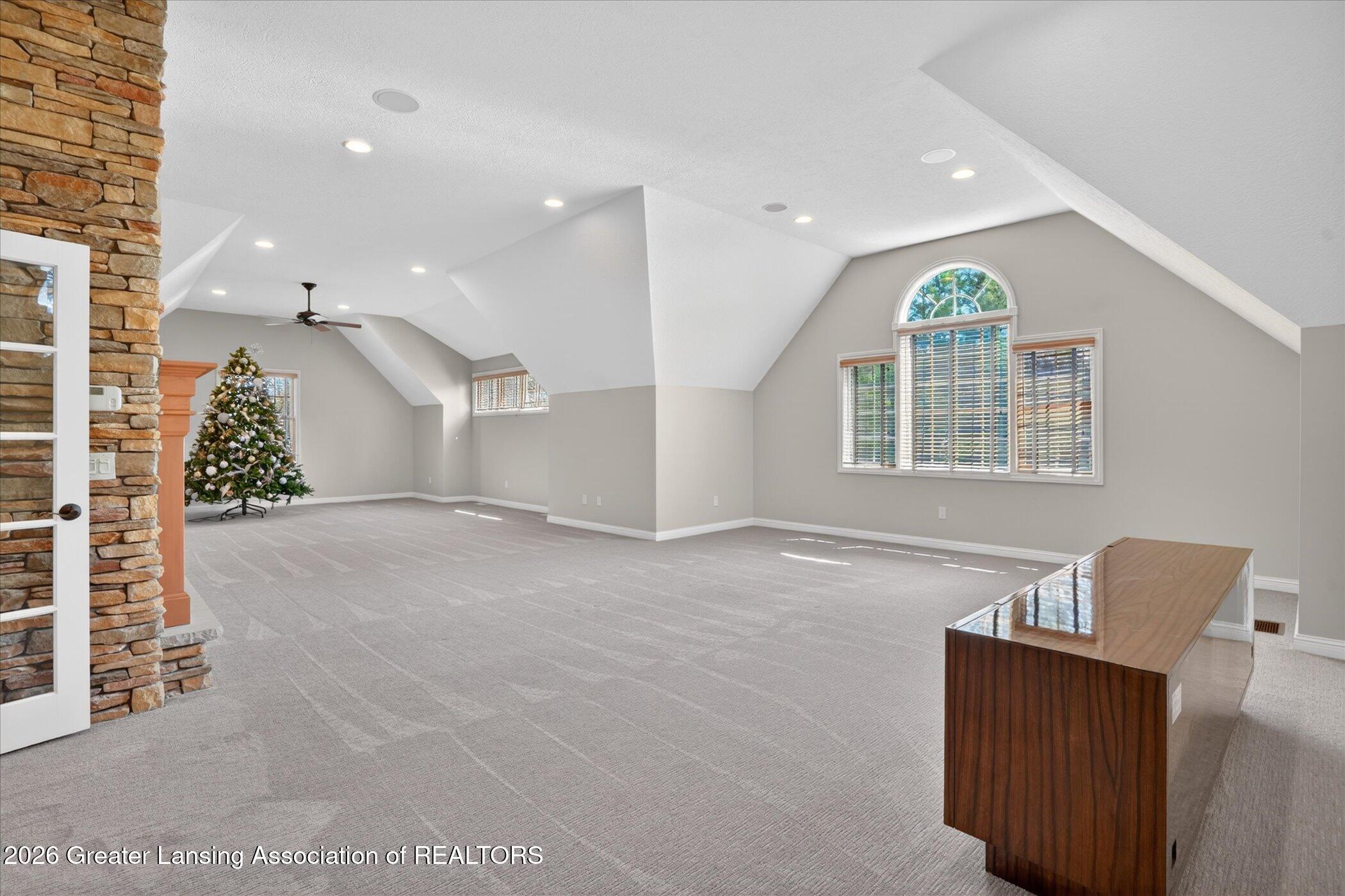 Welcome to 1437 Wandering Way, an exceptional 5-bedroom, 5.5-bath, all brick executive style home tucked away on a private cul-de-sac in the highly sought-after Ember Oaks subdivision, within the award-winning Okemos School District. This impressive residence seamlessly blends timeless elegance with modern updates. Over 300,000 in tasteful updates since 2023! To name a few, revamped landscaping, a brand-new roof, new furnace, fresh paint, new carpet, and updated lighting throughout. The first floor offers an ideal layout for both everyday living and entertaining, featuring a spacious eat-in chefs kitchen, a dramatic two-story great room with beamed ceilings and a gas fireplace, formal dining room, den, and convenient first-floor laundry. A private office with custom cabinetry provides the perfect work-from-home space. The luxurious first-floor primary suite is a true retreat, boasting a spa-like ensuite with a two-sided gas fireplace and an expansive walk-in closet. Upstairs, youll find four generously sized bedrooms, each with its own full bathroom and walk-in closet, along with a versatile bonus room complete with a wet bar and gas fireplace, perfect for entertaining or additional living space. The finished lower level elevates this home even further, offering a full bathroom, expansive living area, in-home theater, bar area, an 80k fully encapsulated dedicated cigar room addition in 2024, and an enormous storage space. Step outside to enjoy the large, private, tree-lined lot with mature landscaping, a brick-paved patio, screened-in porch, and hot tub, an ideal setting for relaxing or hosting gatherings. This extraordinary home offers privacy, luxury, and comfort in one of Okemos most prestigious neighborhoods. A must see! Call today for your private tour.