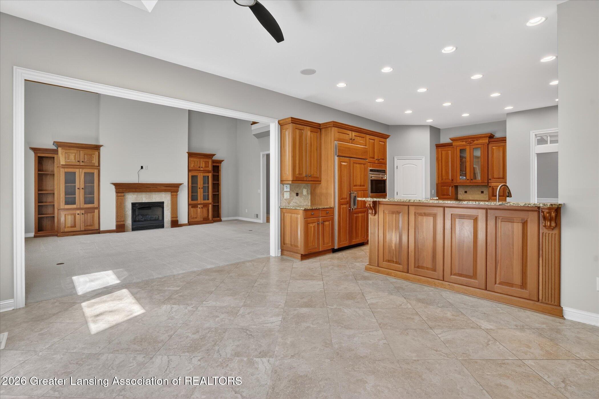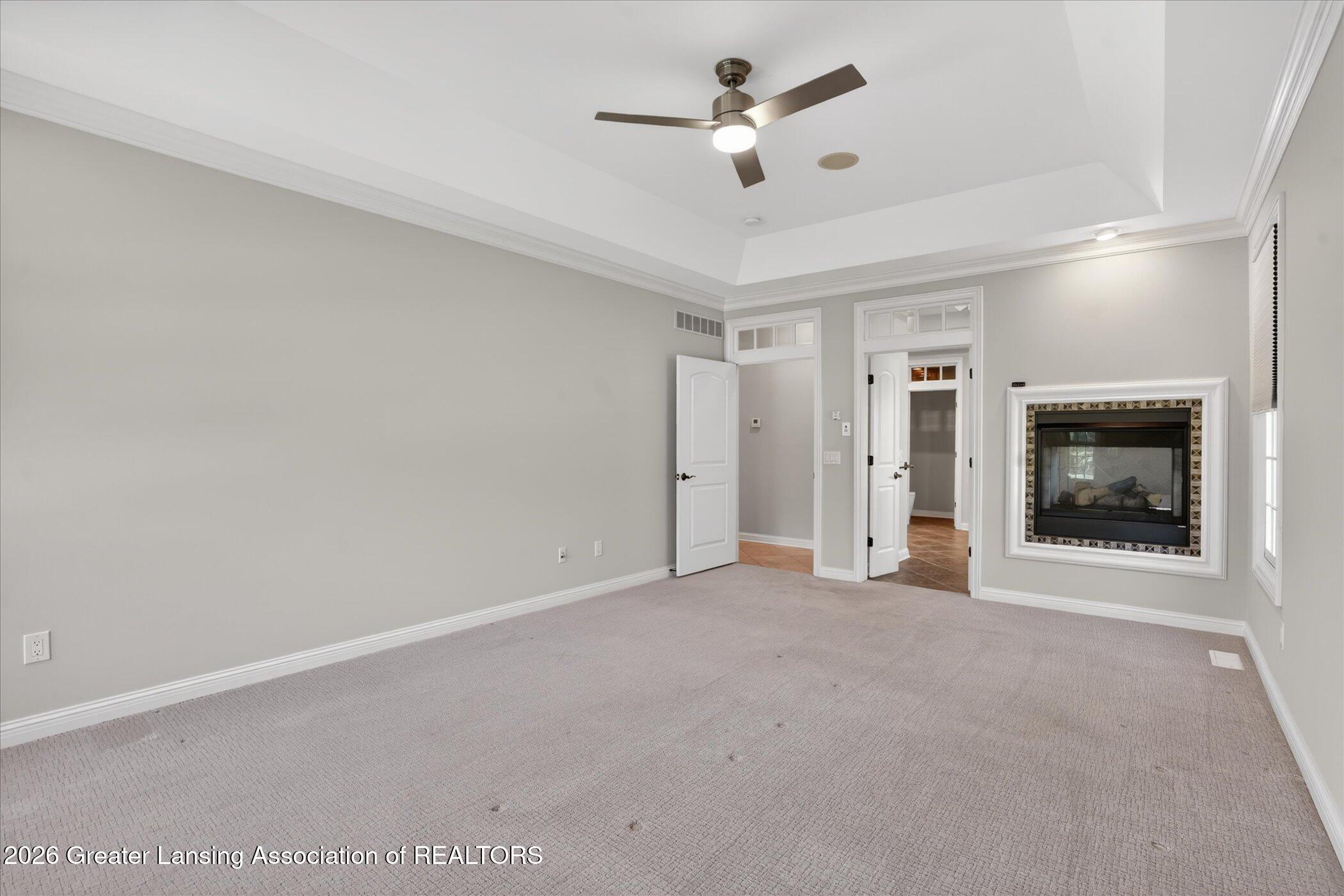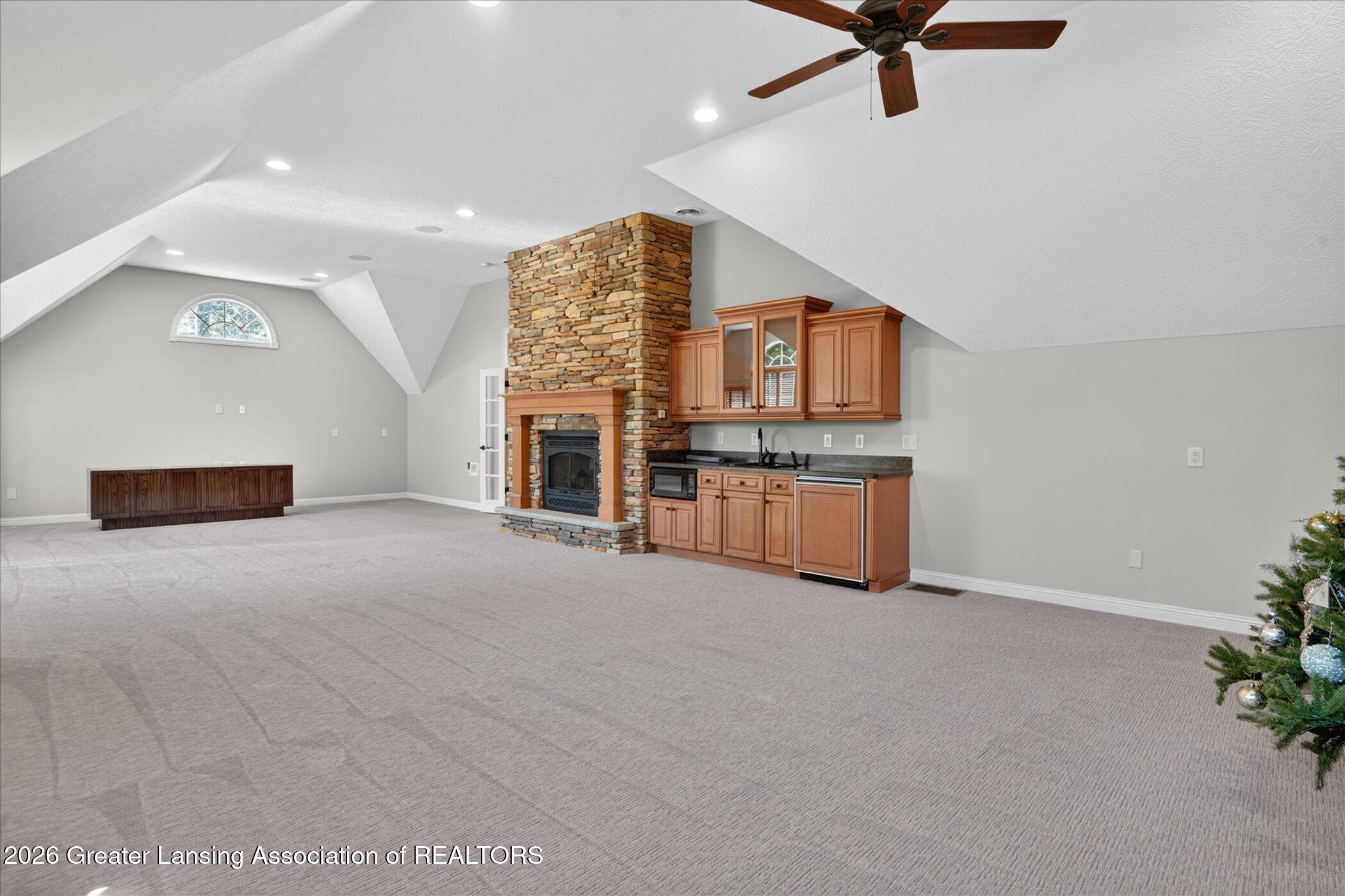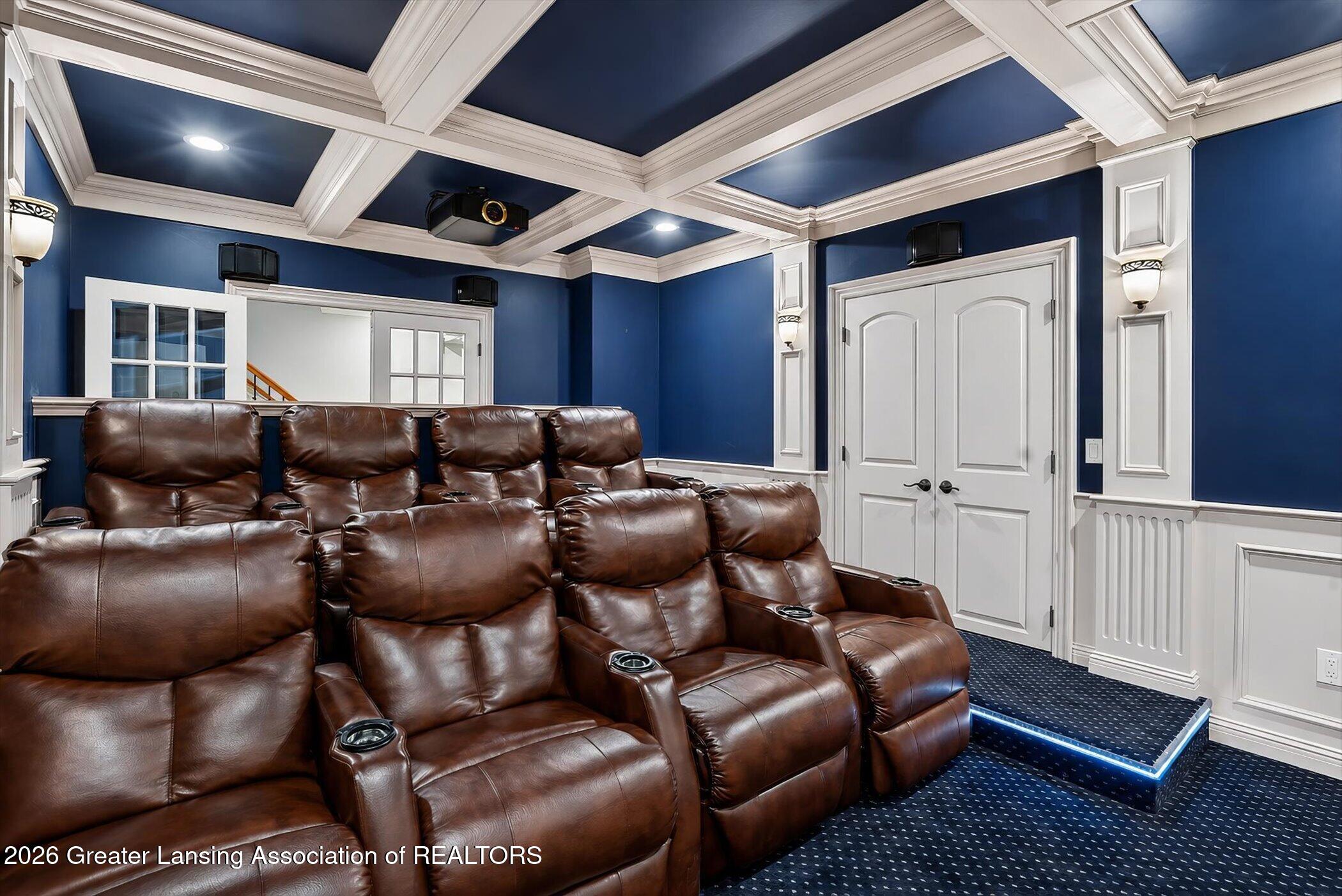Welcome to 1437 Wandering Way, an exceptional 5-bedroom, 5.5-bath, all brick executive style home tucked away on a private cul-de-sac in the highly sought-after Ember Oaks subdivision, within the award-winning Okemos School District. This impressive residence seamlessly blends timeless elegance with modern updates. Over 300,000 in tasteful updates since 2023! To name a few, revamped landscaping, a brand-new roof, new furnace, fresh paint, new carpet, and updated lighting throughout. The first floor offers an ideal layout for both everyday living and entertaining, featuring a spacious eat-in chefs kitchen, a dramatic two-story great room with beamed ceilings and a gas fireplace, formal dining room, den, and convenient first-floor laundry. A private office with custom cabinetry provides the perfect work-from-home space. The luxurious first-floor primary suite is a true retreat, boasting a spa-like ensuite with a two-sided gas fireplace and an expansive walk-in closet. Upstairs, youll find four generously sized bedrooms, each with its own full bathroom and walk-in closet, along with a versatile bonus room complete with a wet bar and gas fireplace, perfect for entertaining or additional living space. The finished lower level elevates this home even further, offering a full bathroom, expansive living area, in-home theater, bar area, an 80k fully encapsulated dedicated cigar room addition in 2024, and an enormous storage space. Step outside to enjoy the large, private, tree-lined lot with mature landscaping, a brick-paved patio, screened-in porch, and hot tub, an ideal setting for relaxing or hosting gatherings. This extraordinary home offers privacy, luxury, and comfort in one of Okemos most prestigious neighborhoods. A must see! Call today for your private tour.
